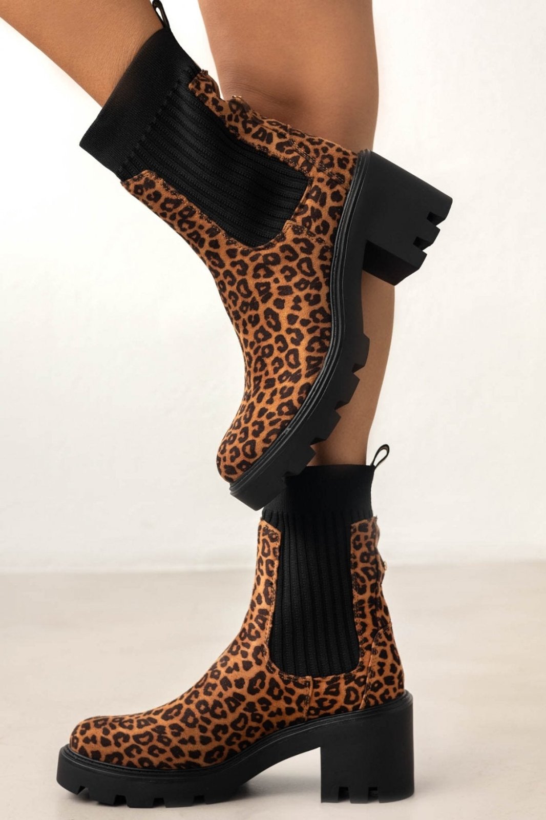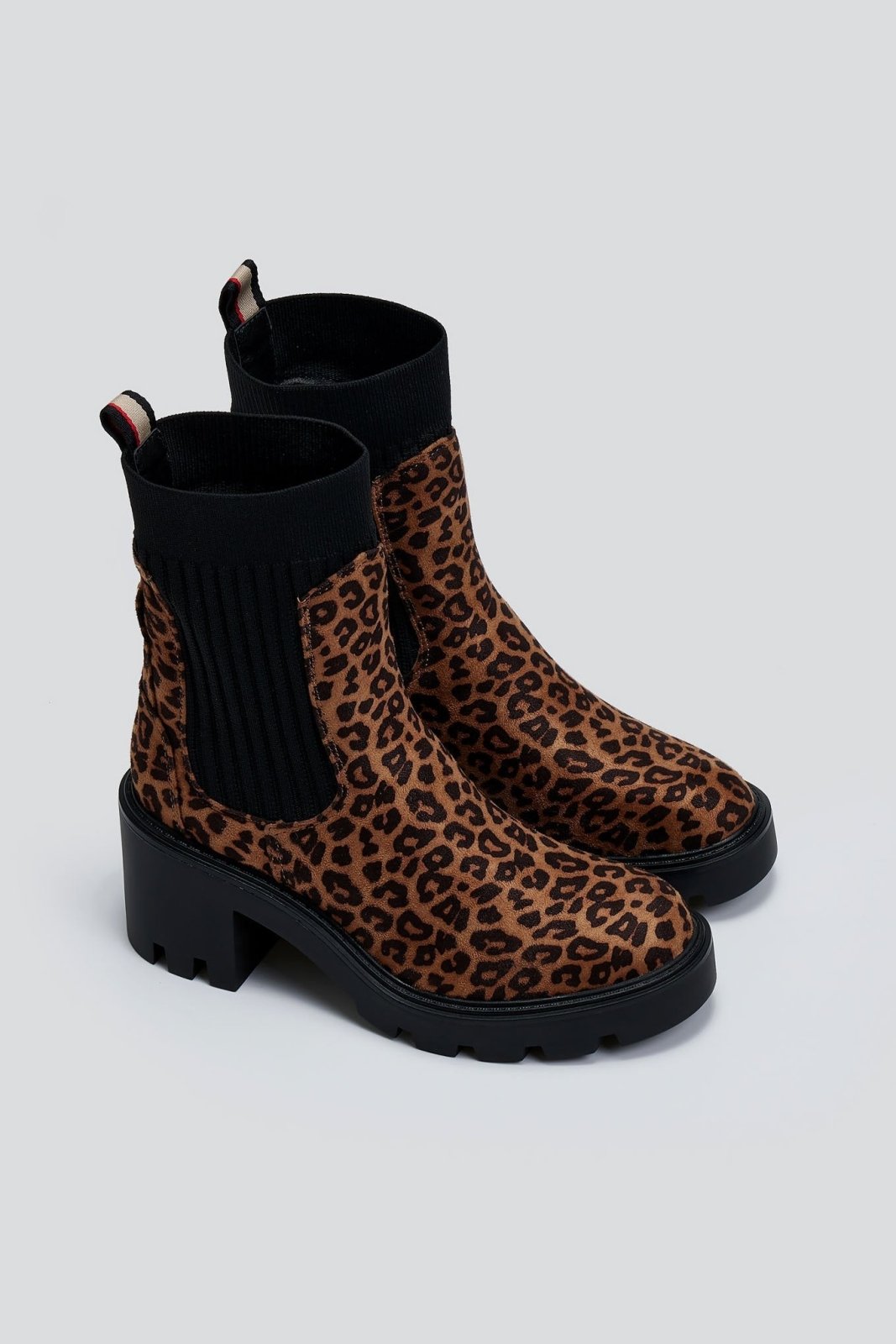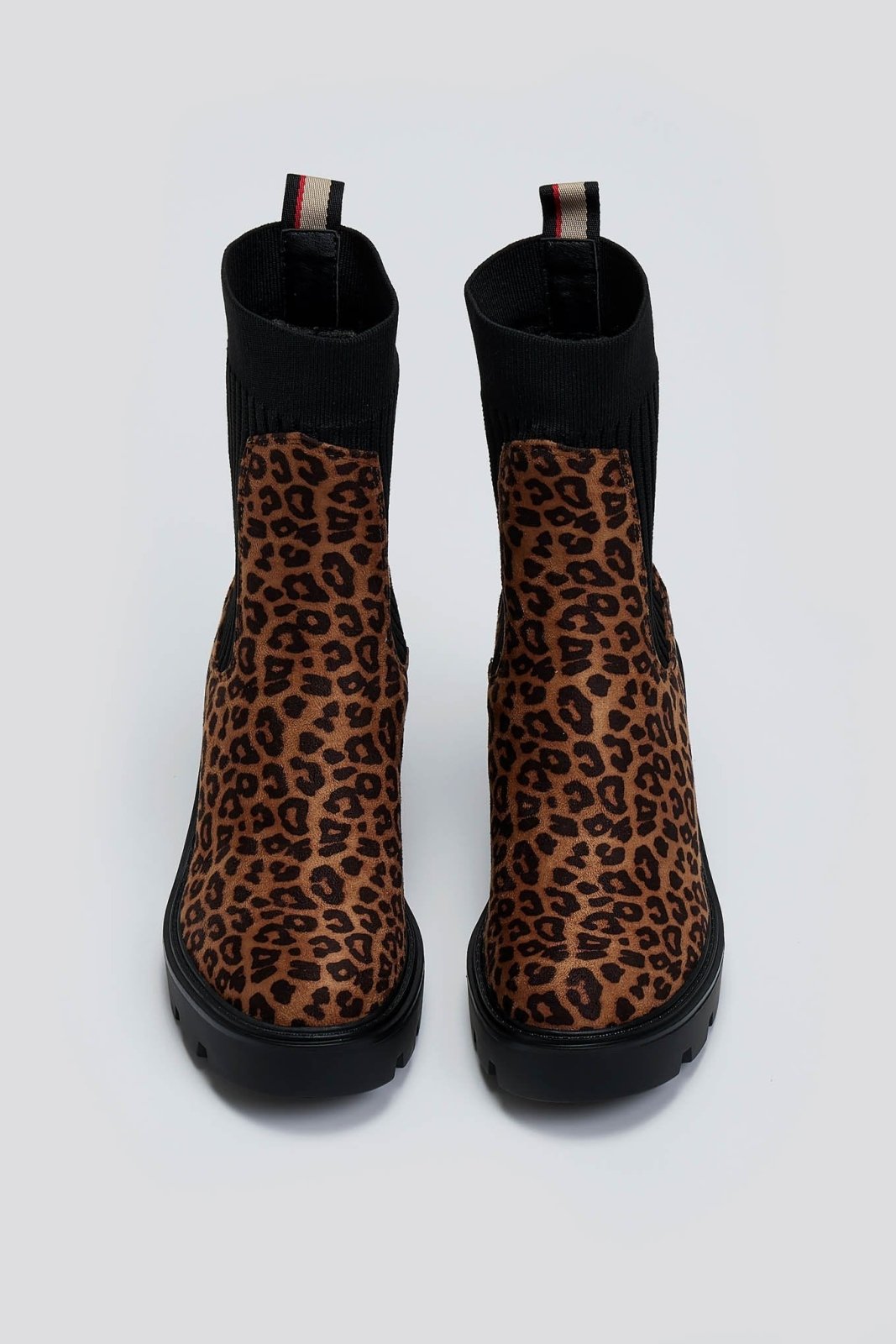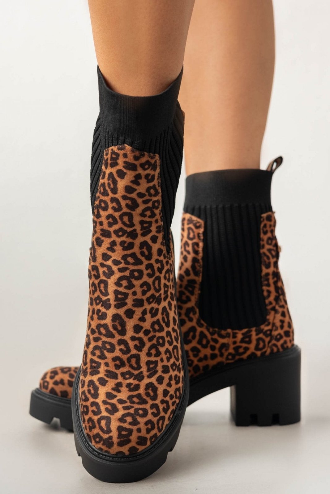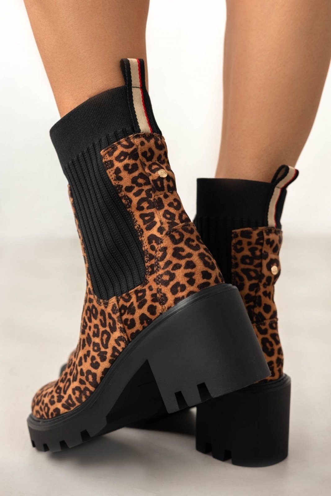 Μποτάκια με ελαστικό τμήμα και σχέδιο κάλτσα ERYNN. Chunky σόλα με τετράγωνο τακούνι. Θηλάκι σε συνδυασμούς χρωμάτων στο πίσω μέρος.
