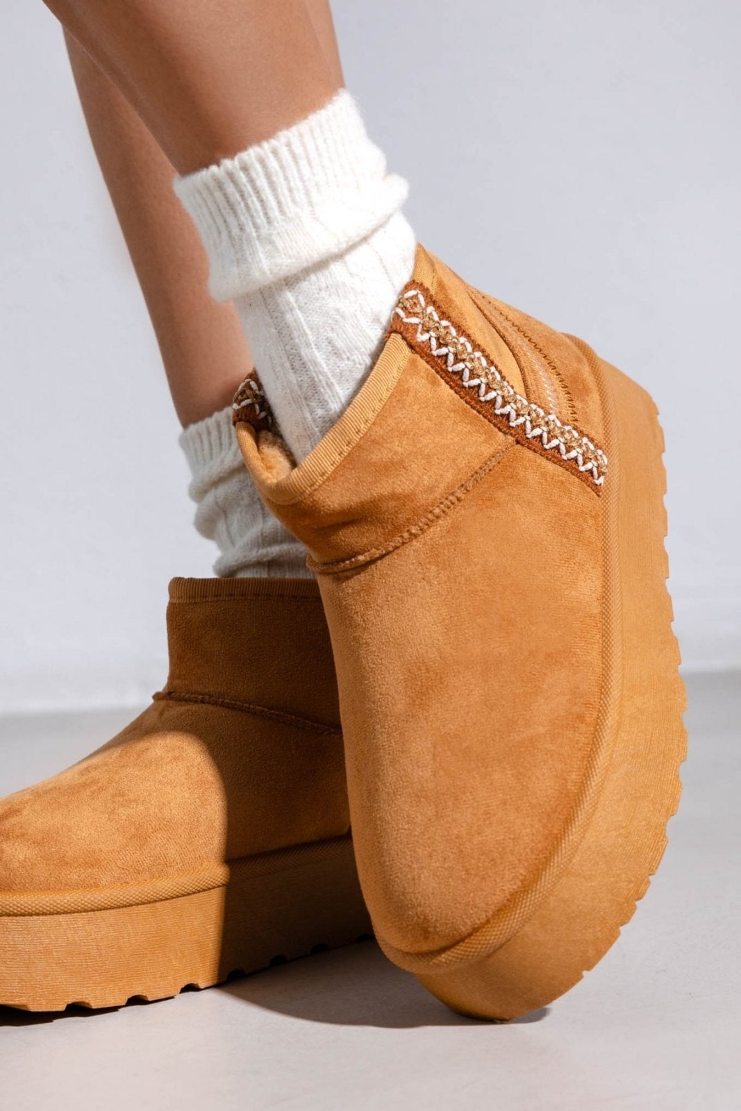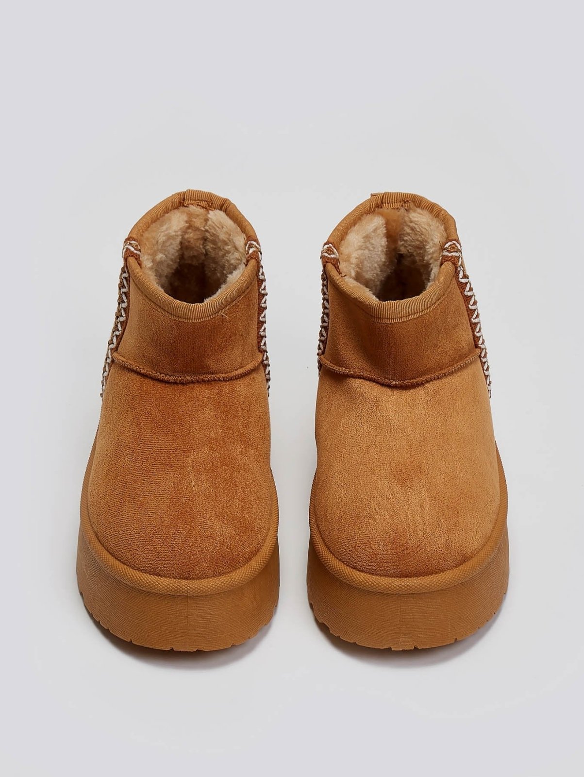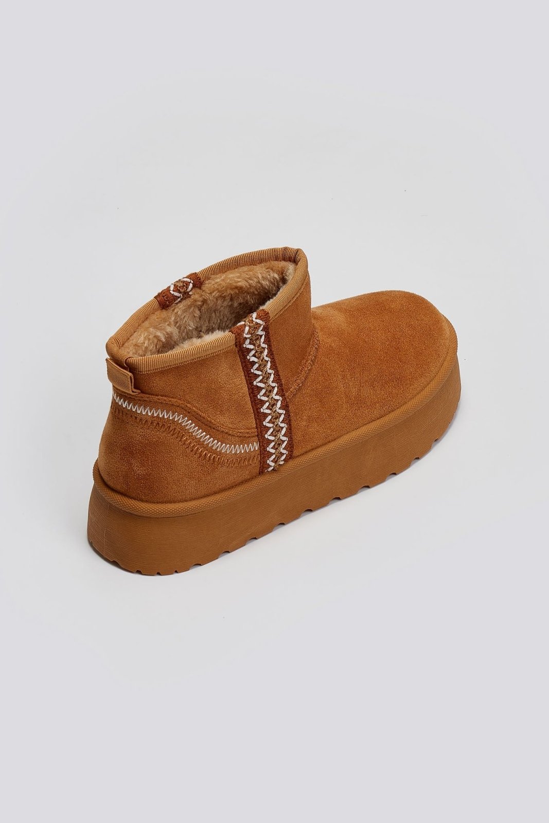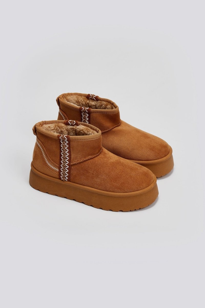 Μποτάκια κοντά suede ERYNN. Επένδυση με συνθετική γούνα. Ψηλή flatform σόλα. Λεπτομέρεια με ραφές.