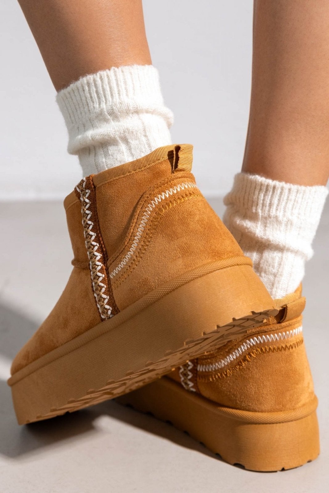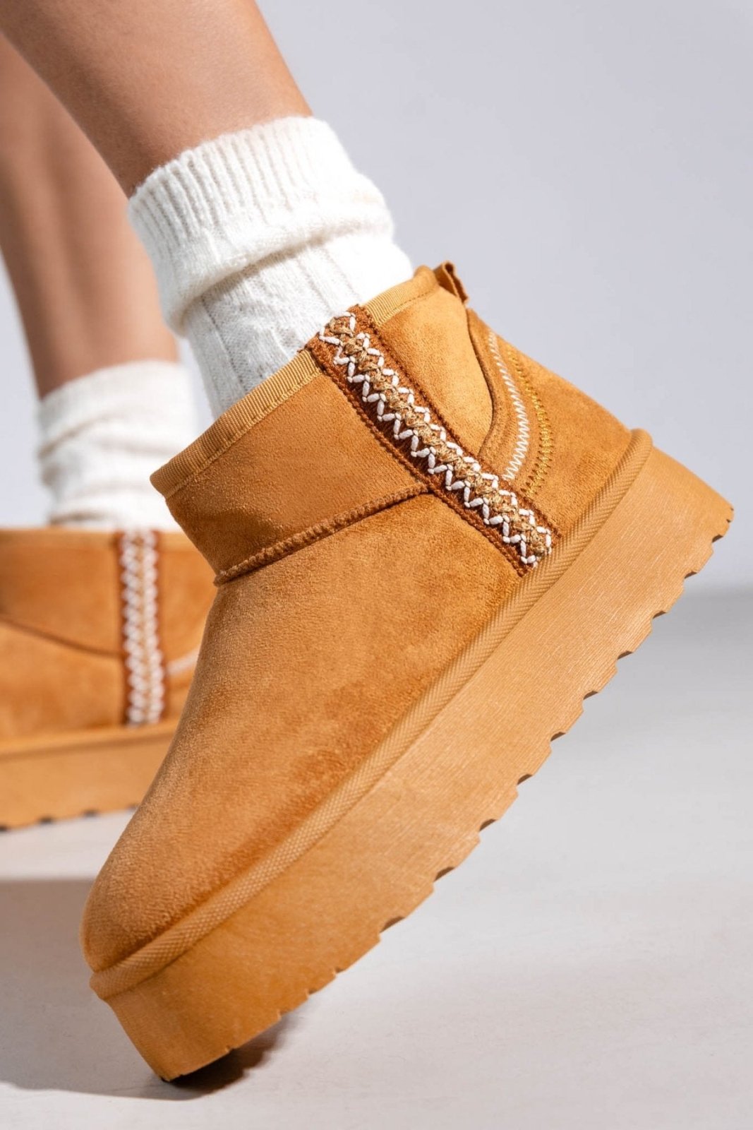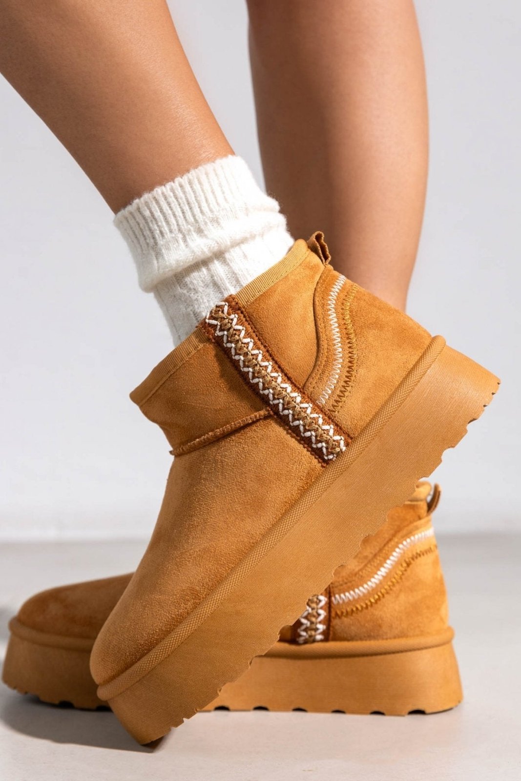 Μποτάκια κοντά suede ERYNN. Επένδυση με συνθετική γούνα. Ψηλή flatform σόλα. Λεπτομέρεια με ραφές.