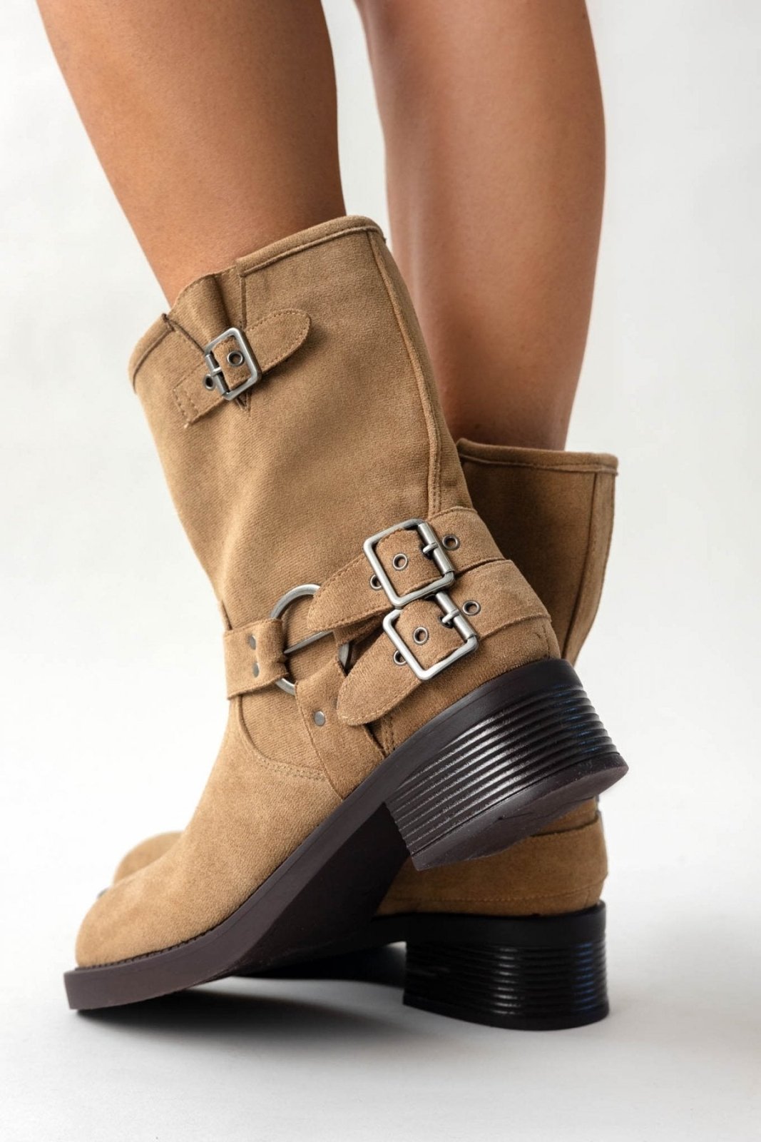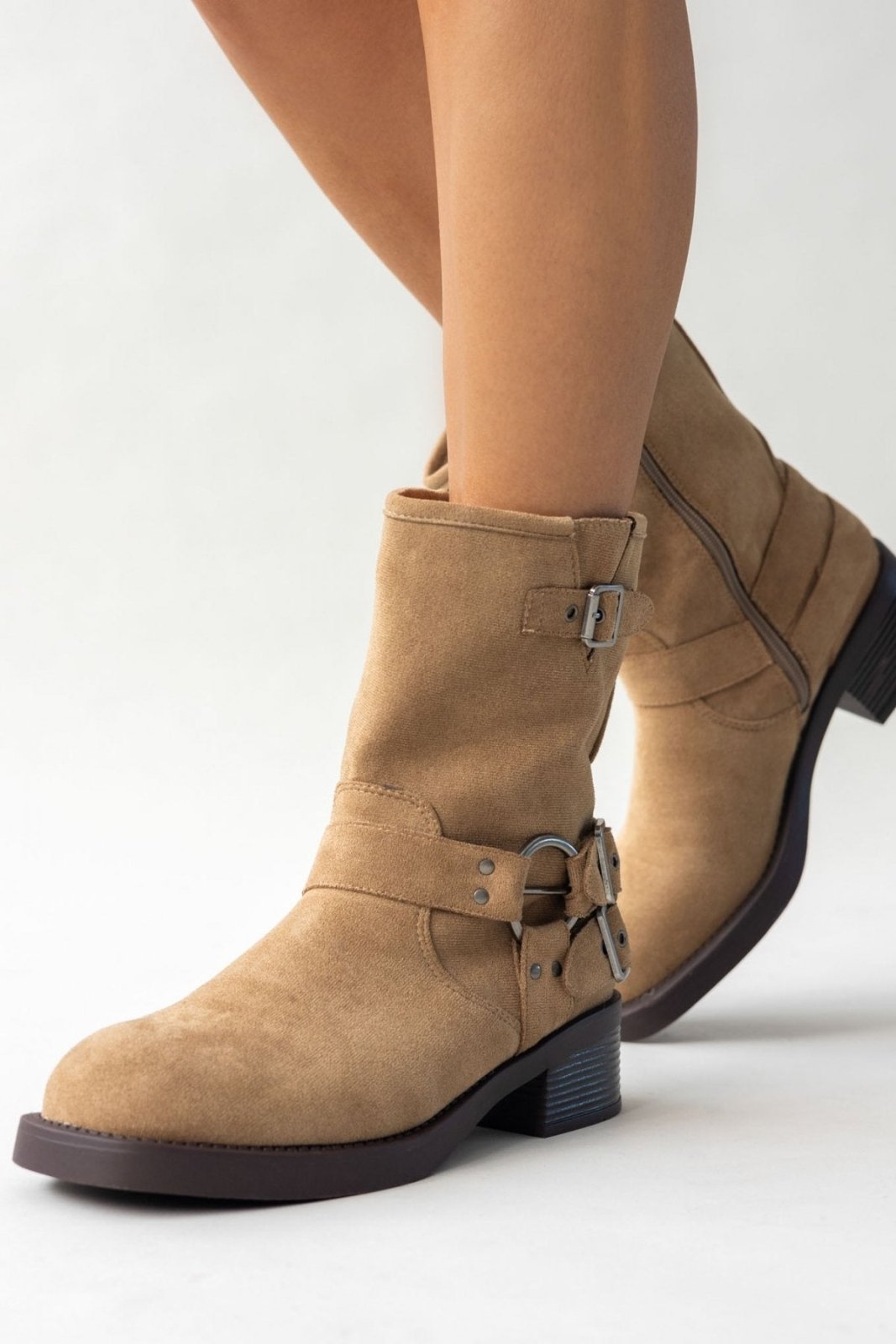 Μποτάκια biker suede με κρίκο - Τάουπε