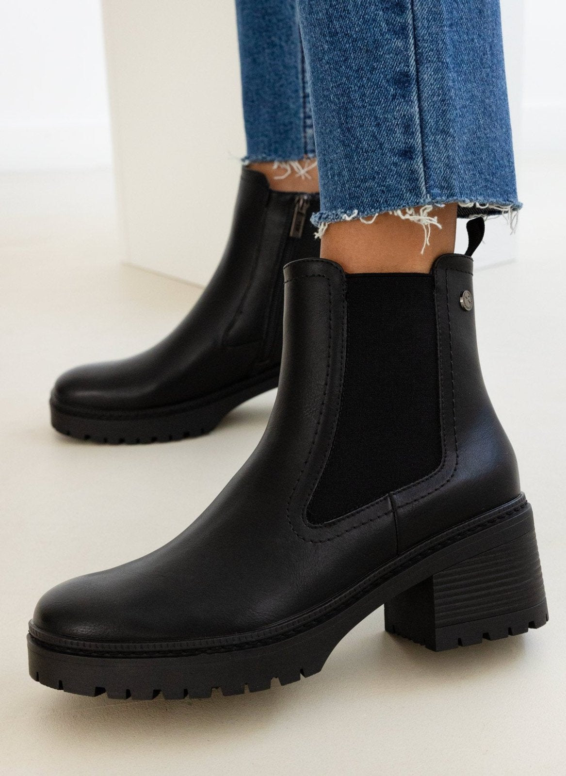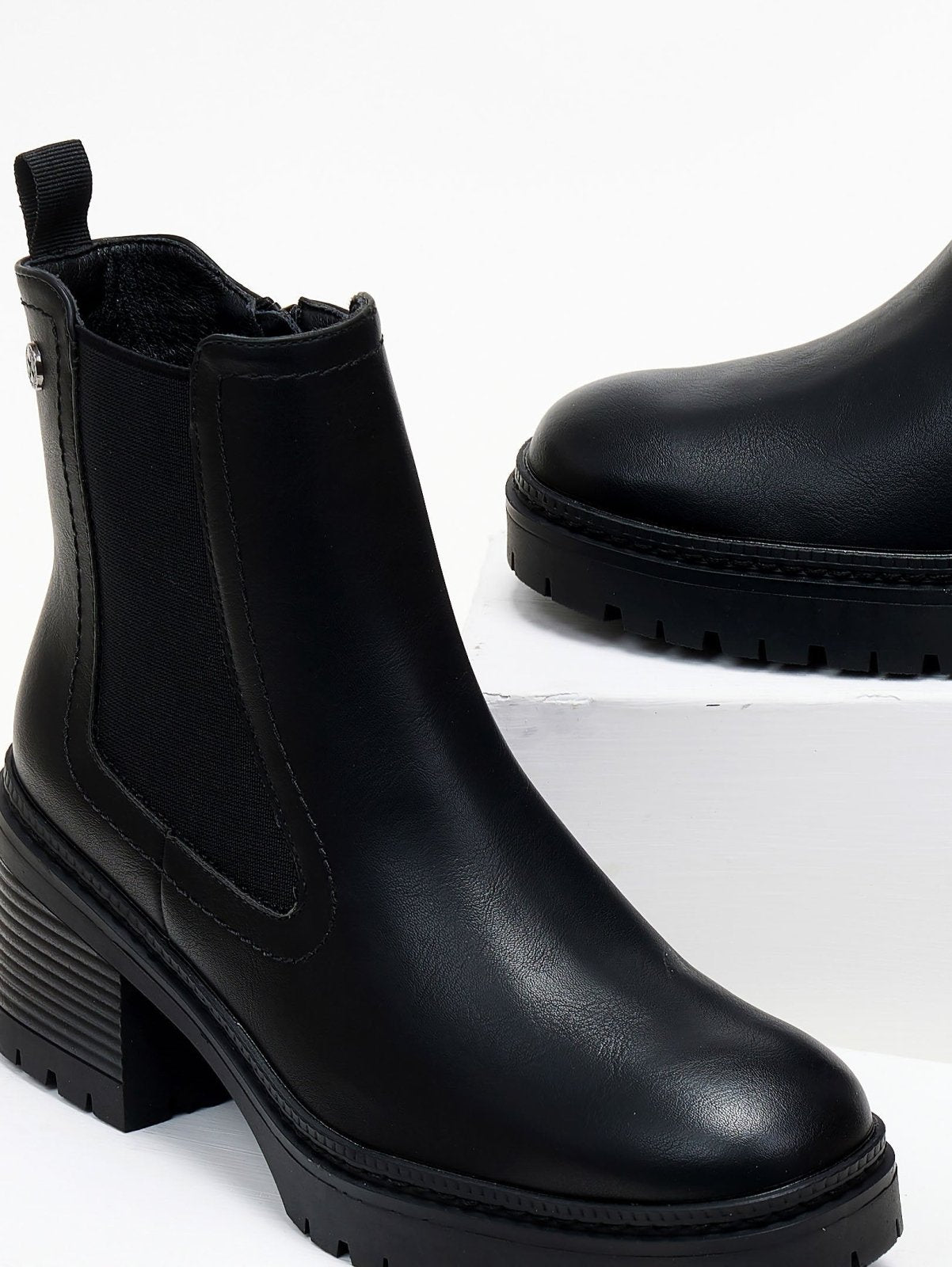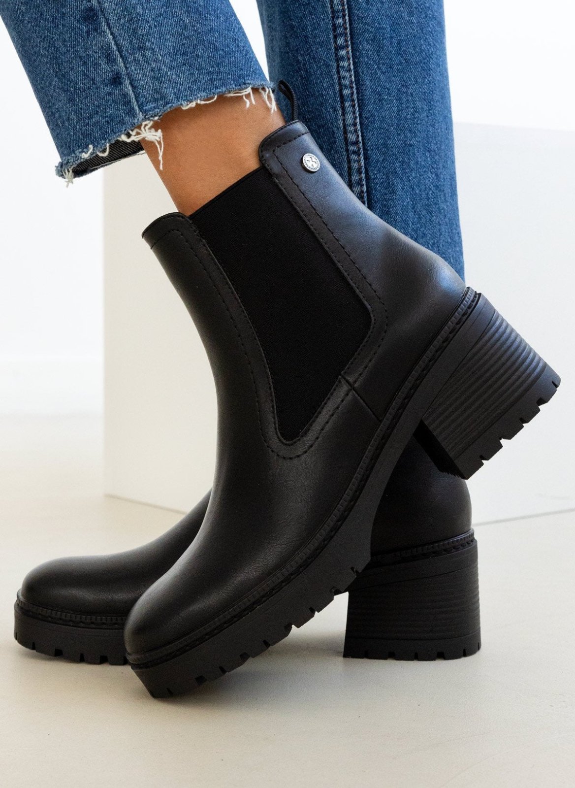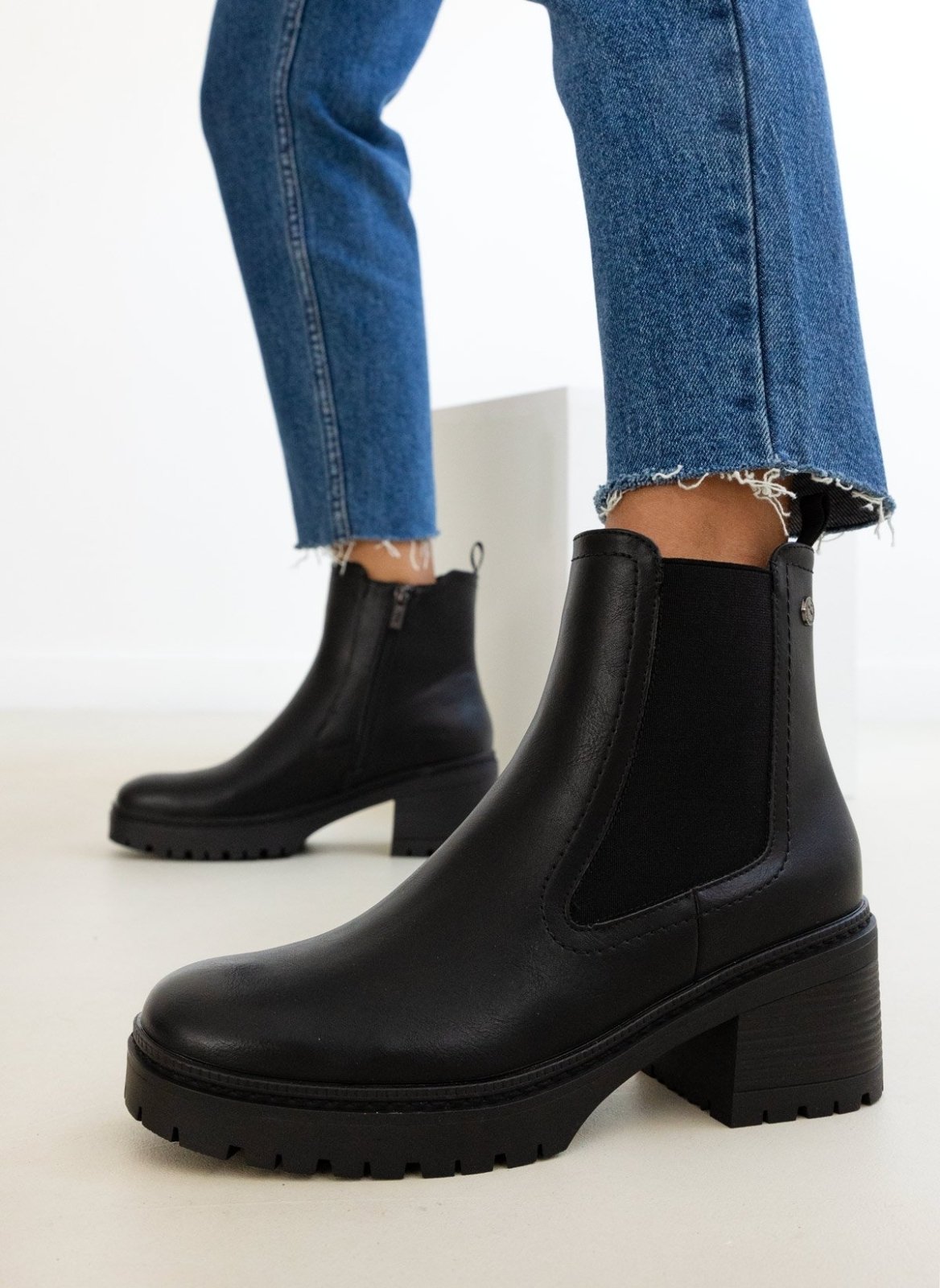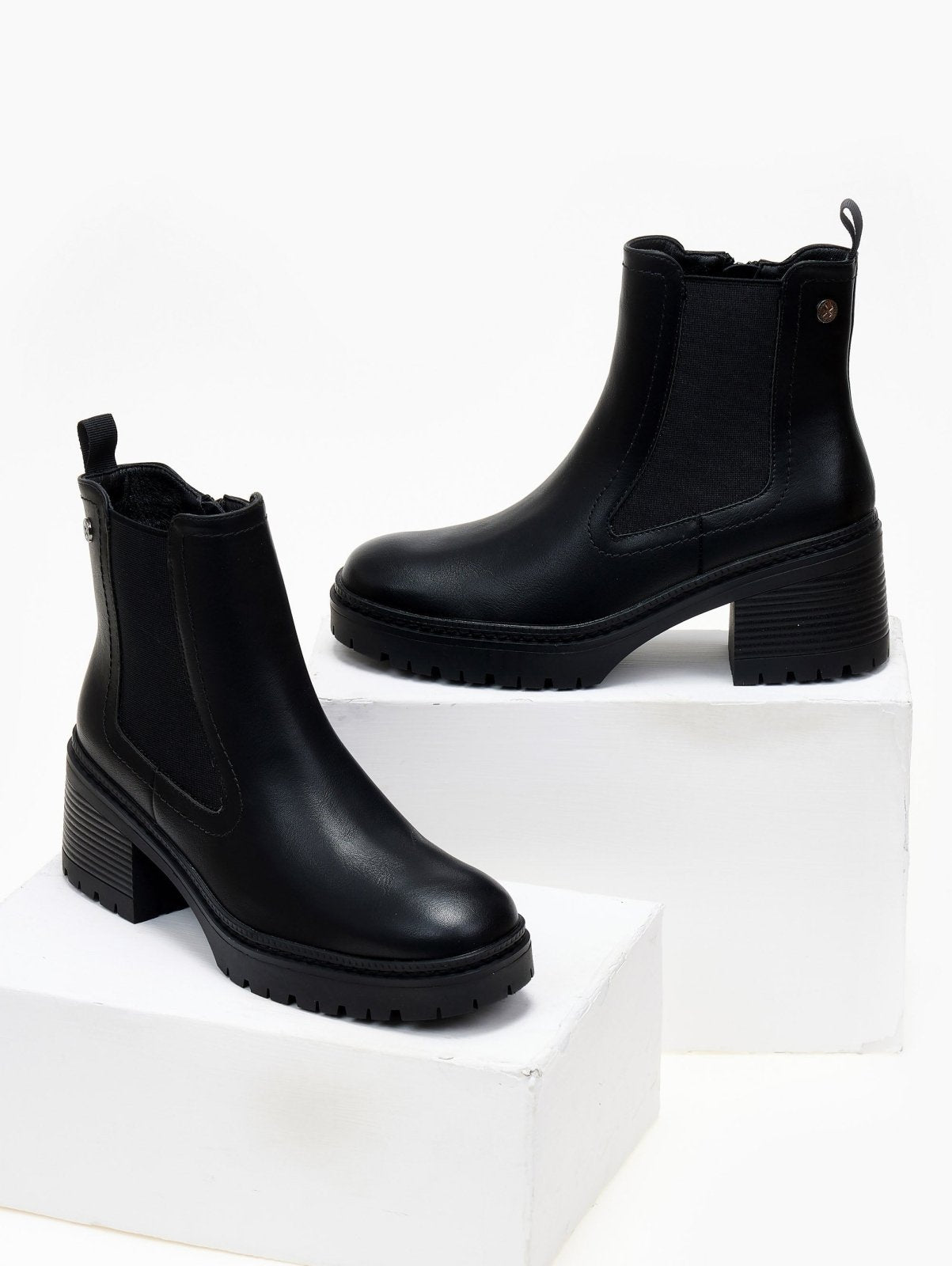 Μποτάκια chelsea Xti. Εγέ ξύλου στο τακούνι. Σχέδιο εξωτερικό ραφή περιμετρικά της σόλας. Comfort biotech μαλακός πάτος με memory foam. Εγκρίθηκε η Peta Vegan.