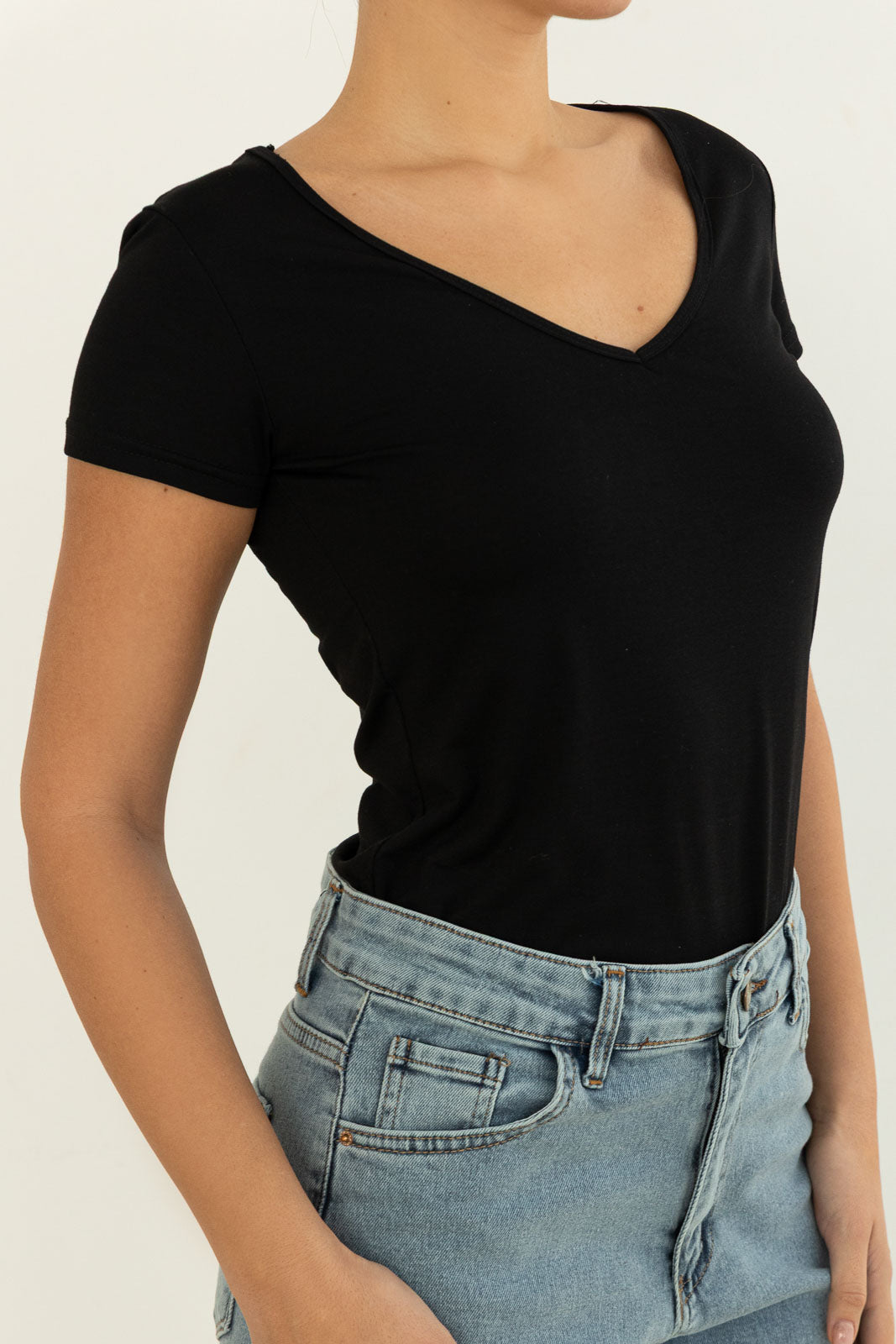 Μπλουζάκι basic κοντομάνικο - Μαύρο