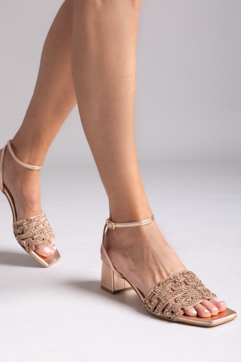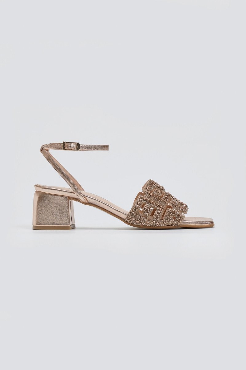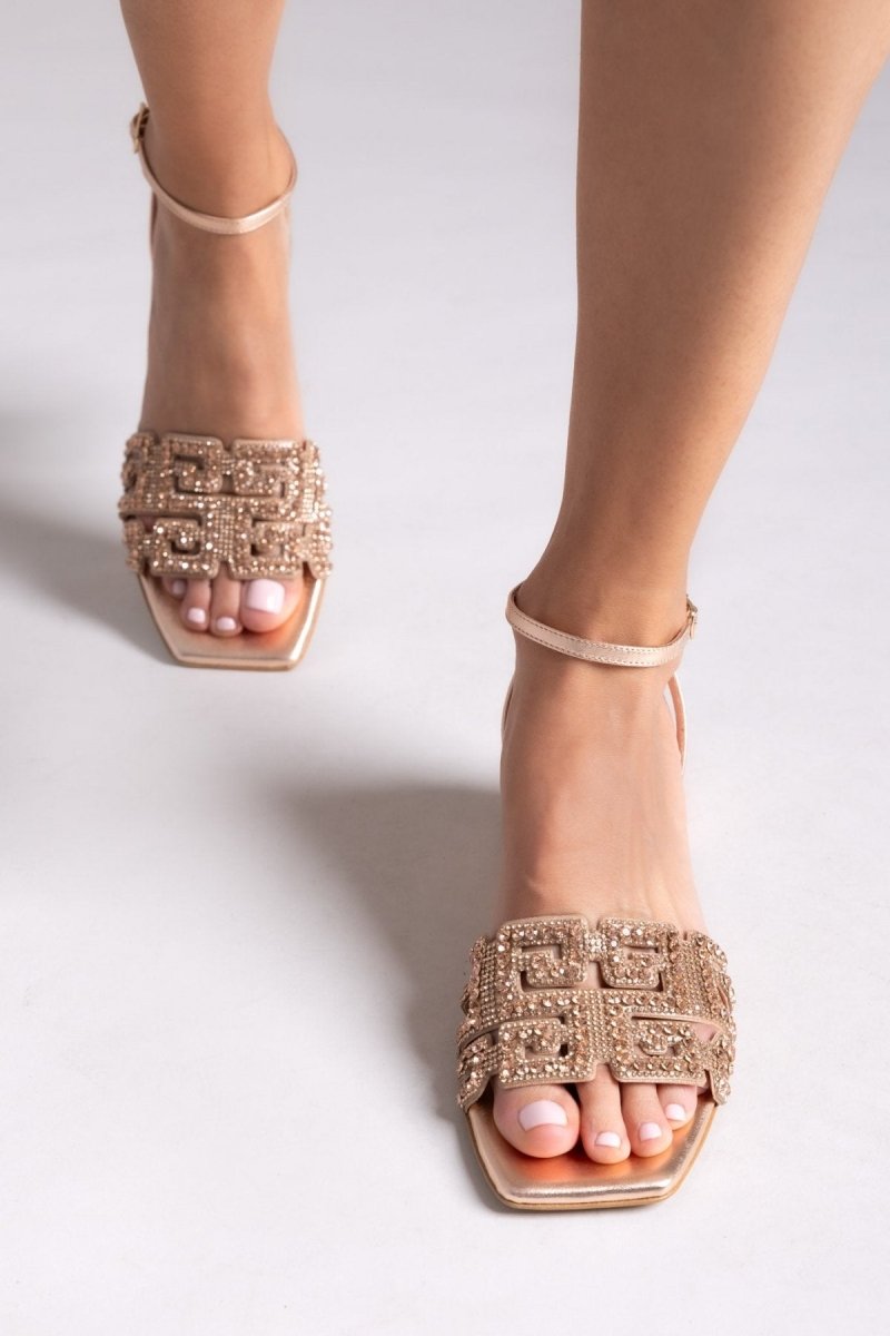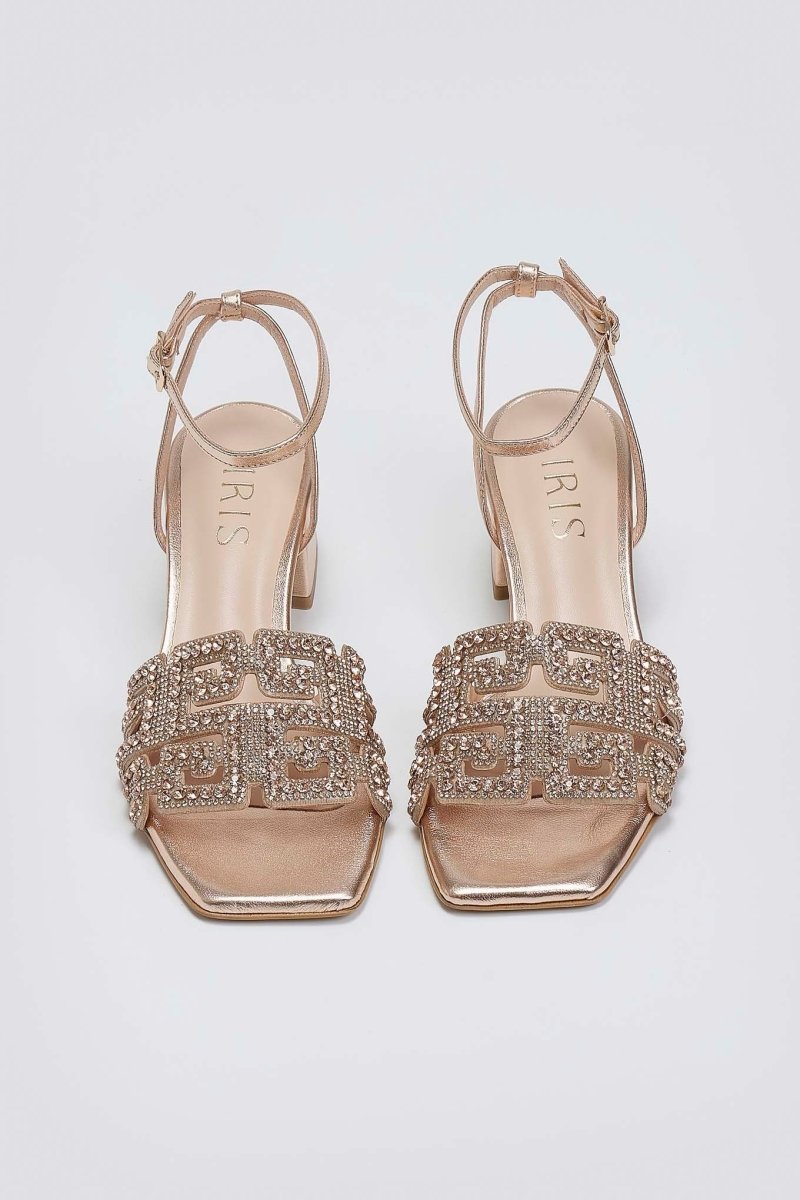 Πέδιλα δερμάτινα με στρας φάσα Iris sandals - Χαλκός