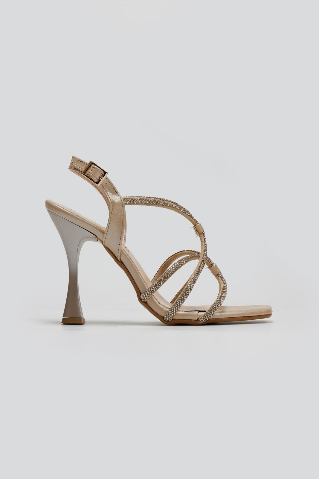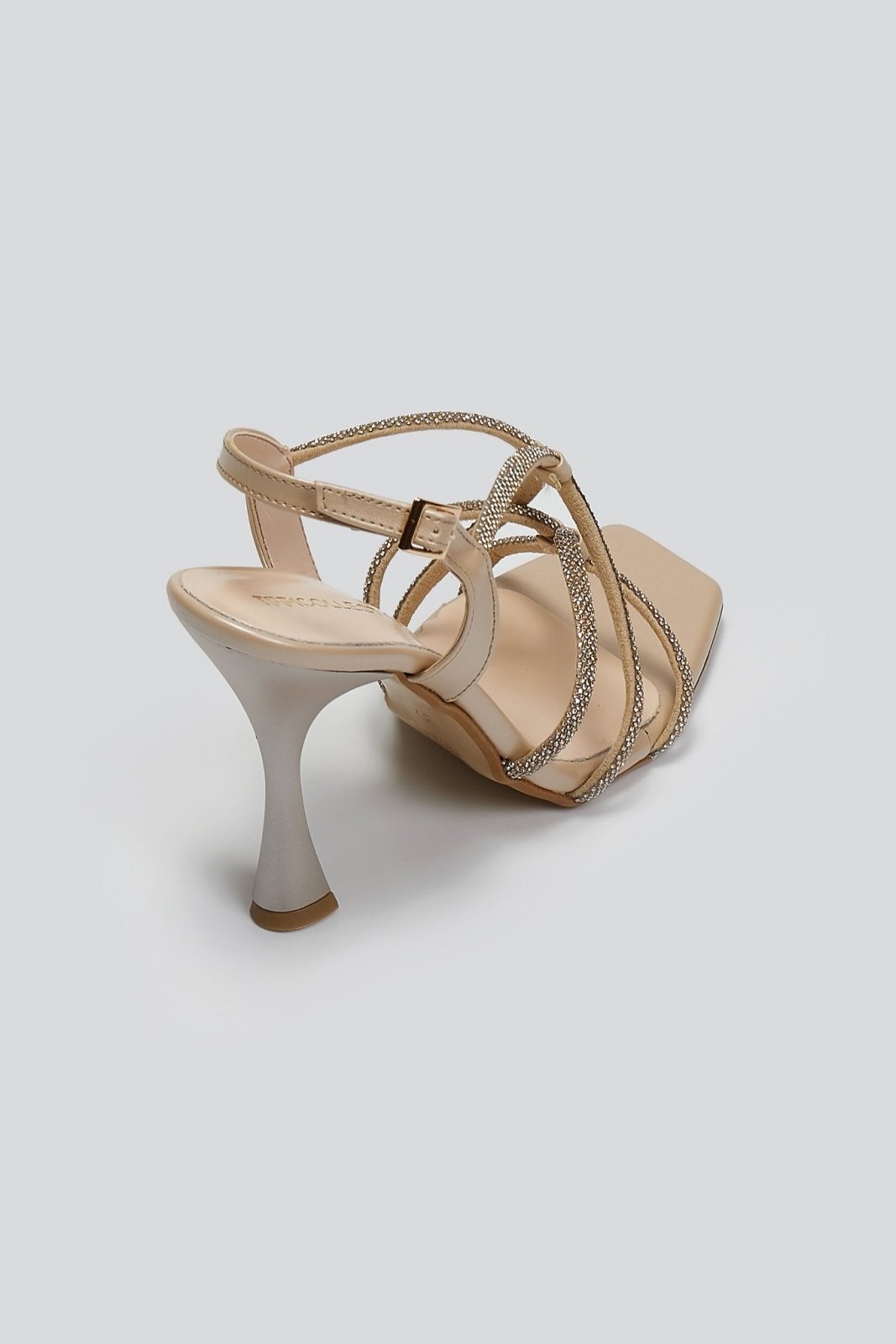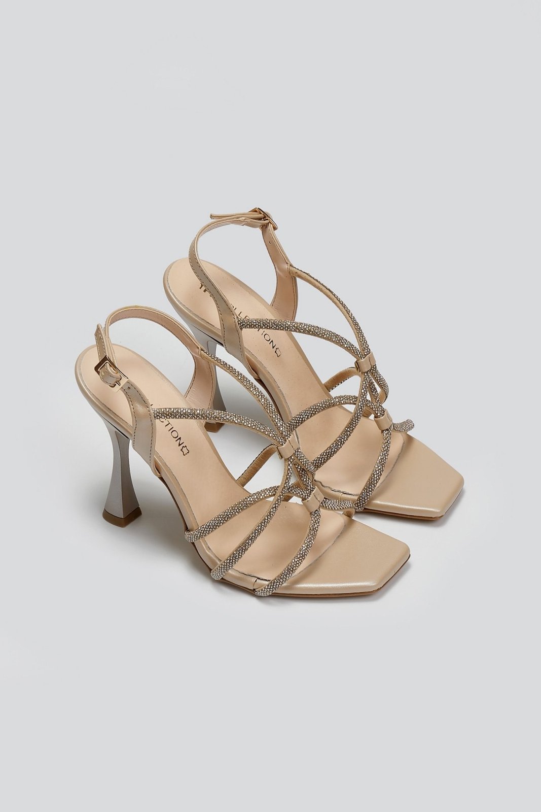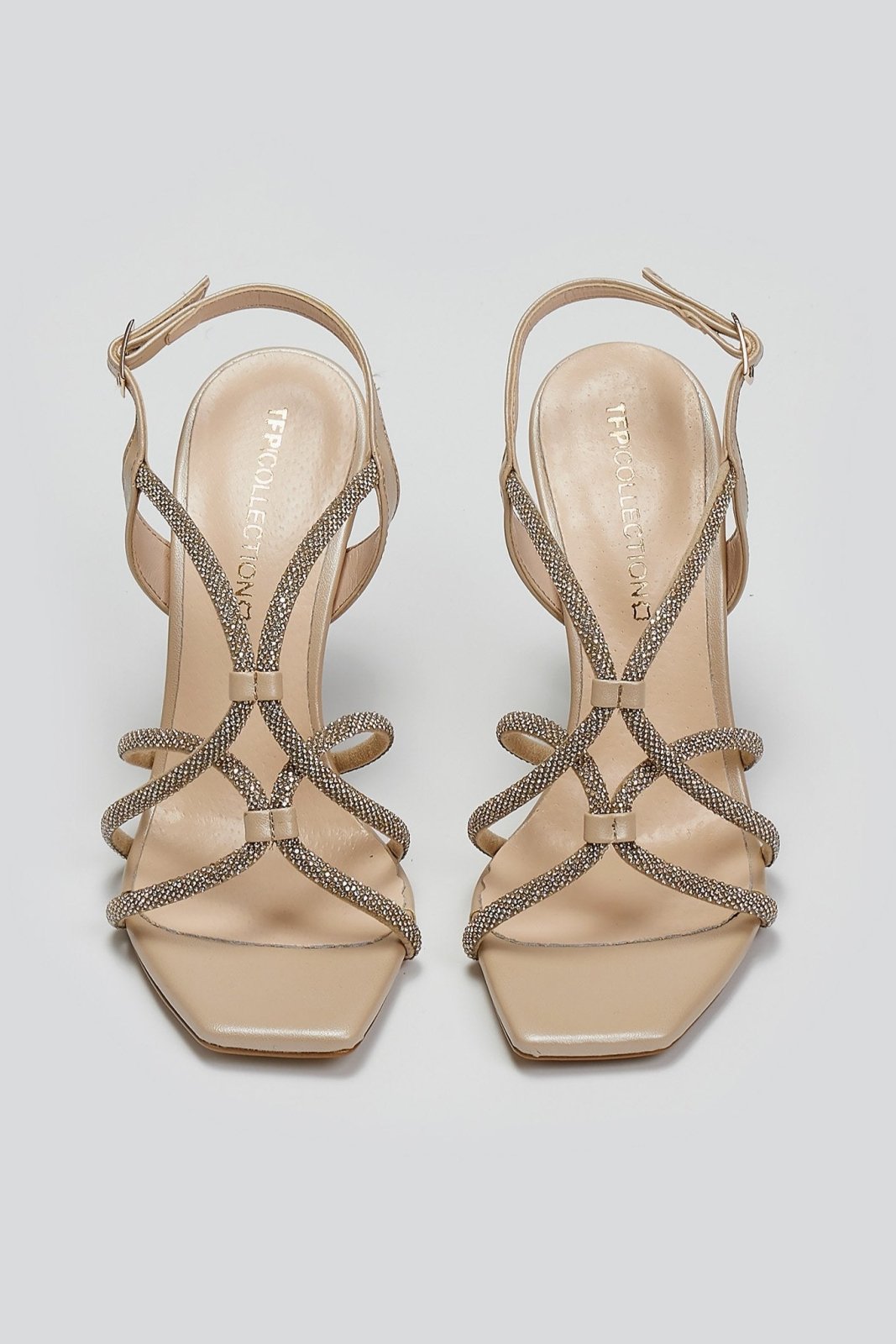 Πέδιλα με στρας λουράκια TFP. Δένουν στο πλάι με μικρό τοκά. Καρέ γραμμή. Δερμάτινος πάτος. Ελληνικής κατασκευής.