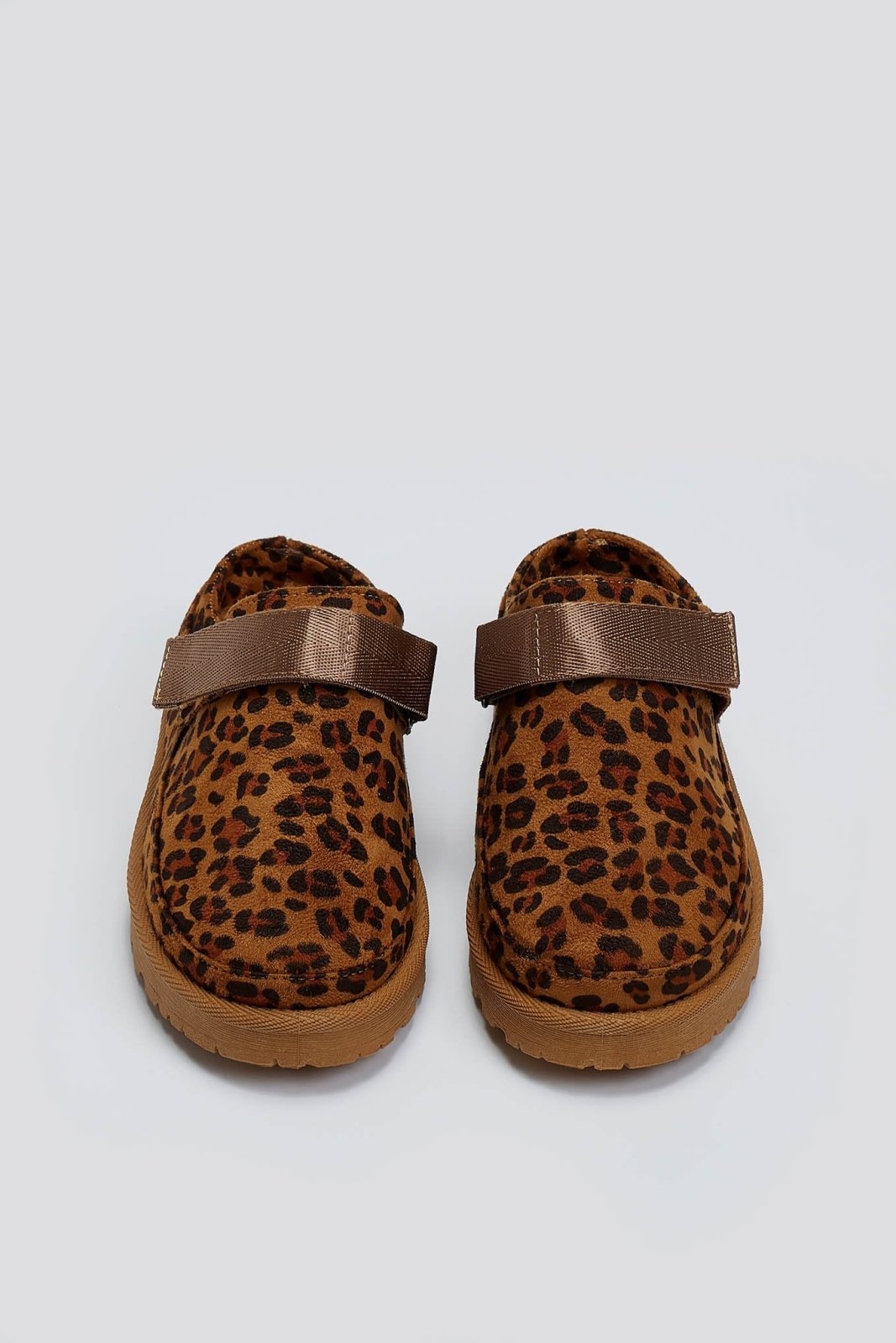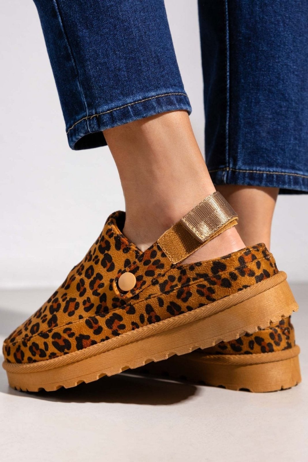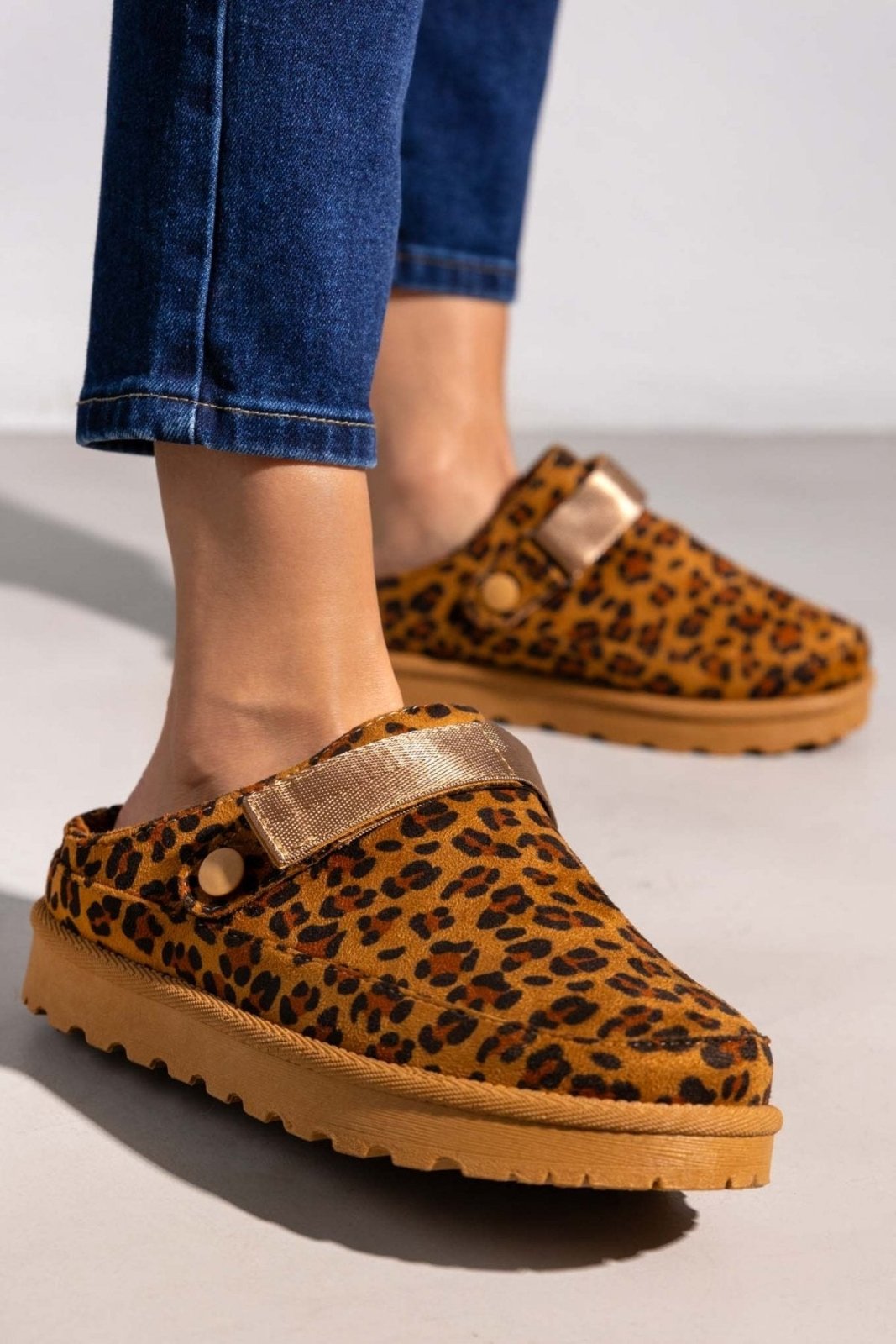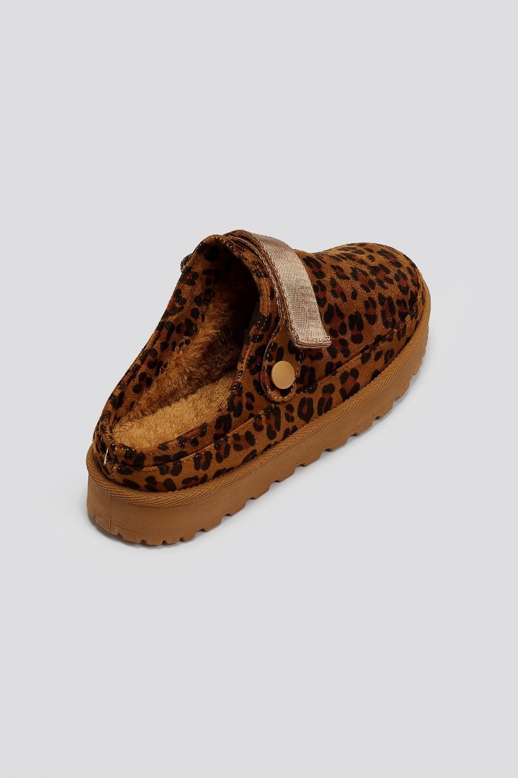 Παντόφλες suede με velcro και συνθετική γούνα ERYNN - Leopard