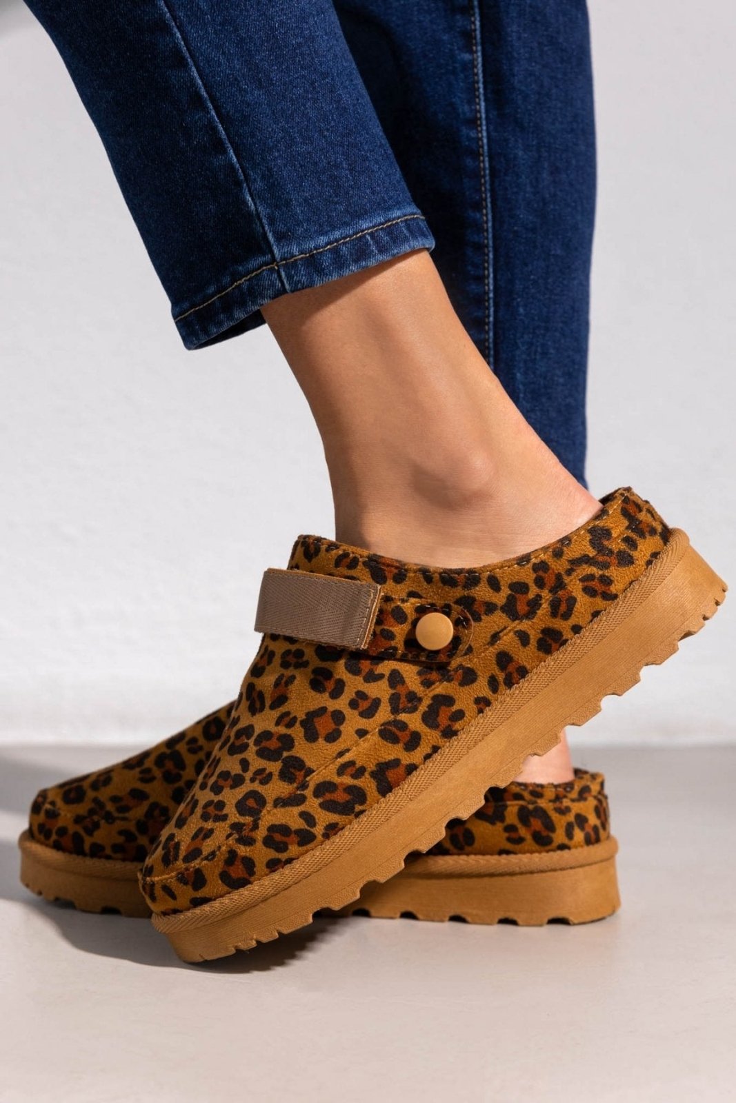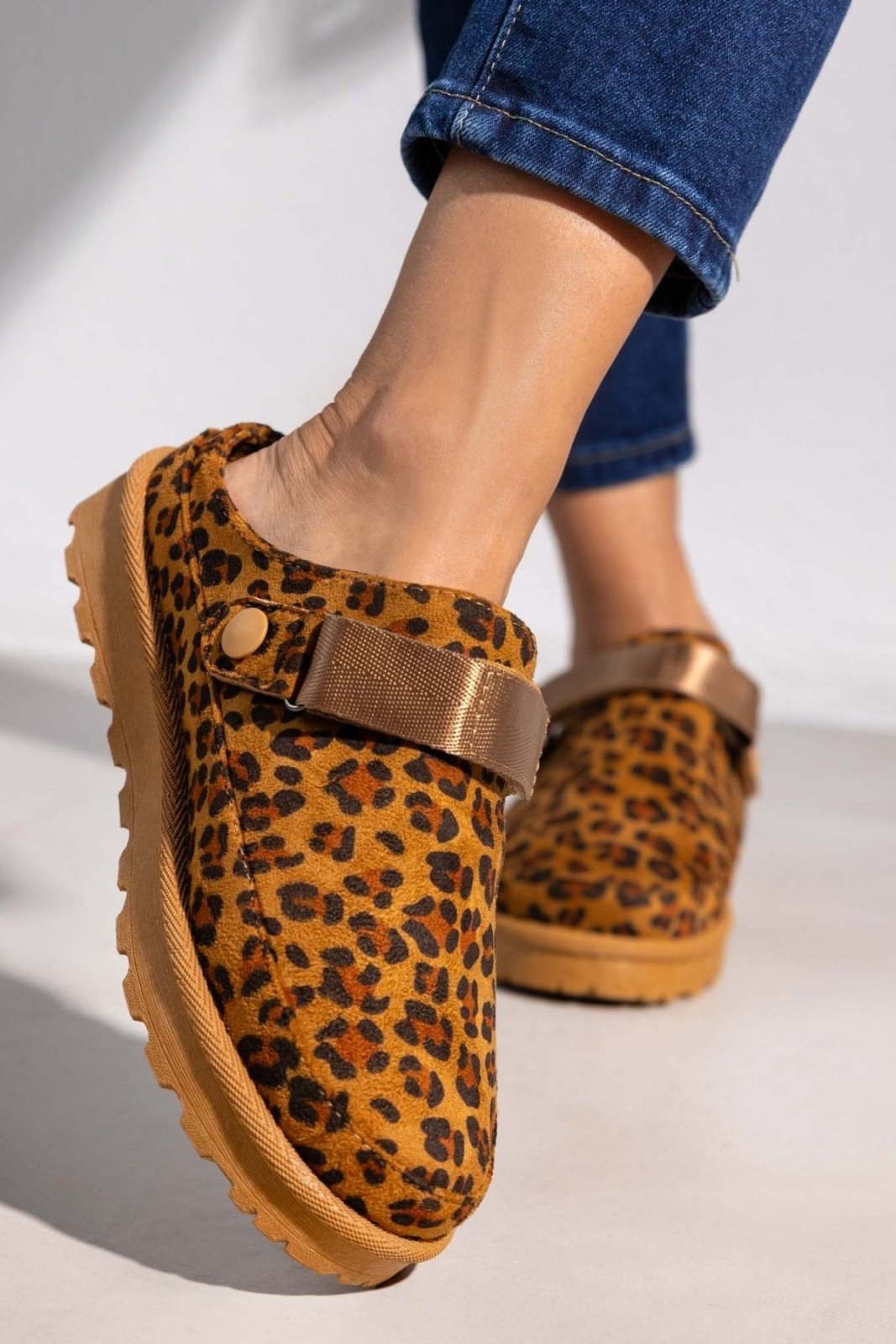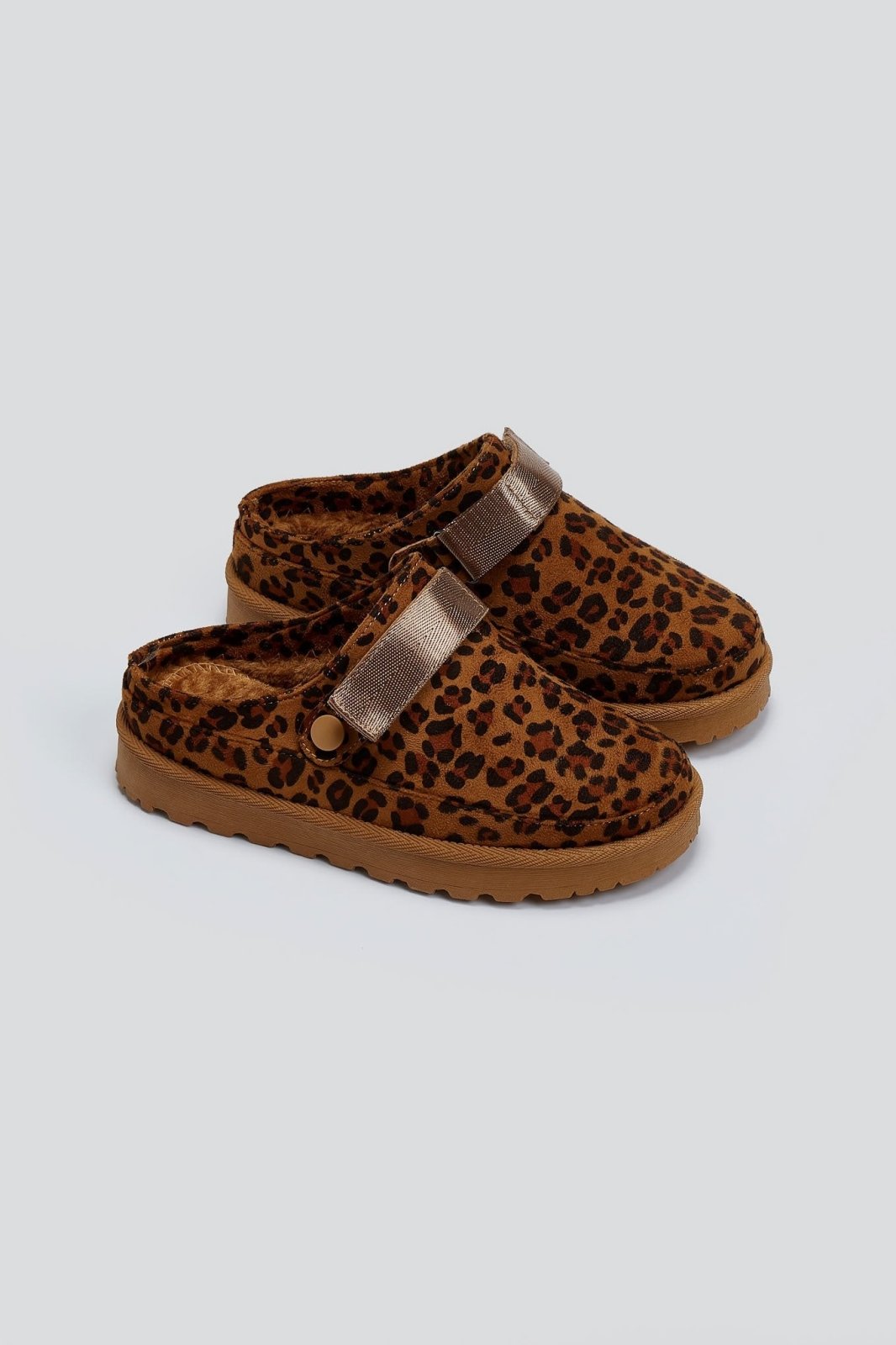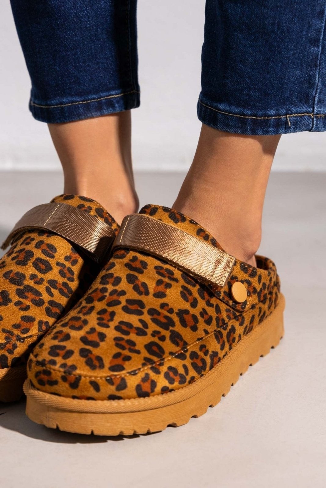 Παντόφλες suede με velcro και συνθετική γούνα ERYNN - Leopard