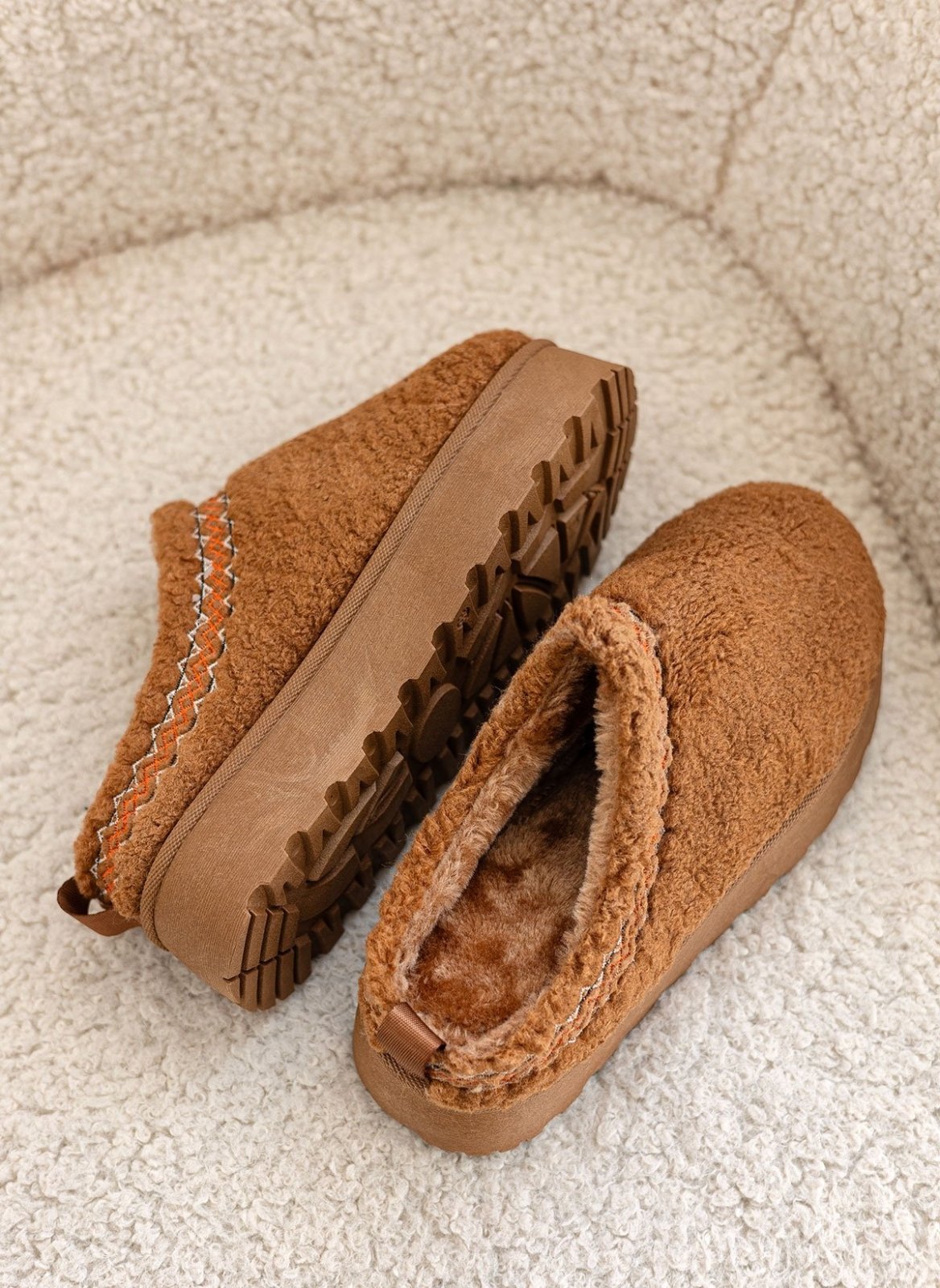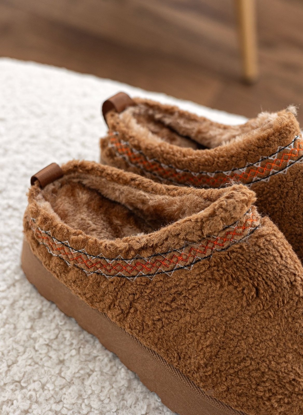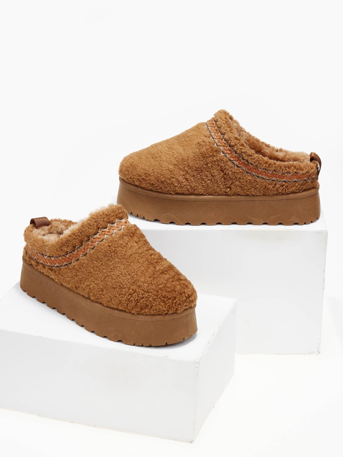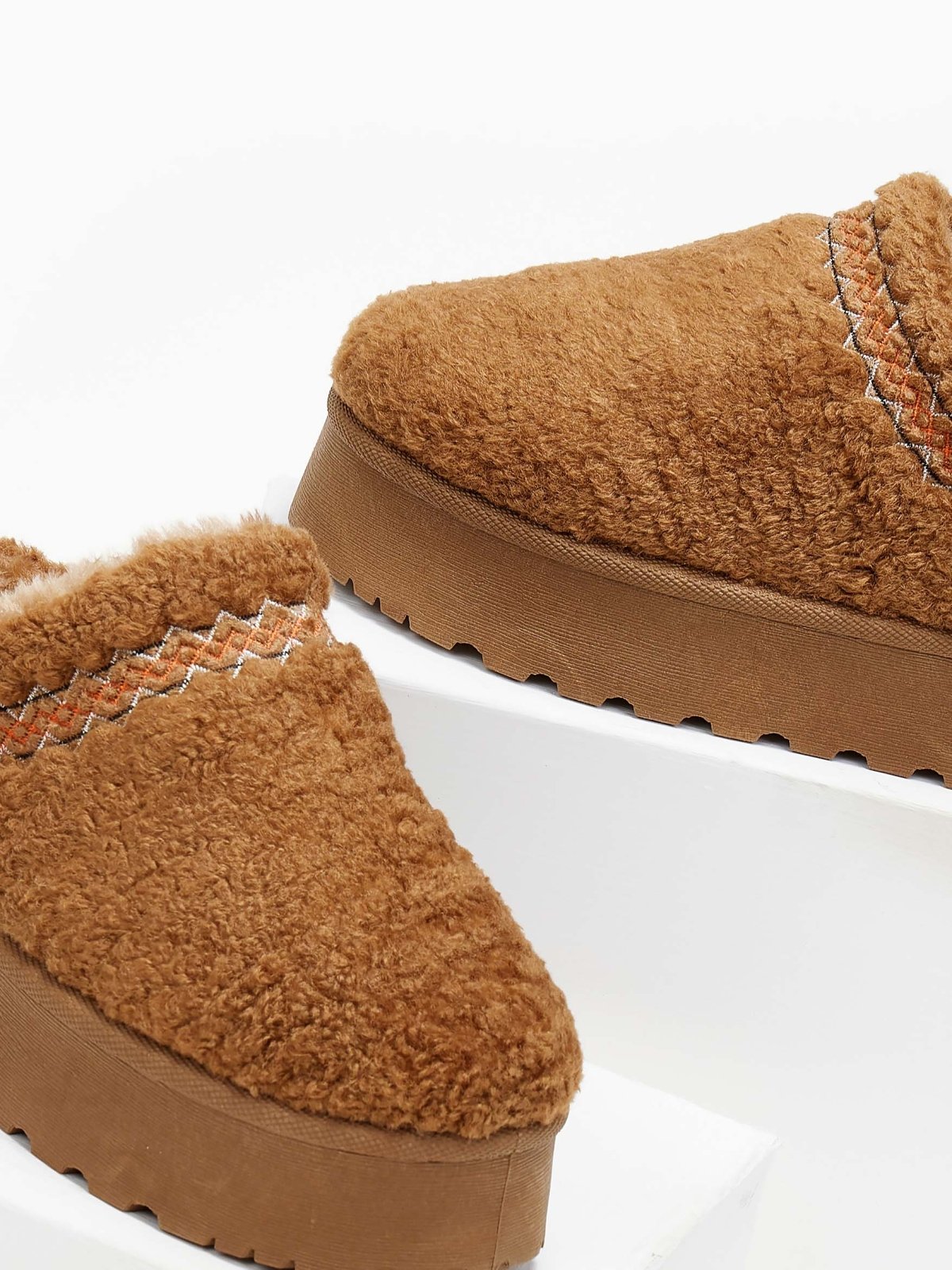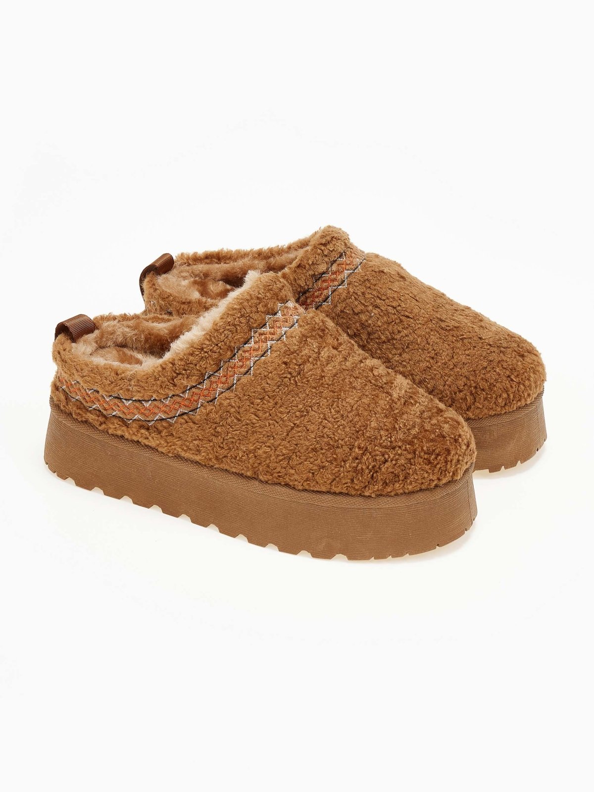 Παντόφλες teddy με boho τρέσα στο περίγραμμα. επένδυση από συνθετική γούνα. Ψηλή σόλα.