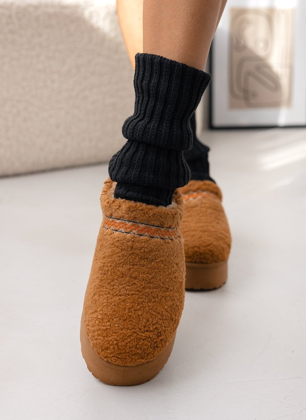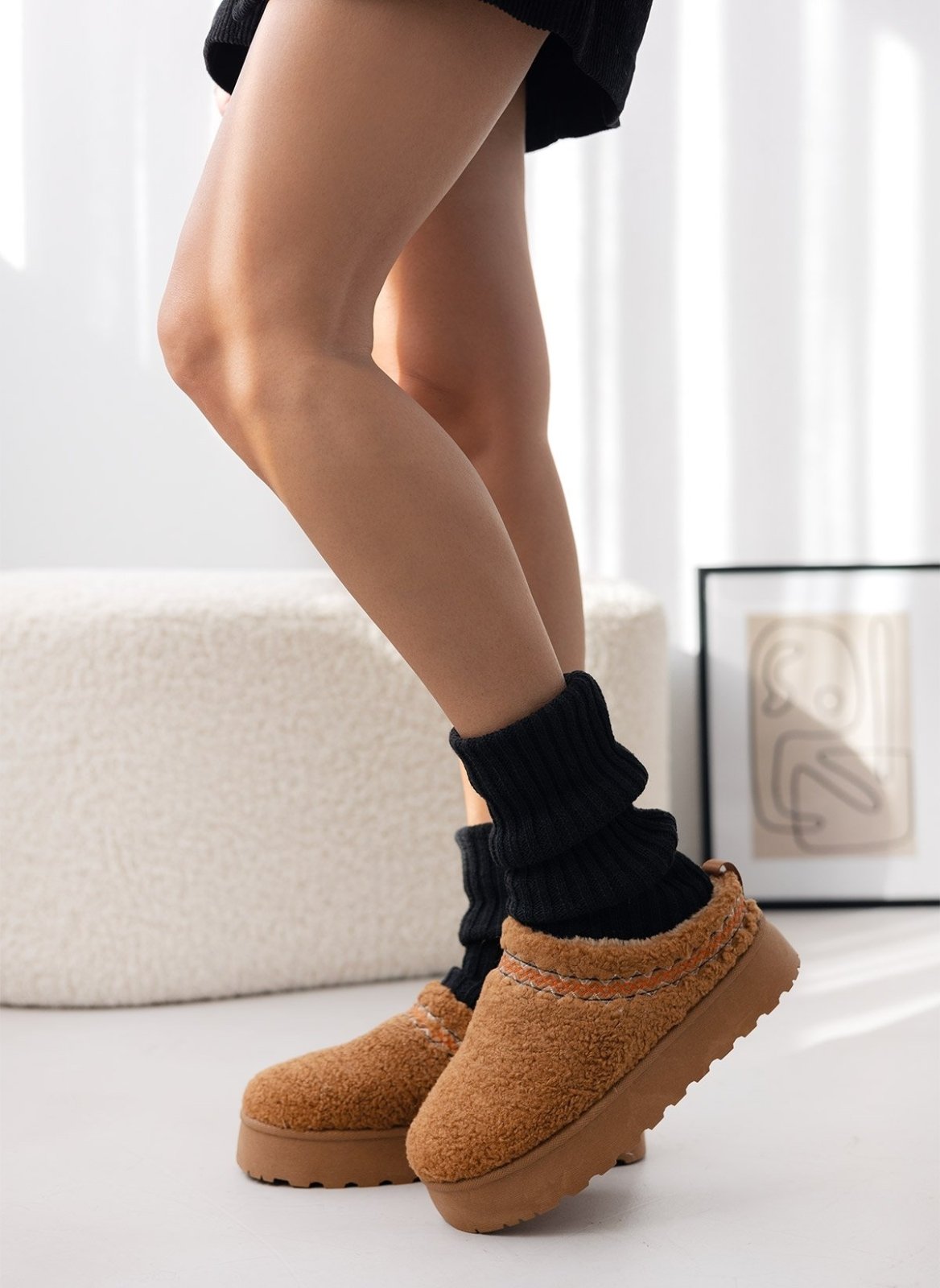 Παντόφλες teddy με συνθετική γούνα - Κάμελ