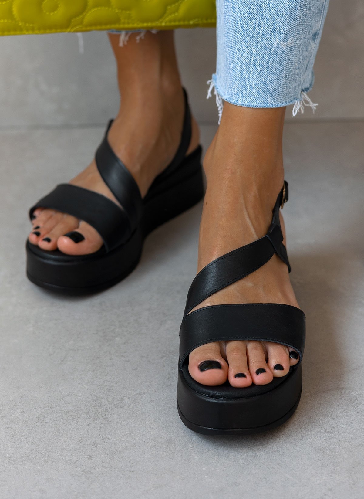 Πλατφόρμες από γνήσιο δέρμα tfp. Δένουν με λουράκι στο πλάι. Δερμάτινος πάτος με ενίσχυση. Ελληνικής κατασκευής.