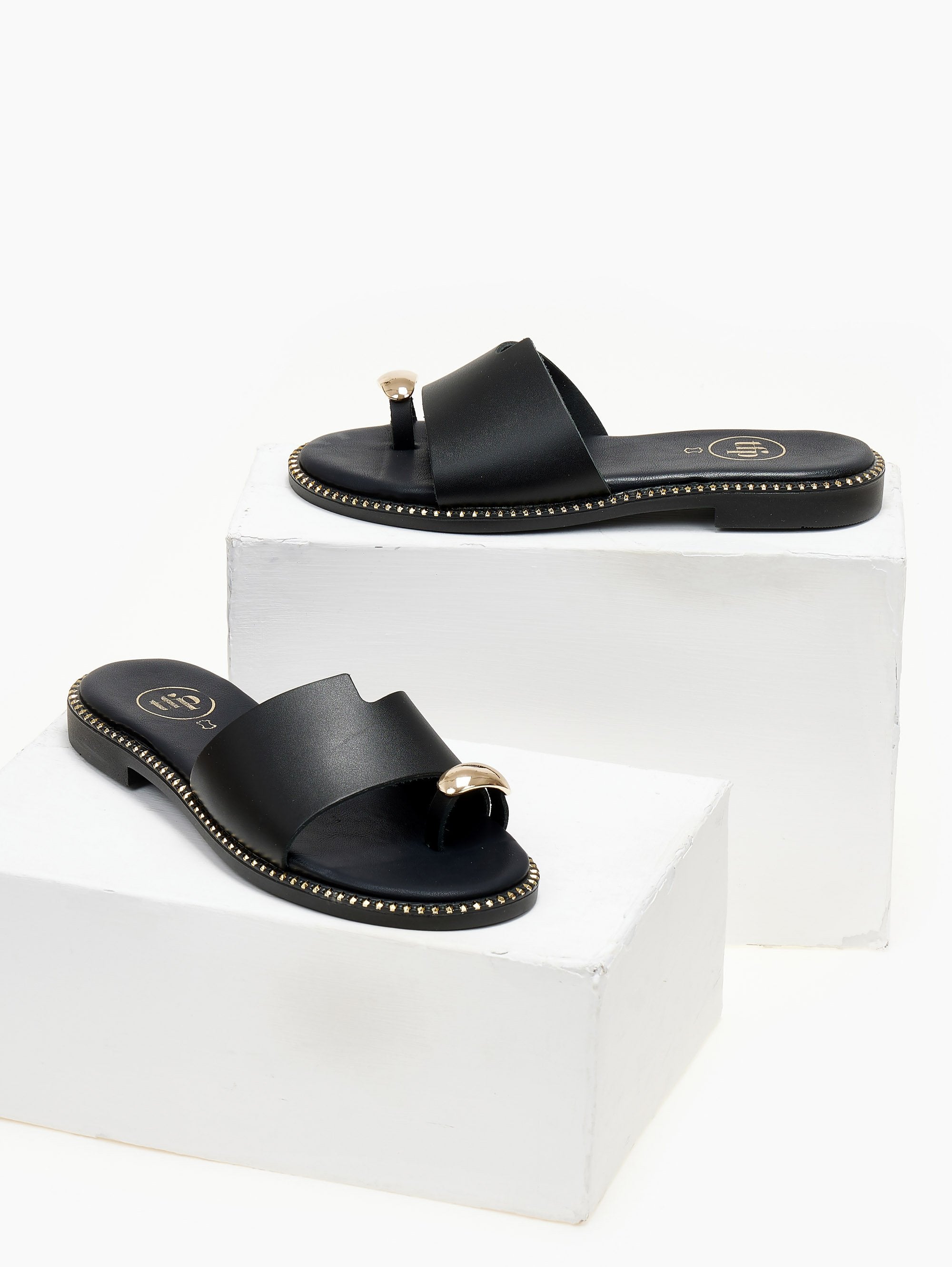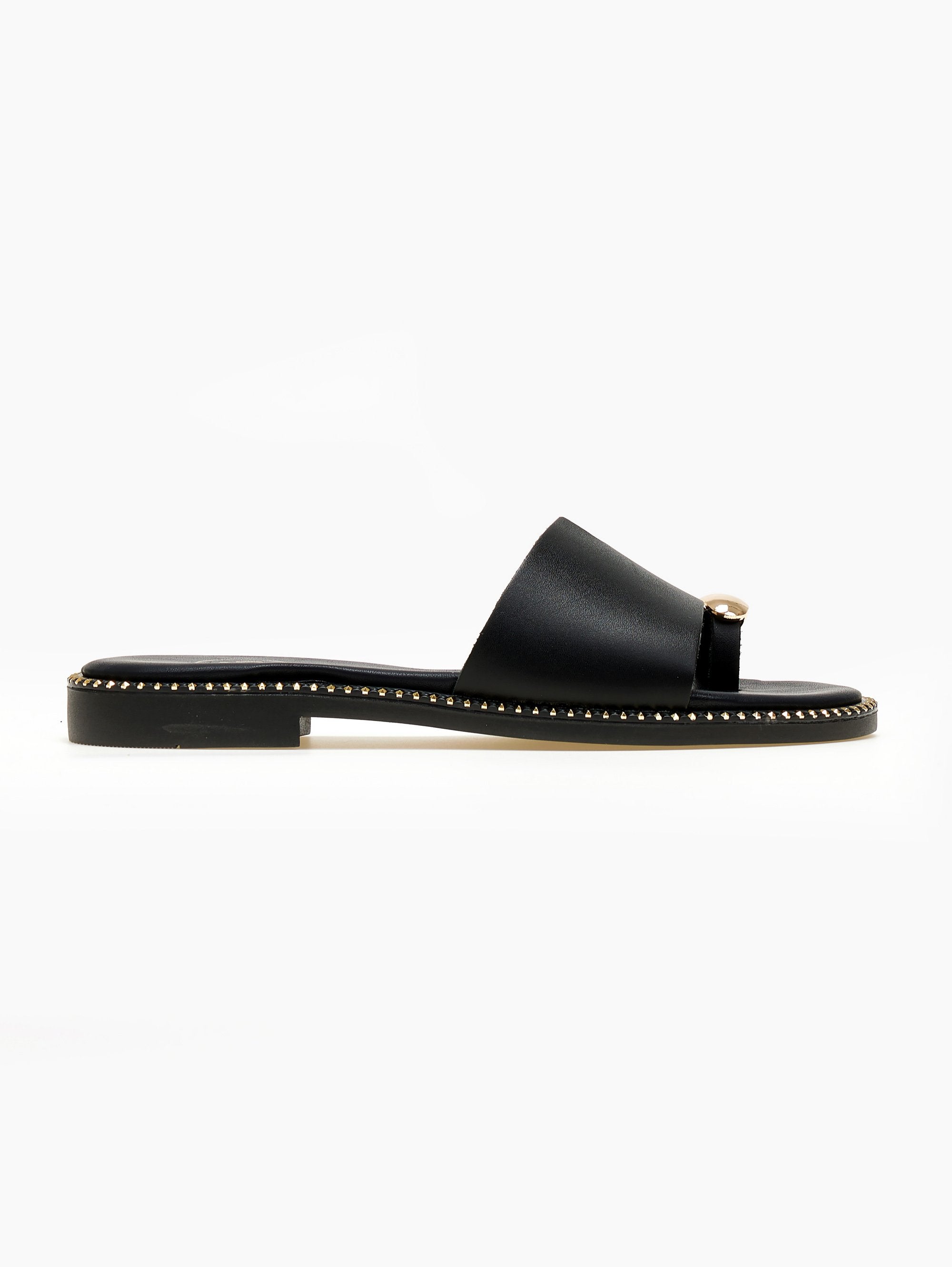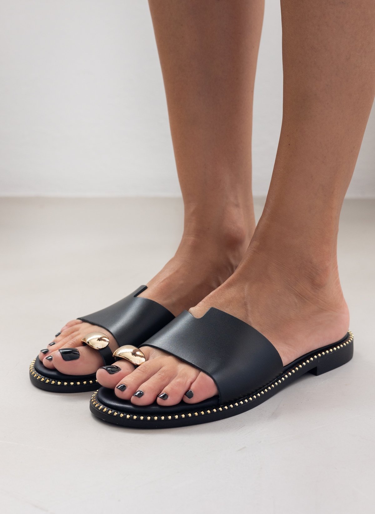 Σανδάλια δερμάτινα με μεταλλικό σχέδιο tfp - Μαύρο