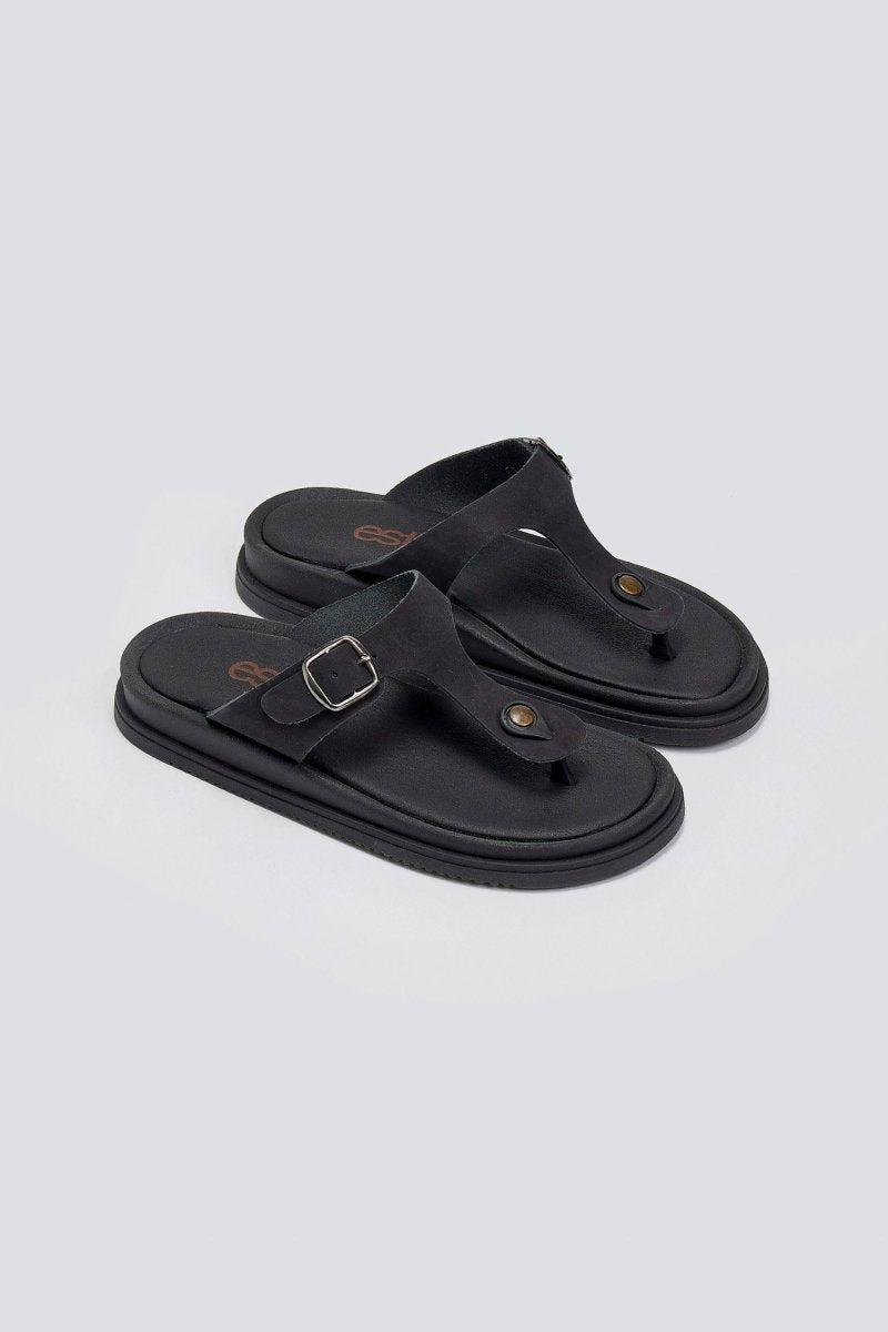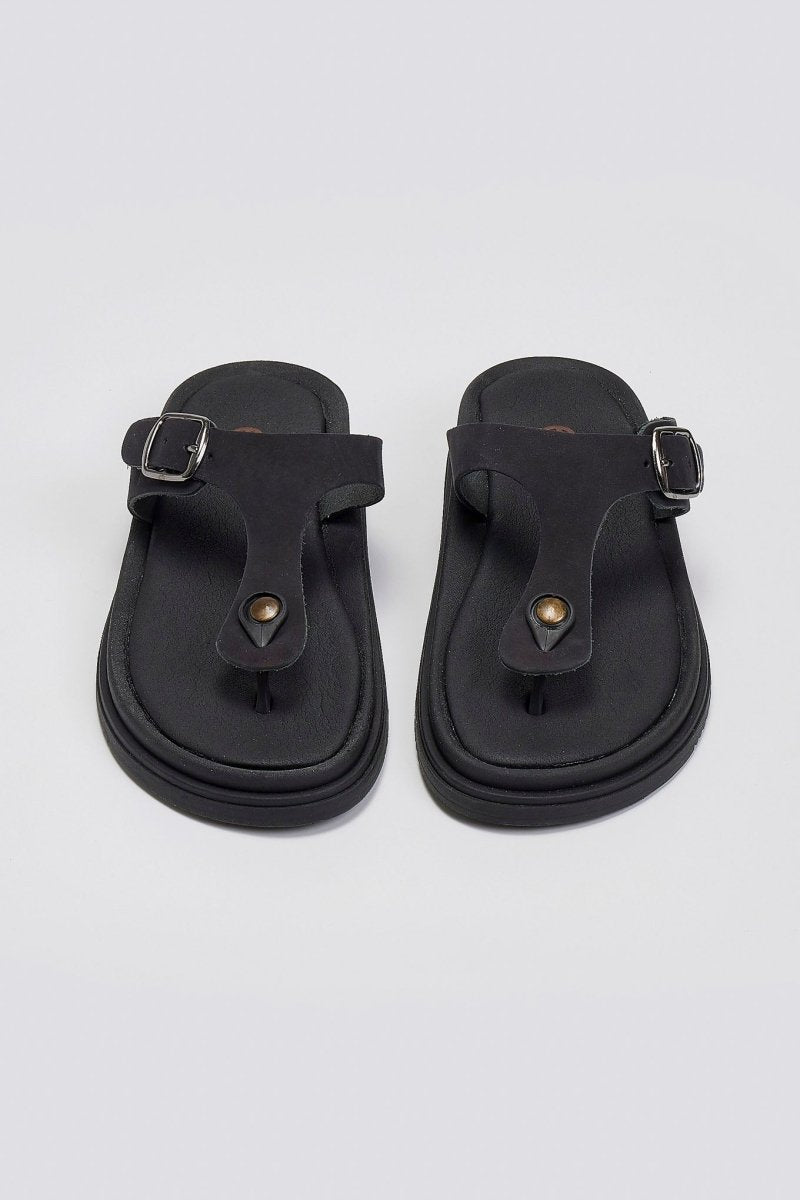 Σανδάλια δερμάτινα με τοκά Estil - Μαύρο