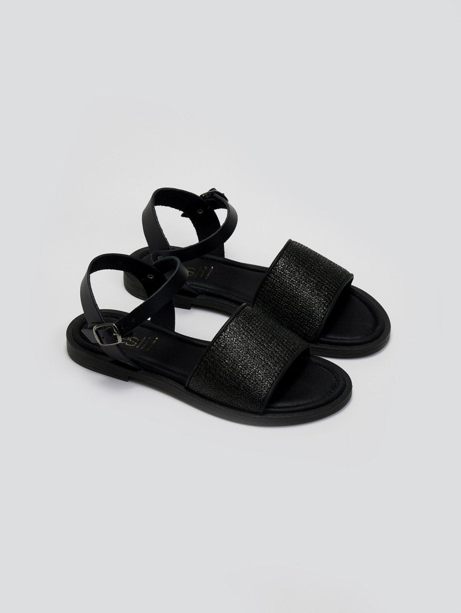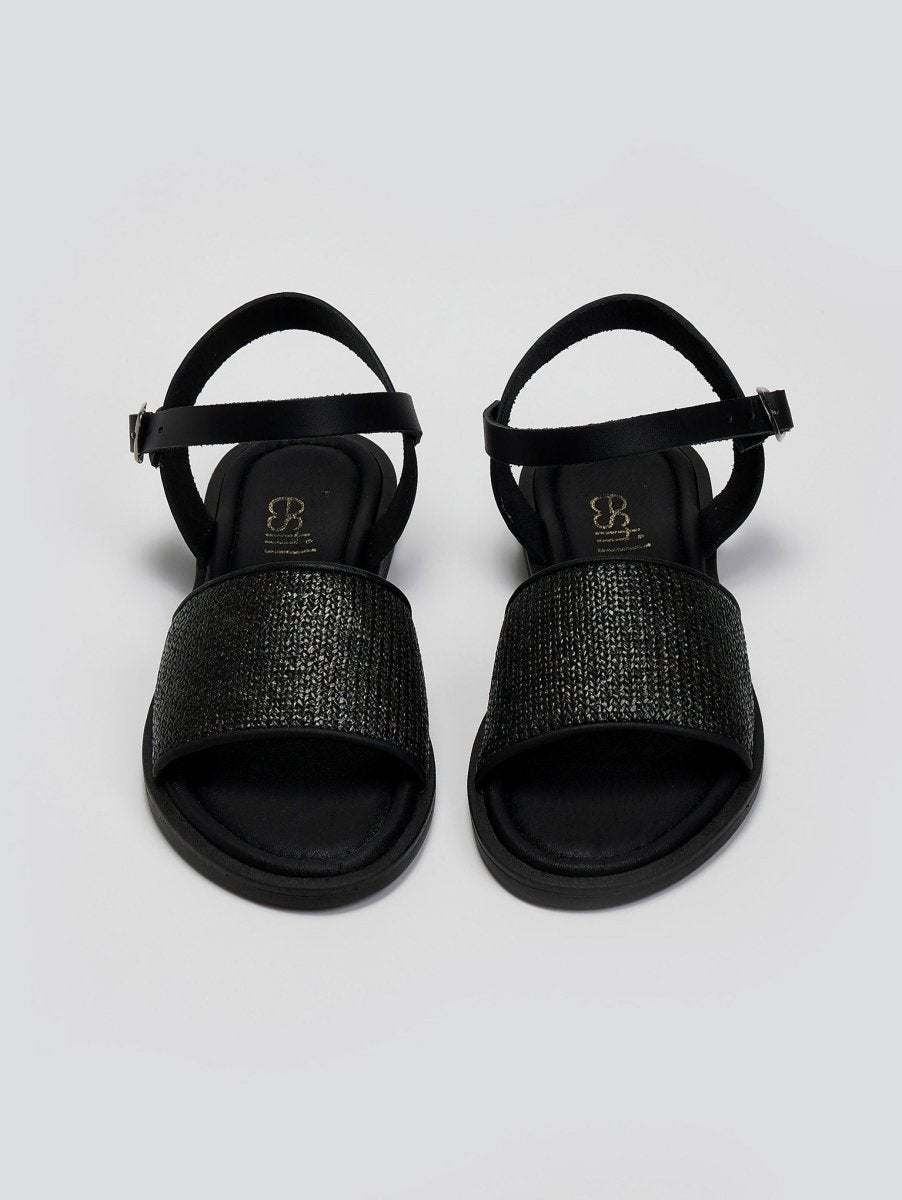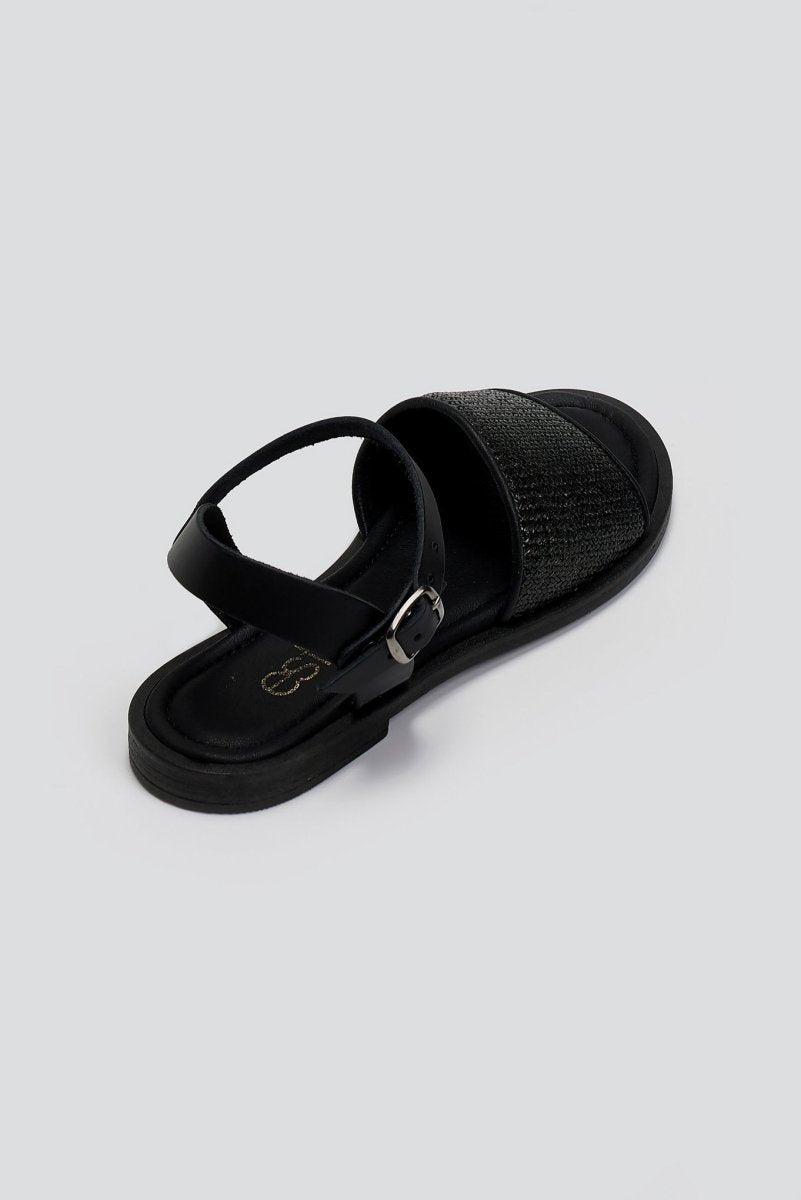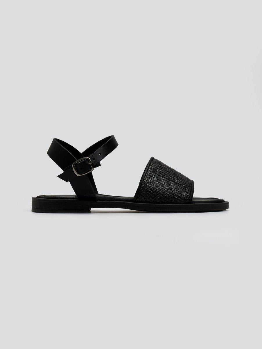 Σανδάλια δερμάτινα με ψάθα Estil - Μαύρο