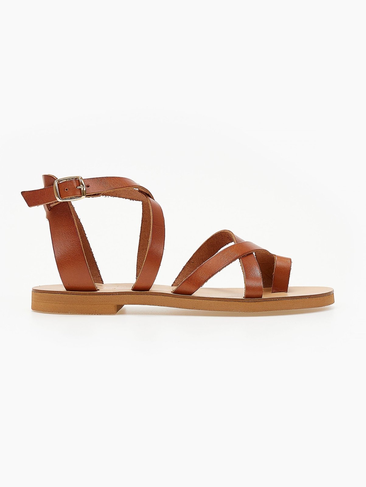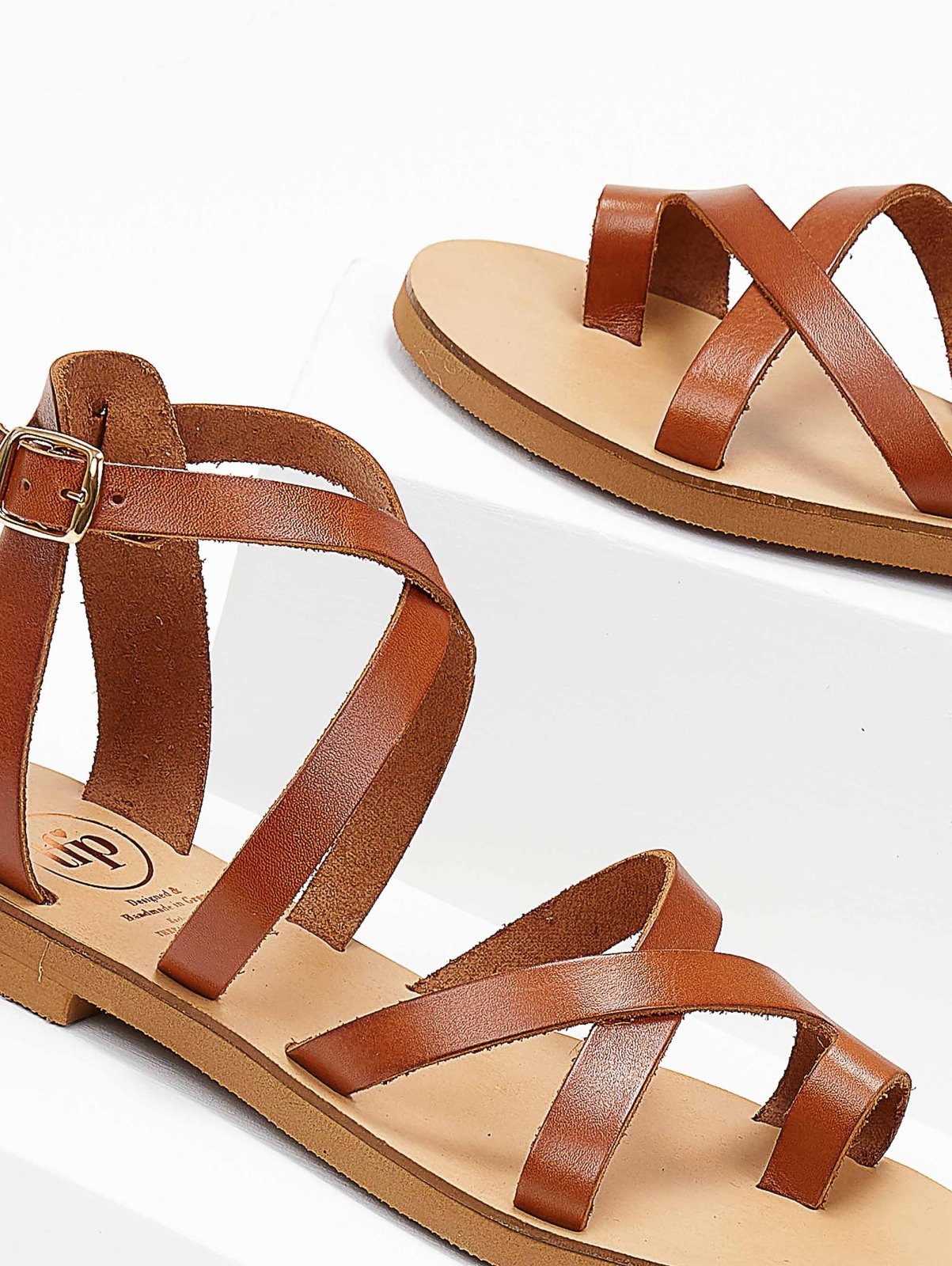 TFP ίσια δερμάτινα σανδάλια με χιαστί δέσιμο στο κουτάκι. Ελληνικής κατασκευής, χειροποίητα.