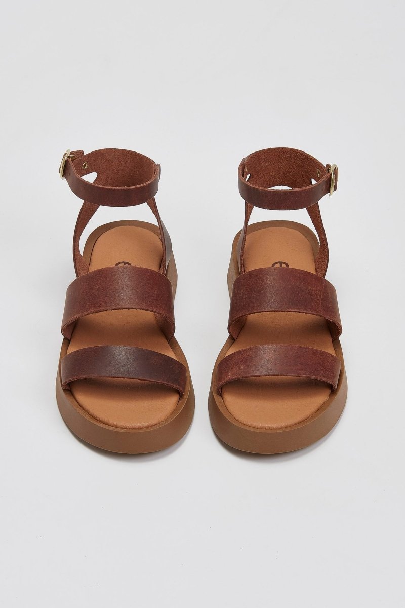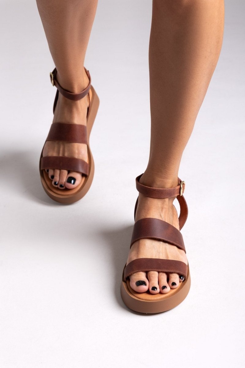 Σανδάλια από γνήσιο δέρμα Estil. Δένουν με μπαρέτα και μεταλλικό τοκά στο ύψος του αστραγάλου. Μαλακός πάτος με ενίσχυση. Ελληνικής κατασκευής.