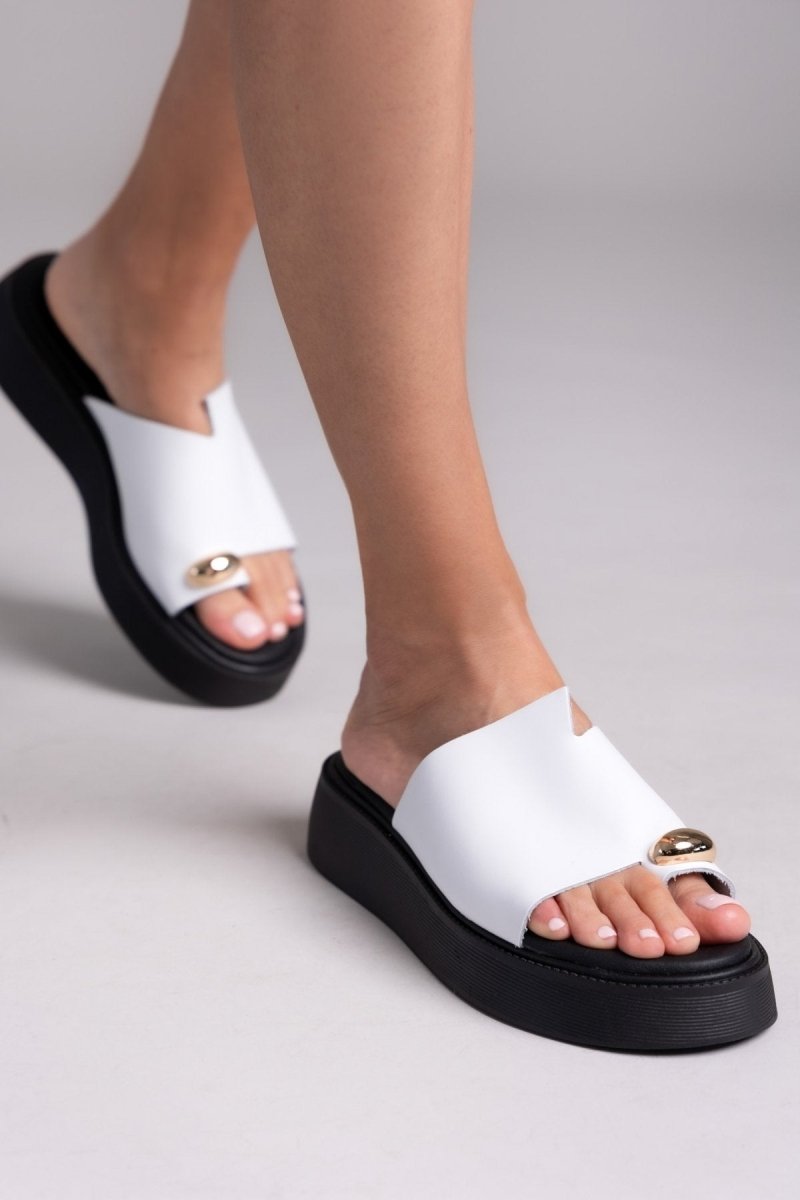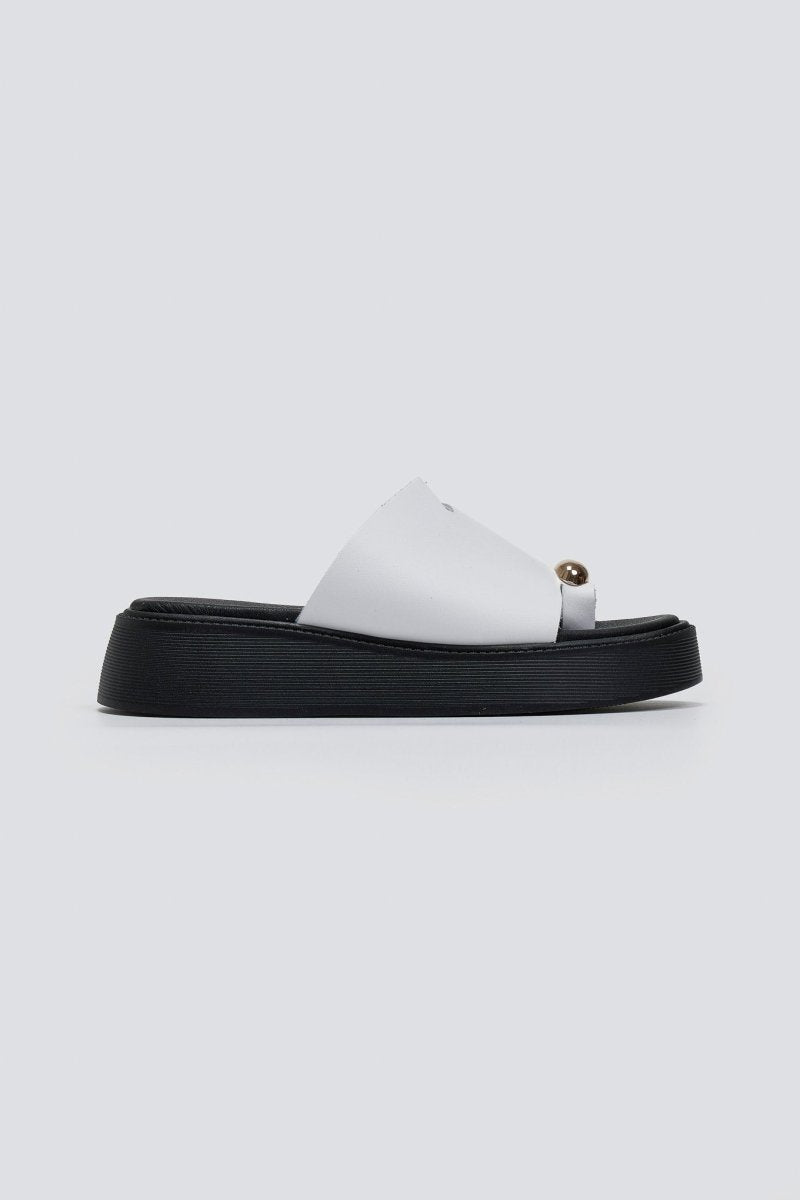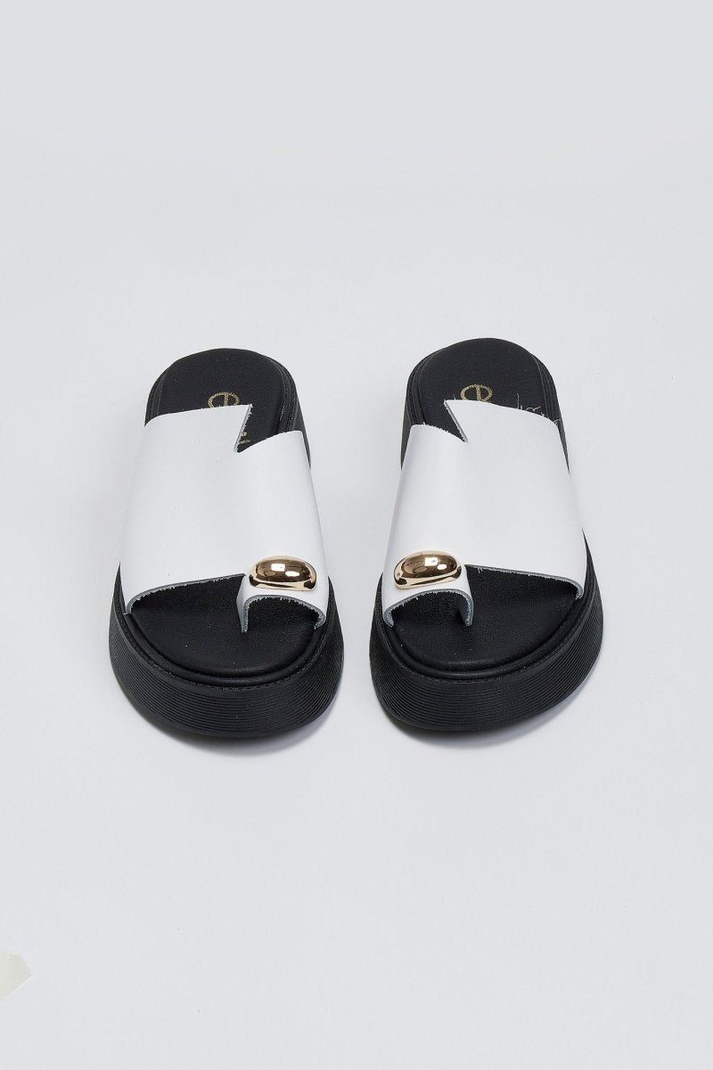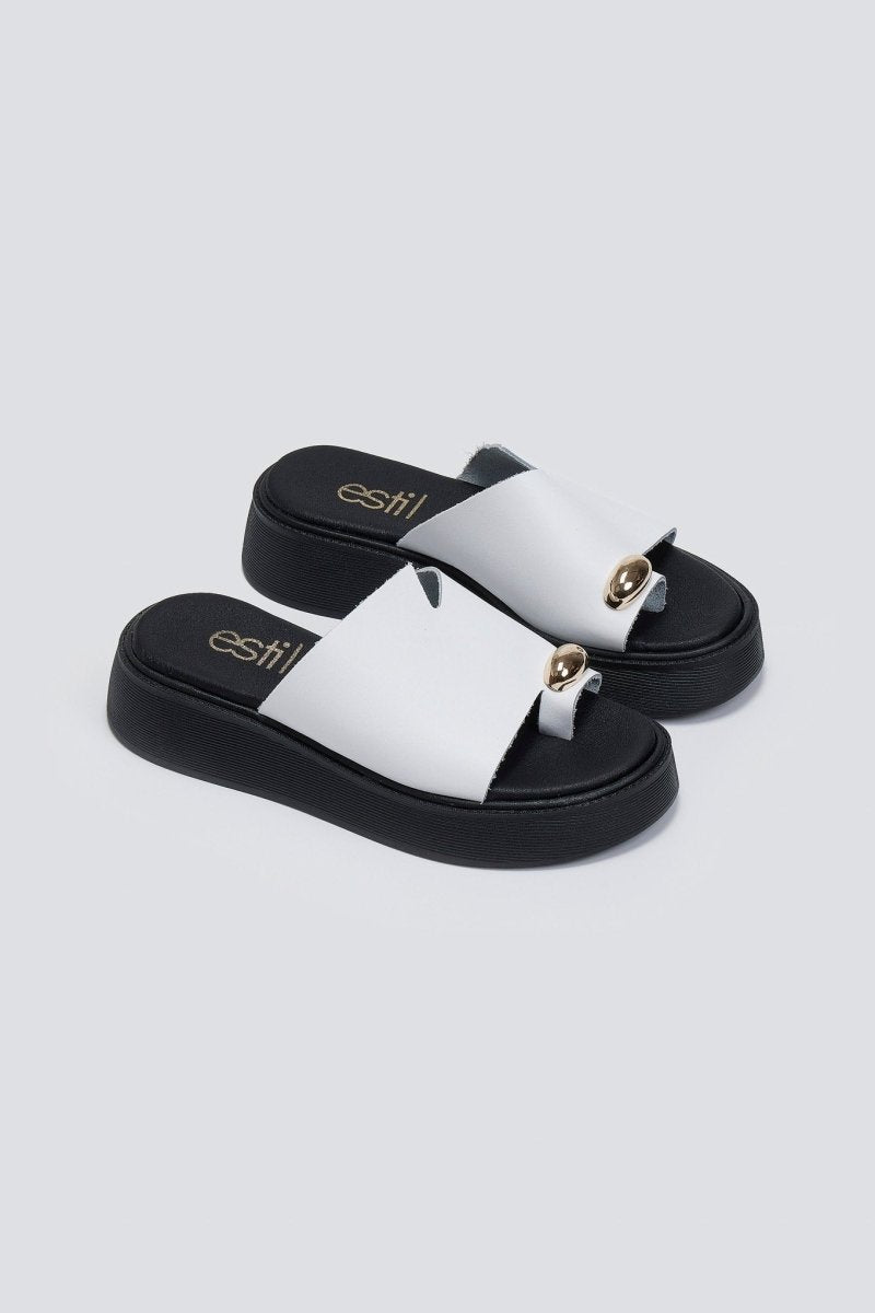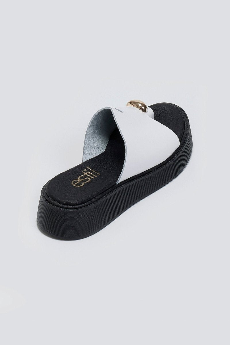 Σανδάλια δερμάτινα με μεταλλικό στοιχείο Estil - Λευκό