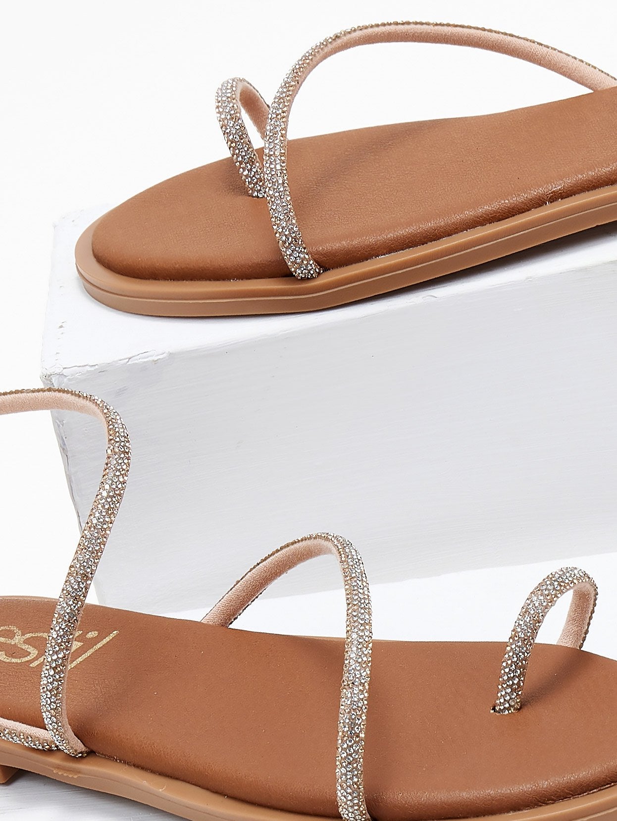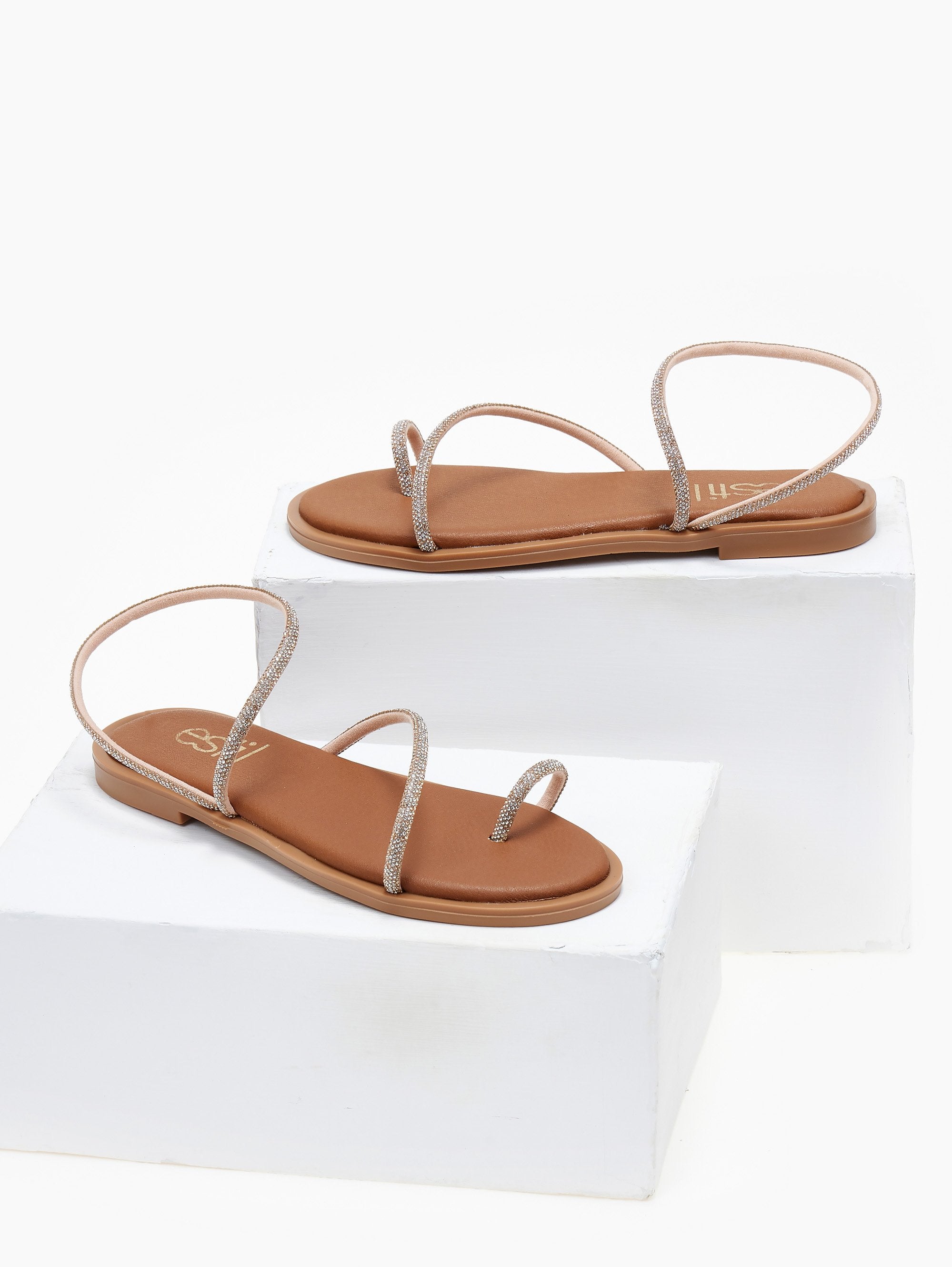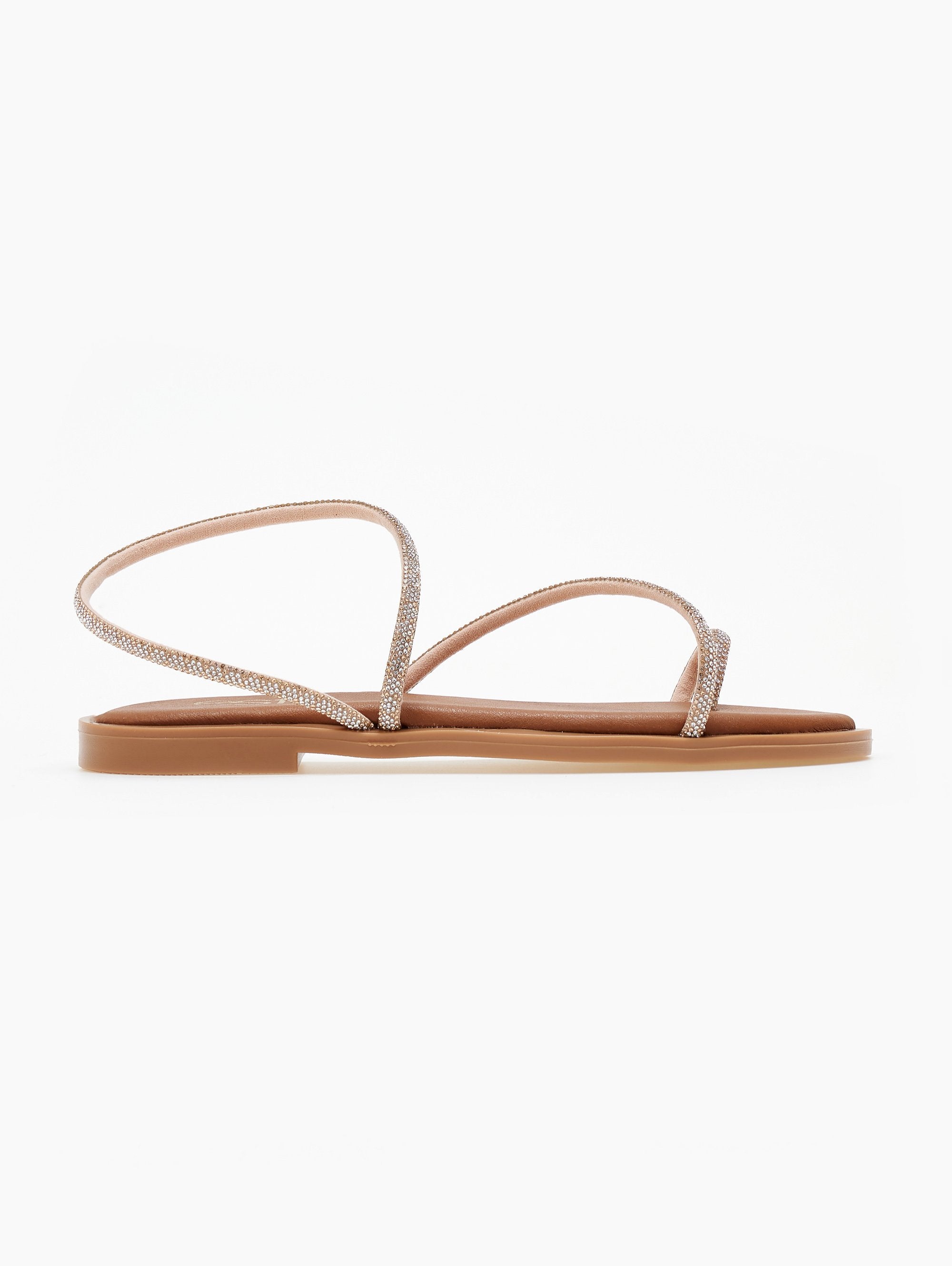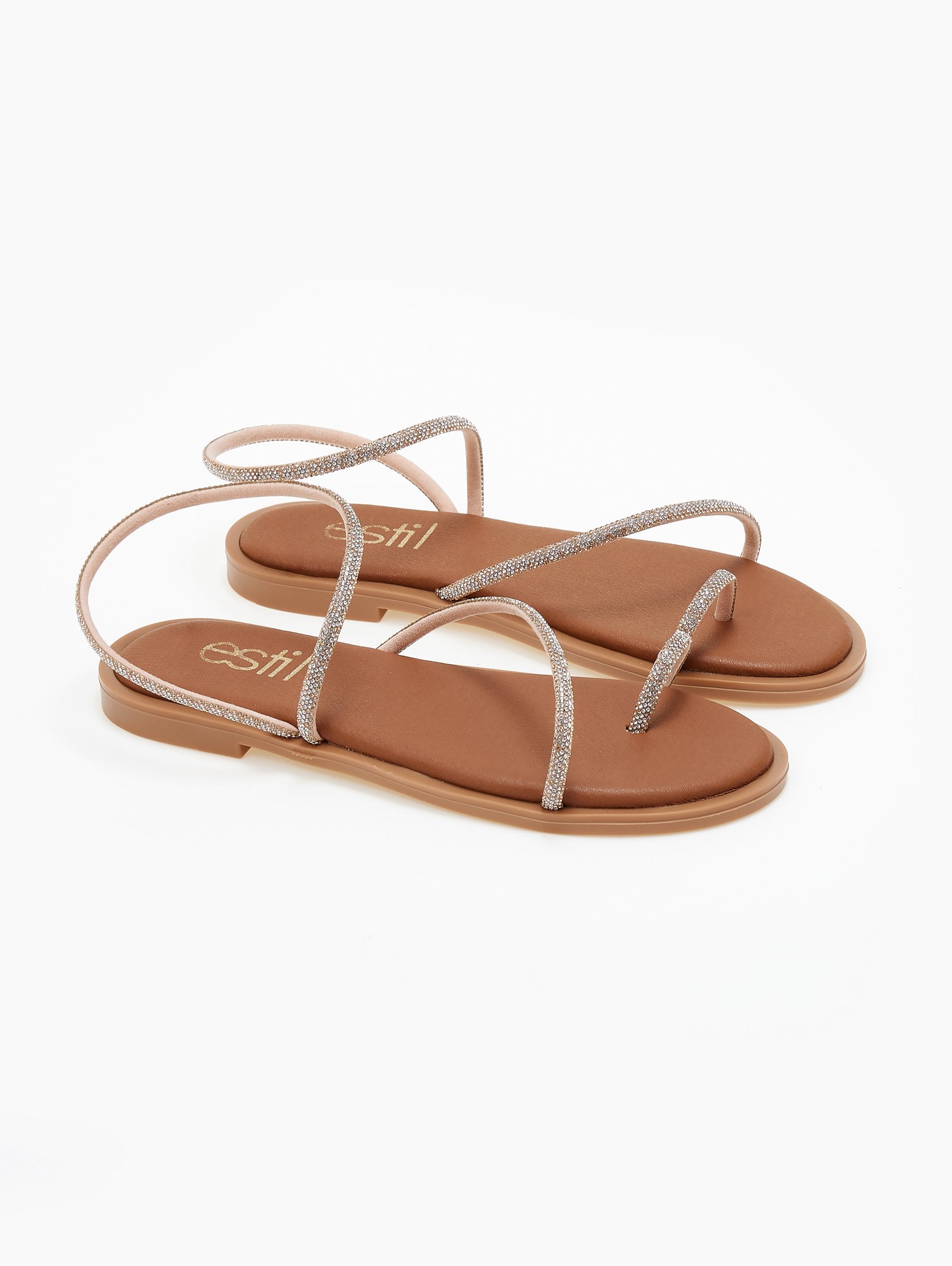 Σανδάλια με περαστό λουράκι με στρας Estil - Χαλκός