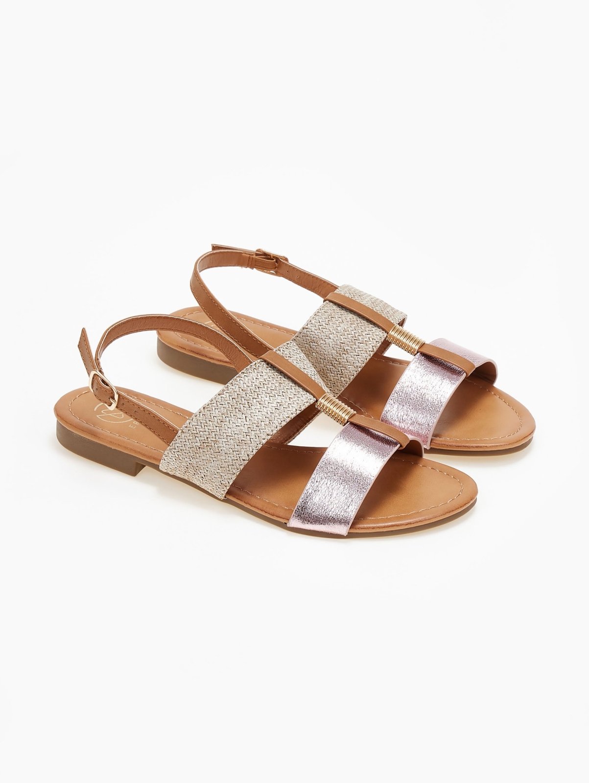 Σανδάλια με ψάθα και μεταλλικό χρώμα ERYNN - Ροζ