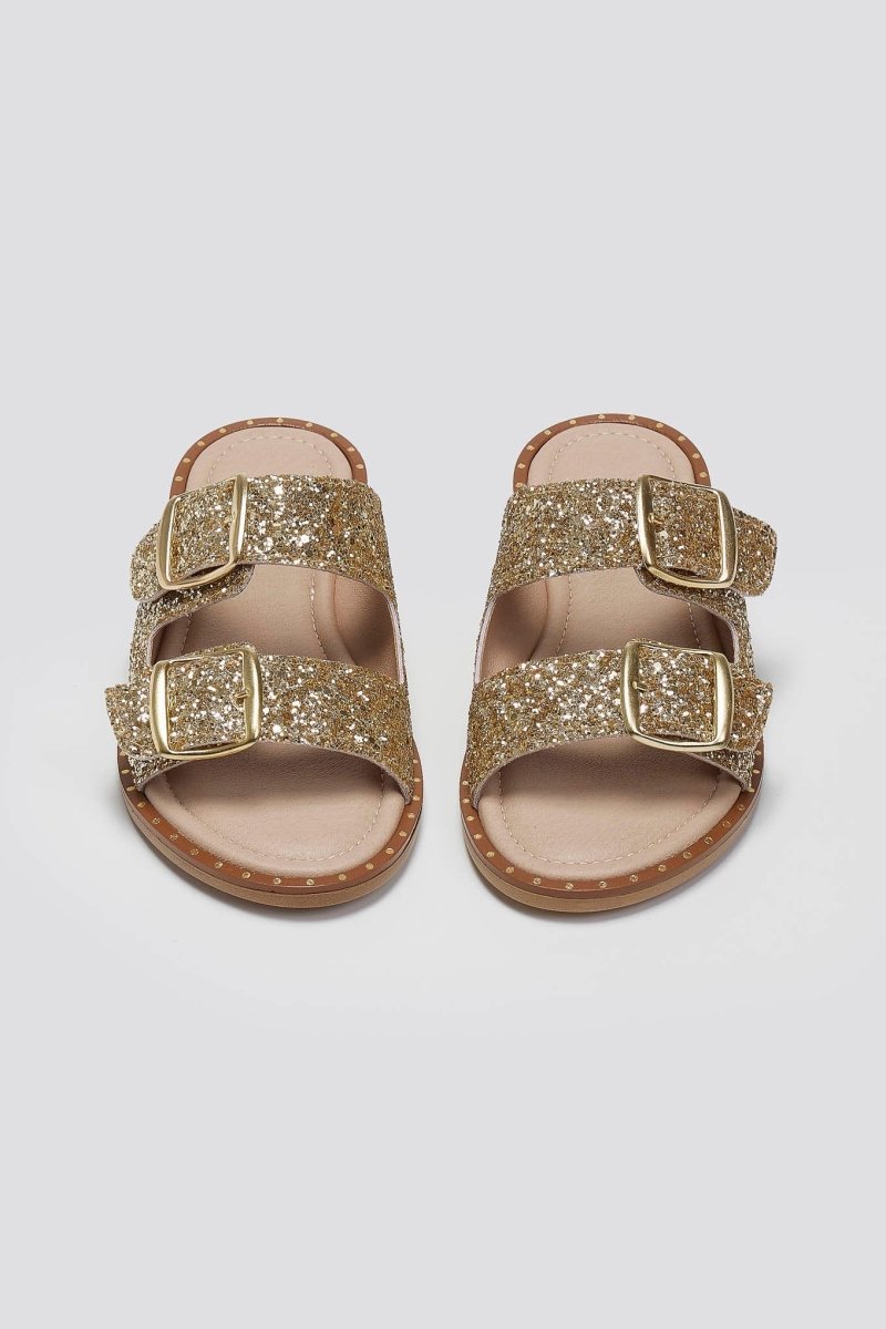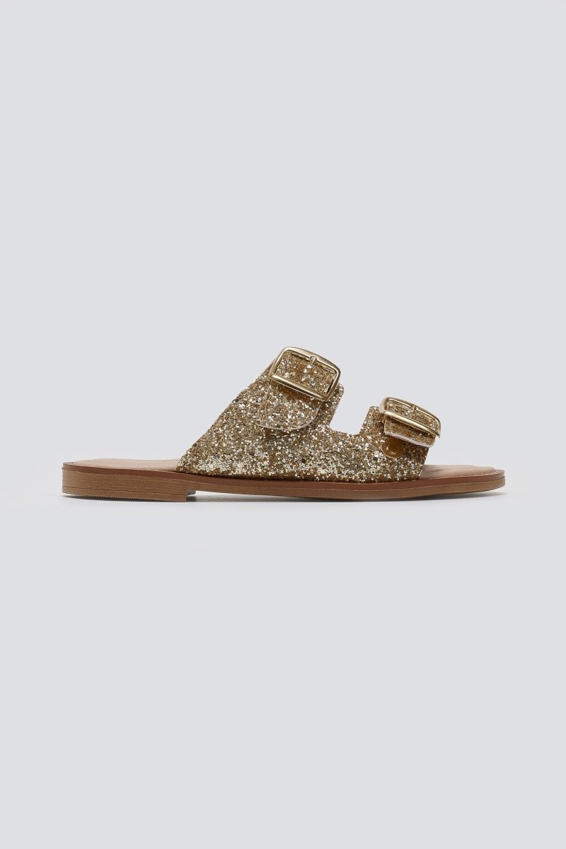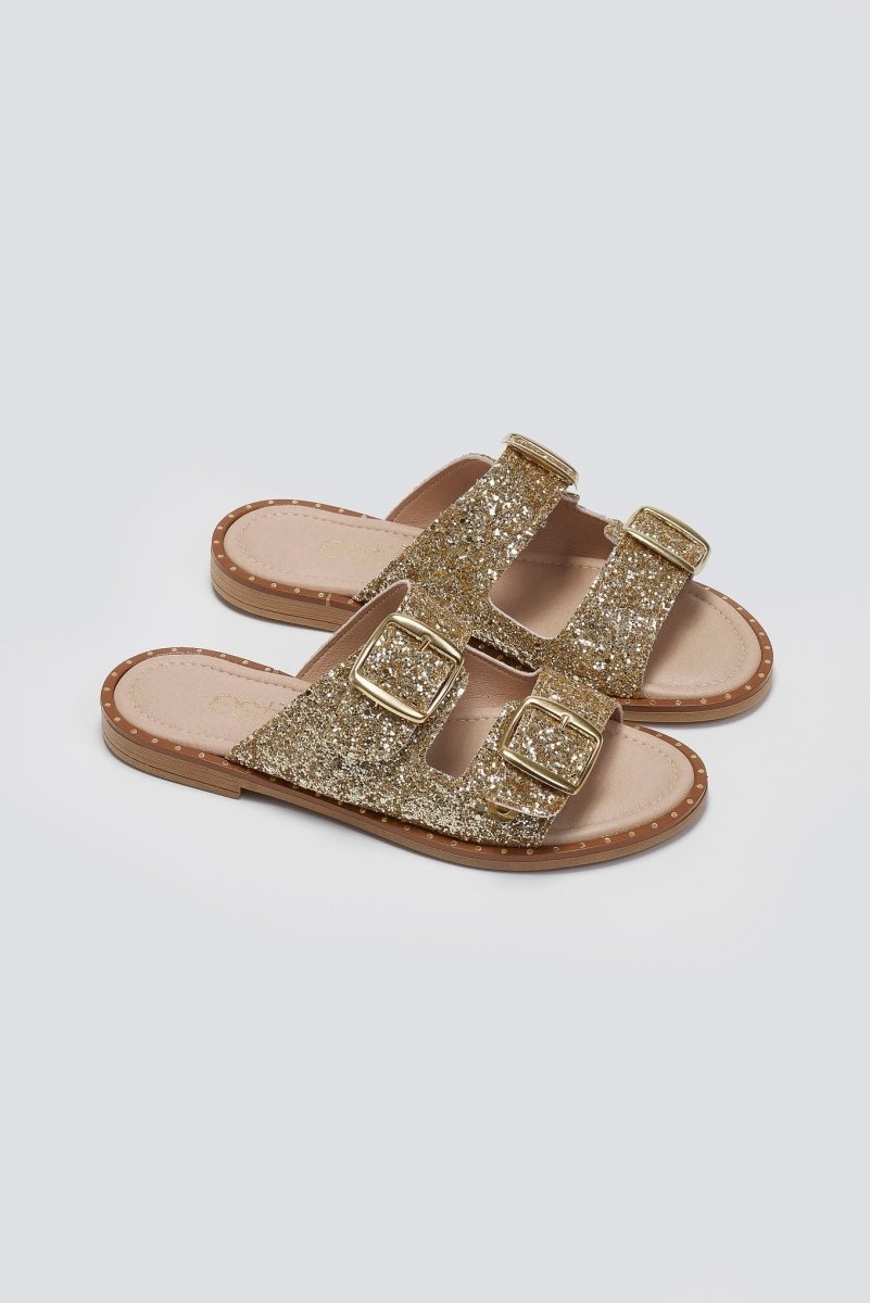 Σανδάλια με γκλίτερ και τοκάδες Estil - Χρυσό