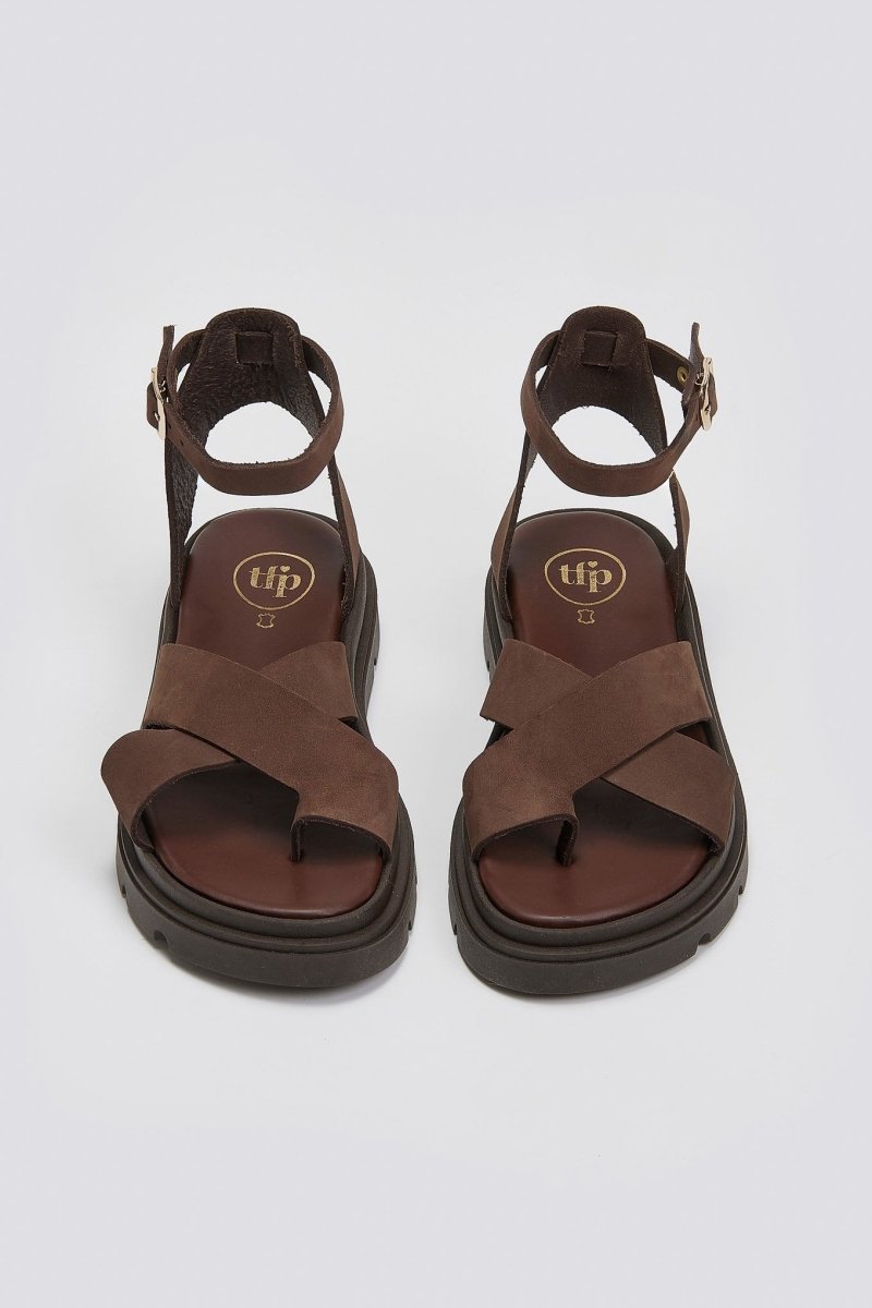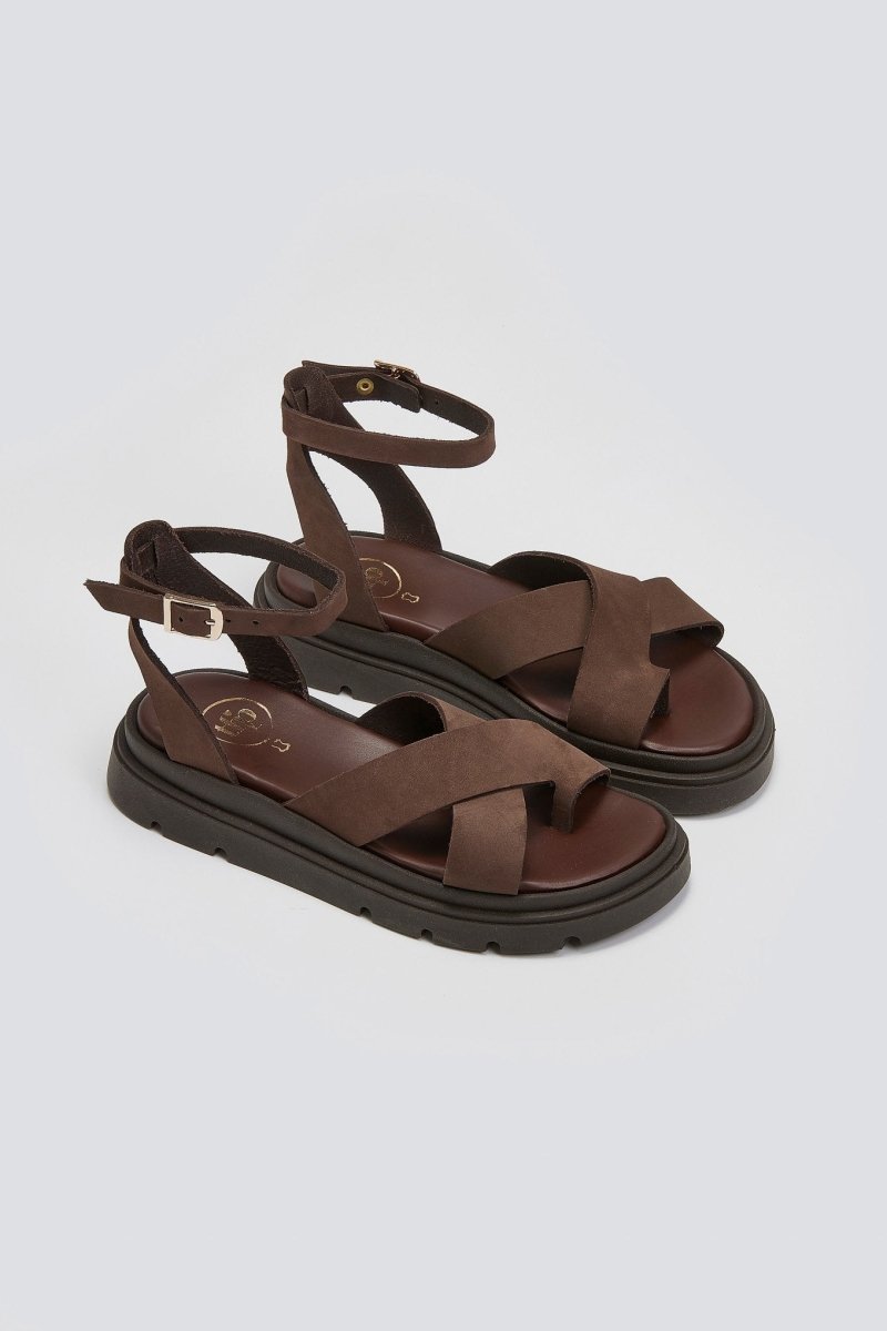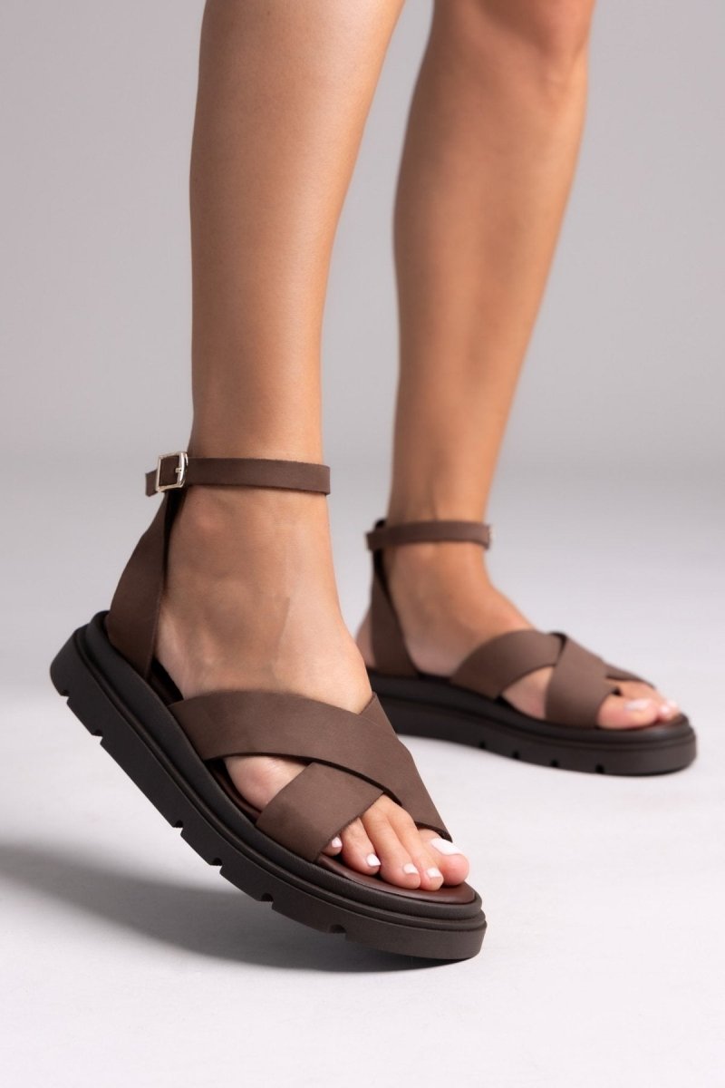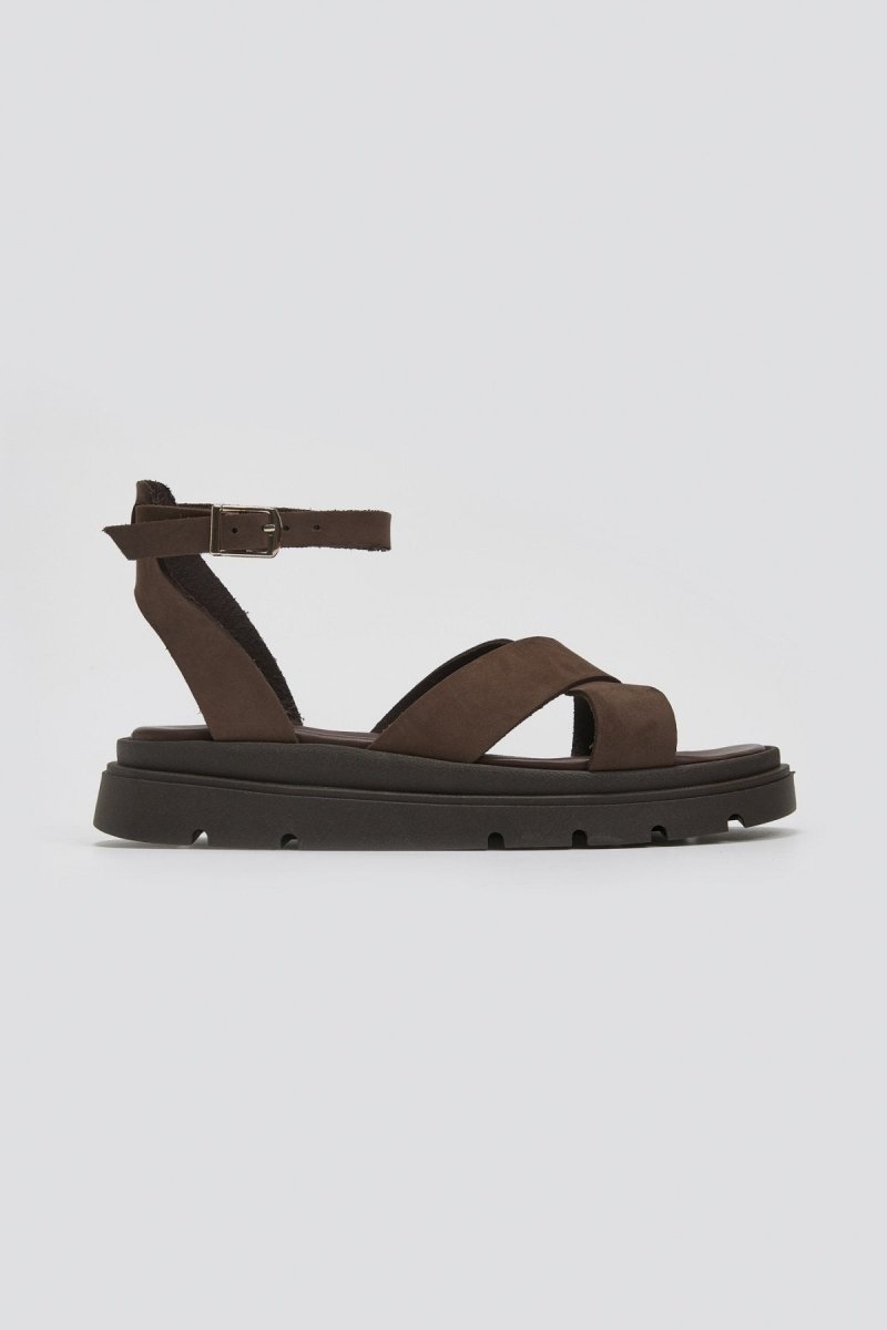 Σανδάλια nubuck δερμάτινα με μπαρέτα - Καφέ