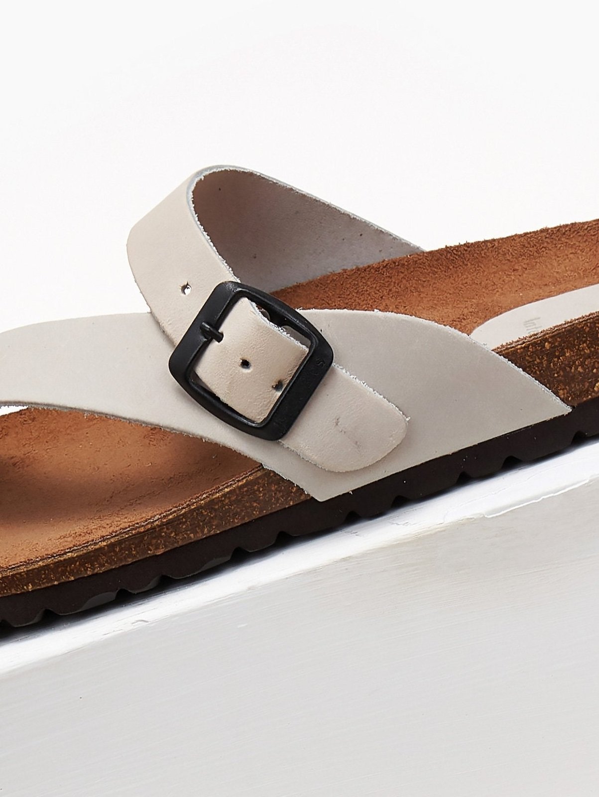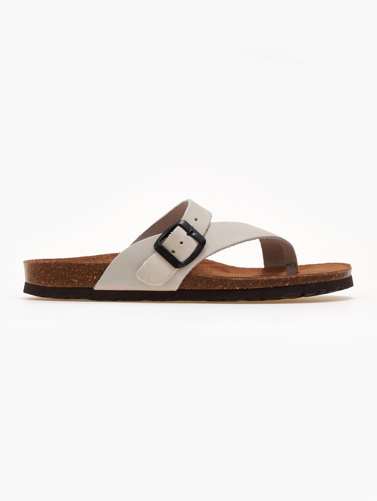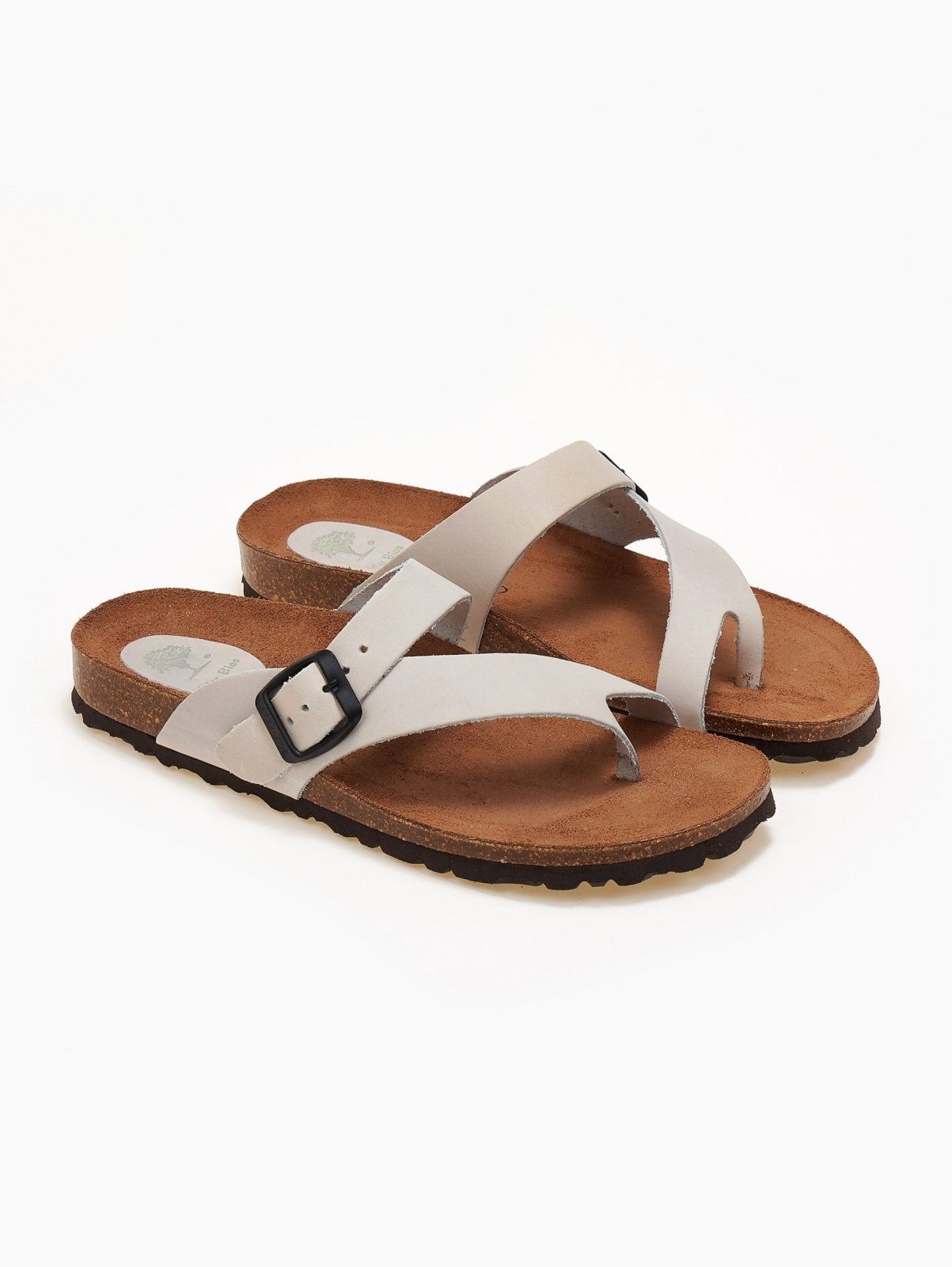 Σανδάλια δερμάτινα ανατομικά Interbios. Ρυθμιζόμενη φάσα με μεταλλικό τοκά. Ανατομικός πάτος από δέρμα καστόρι. Σόλα από latex φελλό. Κατασκευάζεται στην Ισπανία.
