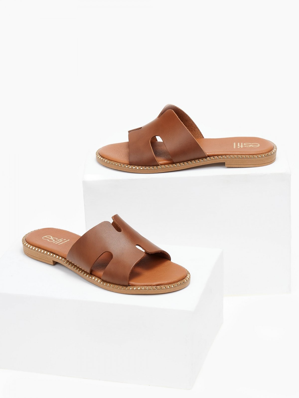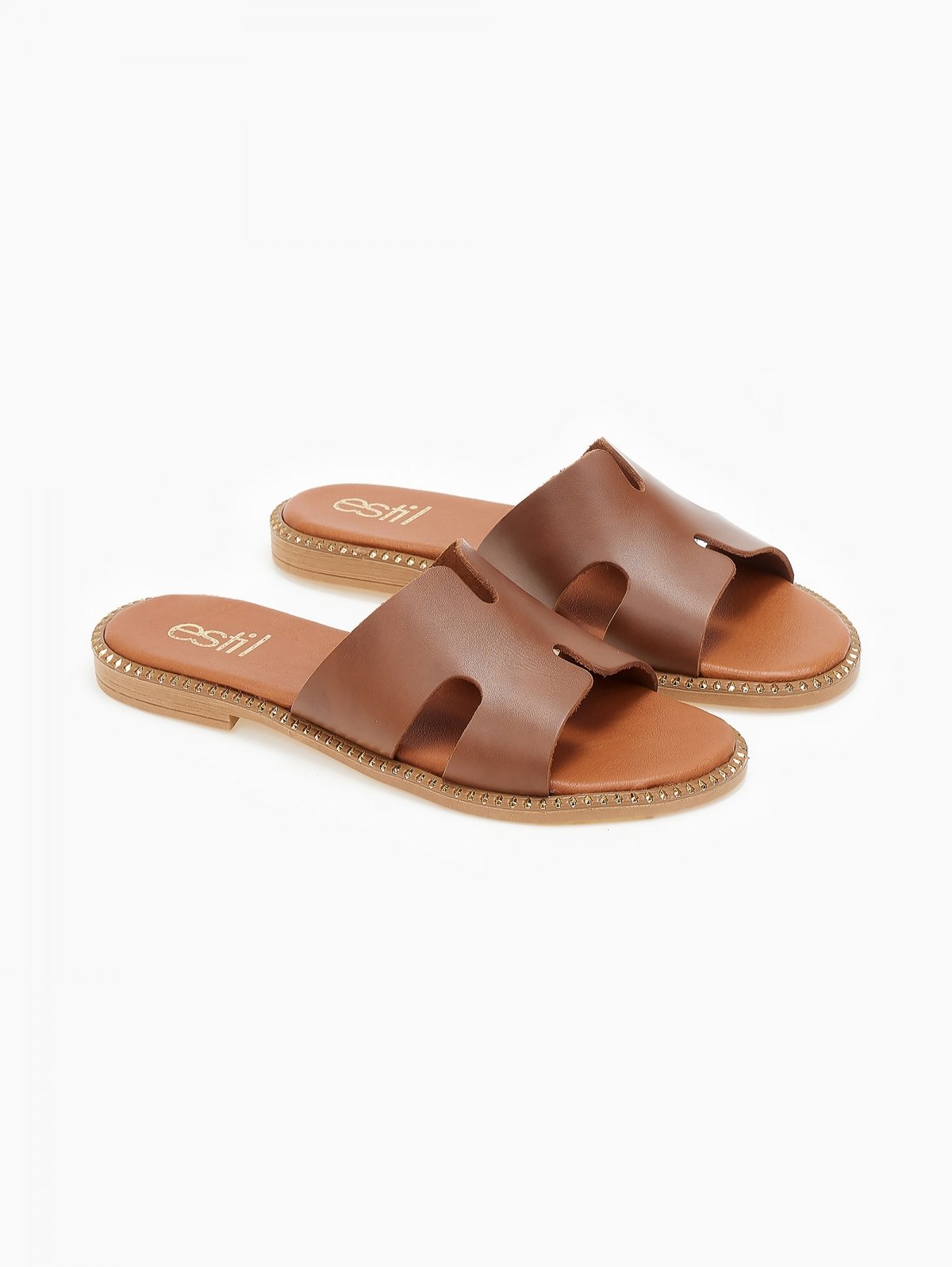 Σανδάλια δερμάτινα με ανοίγματα estil - Ταμπά