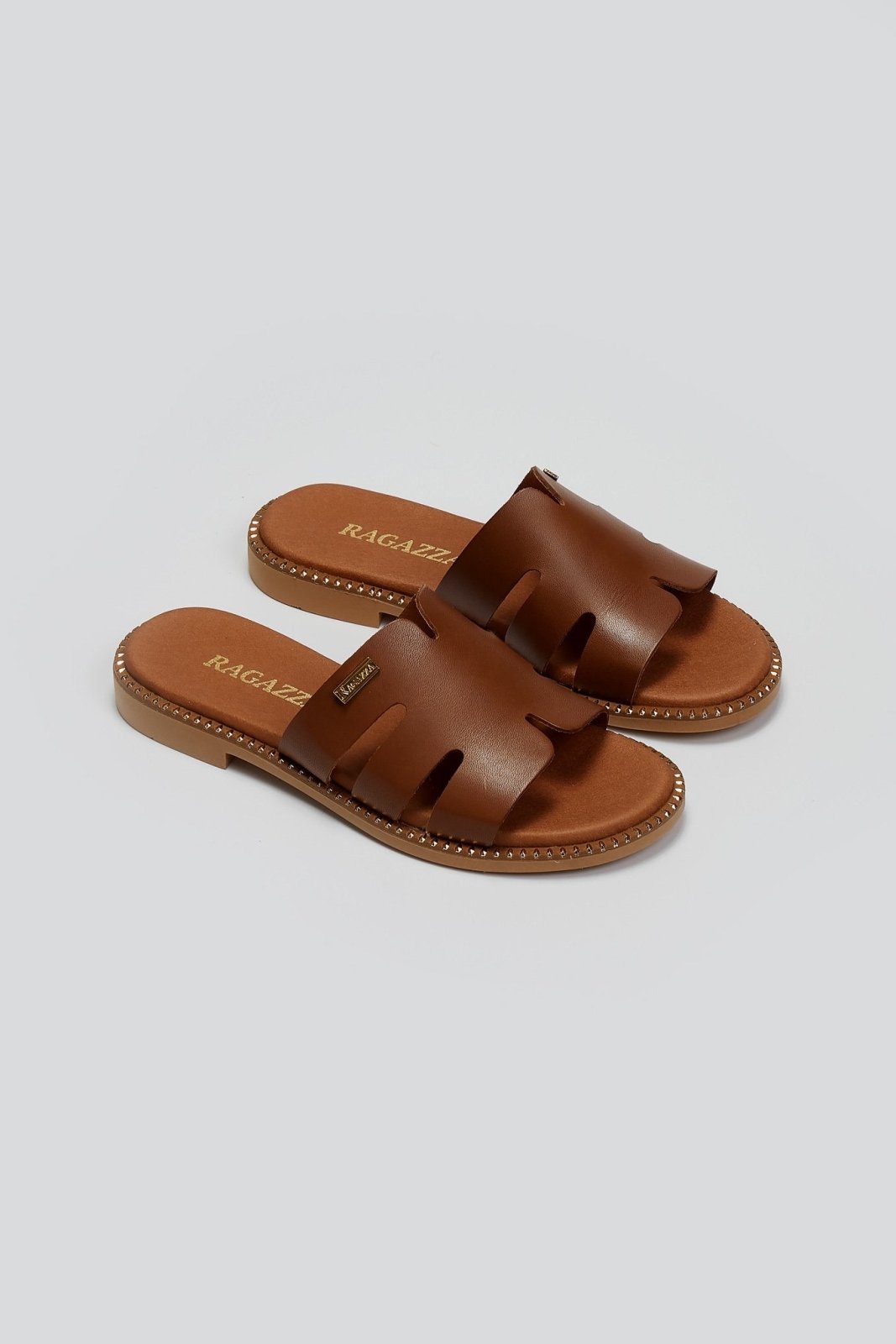 Σανδάλια δερμάτινα Ragazza. Φαρδιά φάσα με ανοίγματα στο πλάι. Λεπτομέρεια μεταλλικά τρουκς περιμετρικά της σόλας. Η Ελληνική εταιρεία Ragazza ειδικεύεται στα ανατομικά (comfort) παπούτσια τα οποία διαθέτουν την κορυφαία τεχνολογία Dryflex στο εσωτερικό τους, που προσφέρει απόλυτη διαπνοή, απορρόφηση κραδασμών και προστασία από οσμές. Είναι η καλύτερη επιλογή για ατελείωτες ώρες και άνεση.