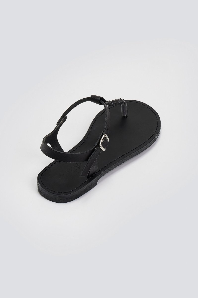 Σανδάλια από γνήσιο δέρμα με κάθετο λουράκι κοτσιδάκι στο κουτεπιέ Tfp. Χειροποίητα, ελληνικής κατασκευής.