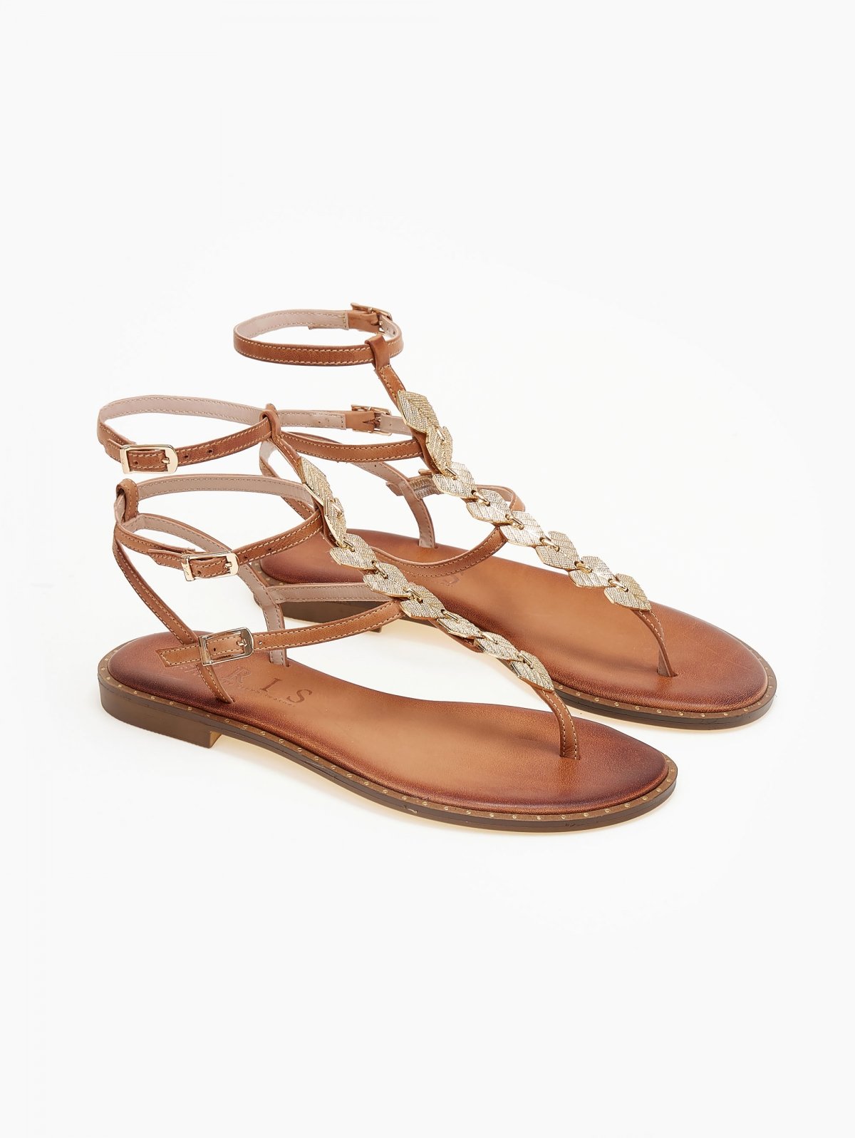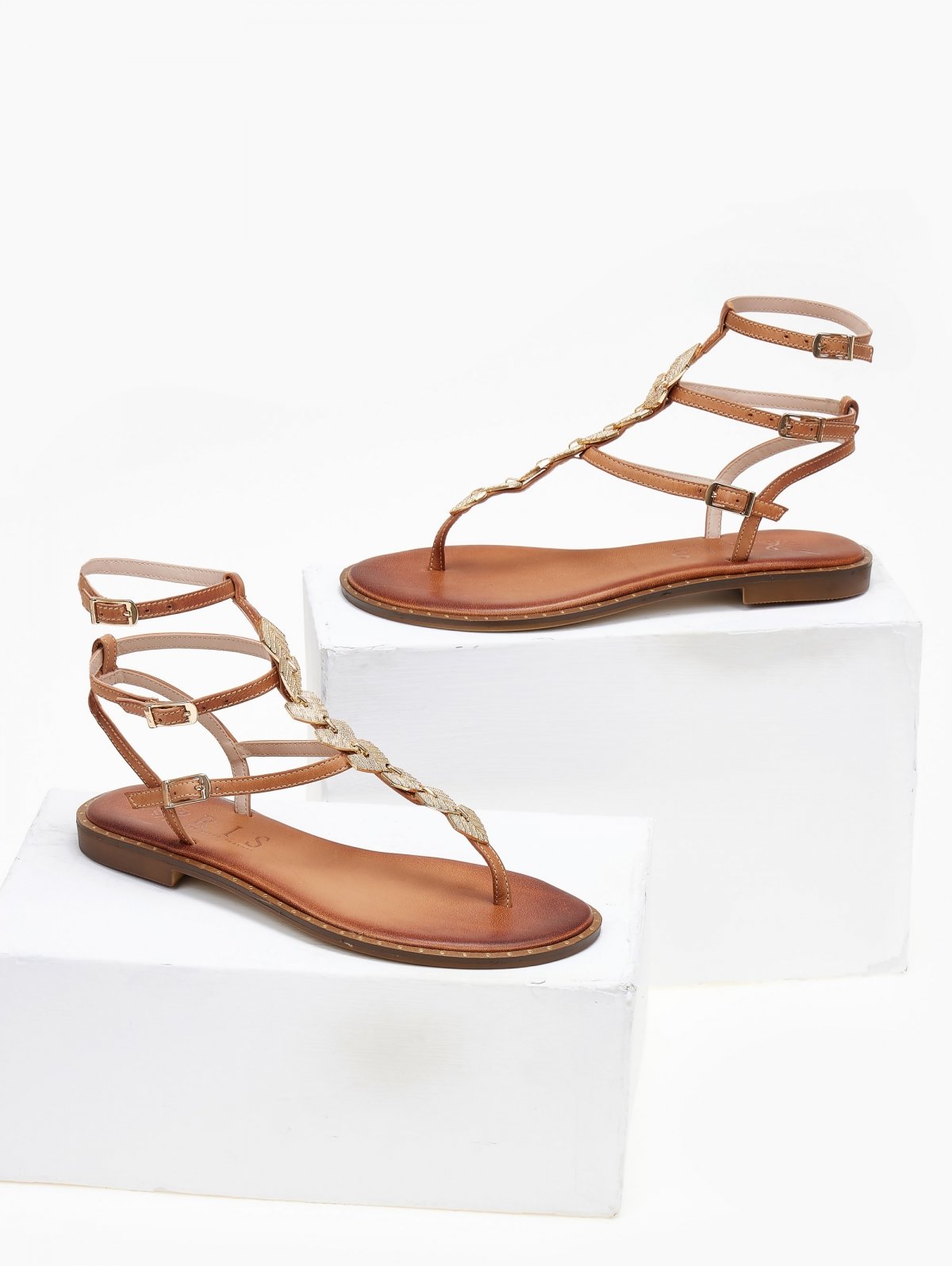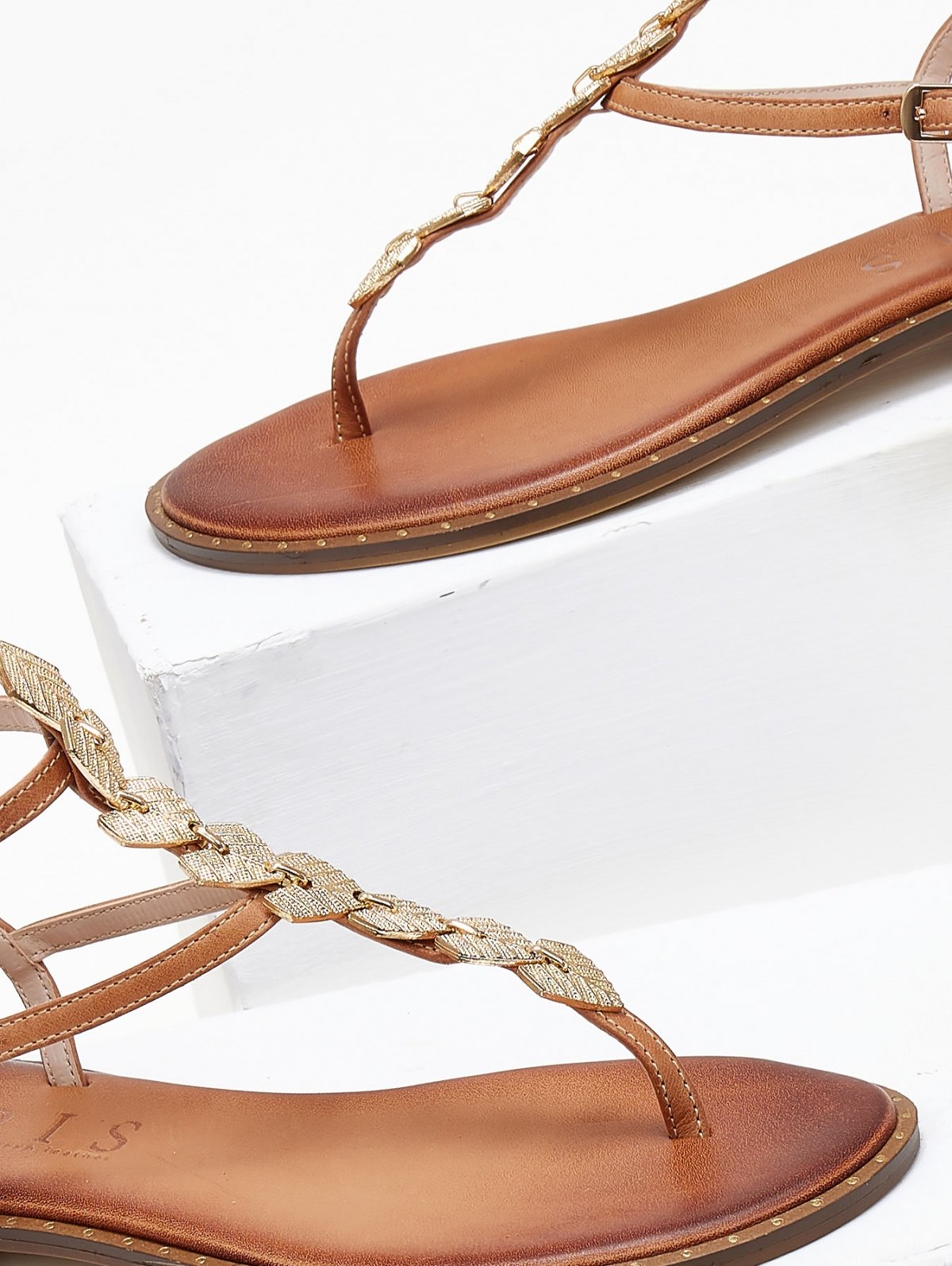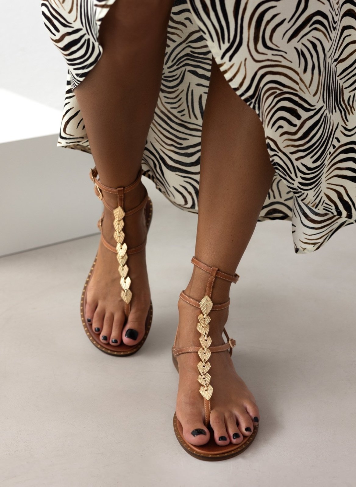 Σανδάλια δερμάτινα με μεταλλικά φύλλα Iris Sandals - Ταμπά