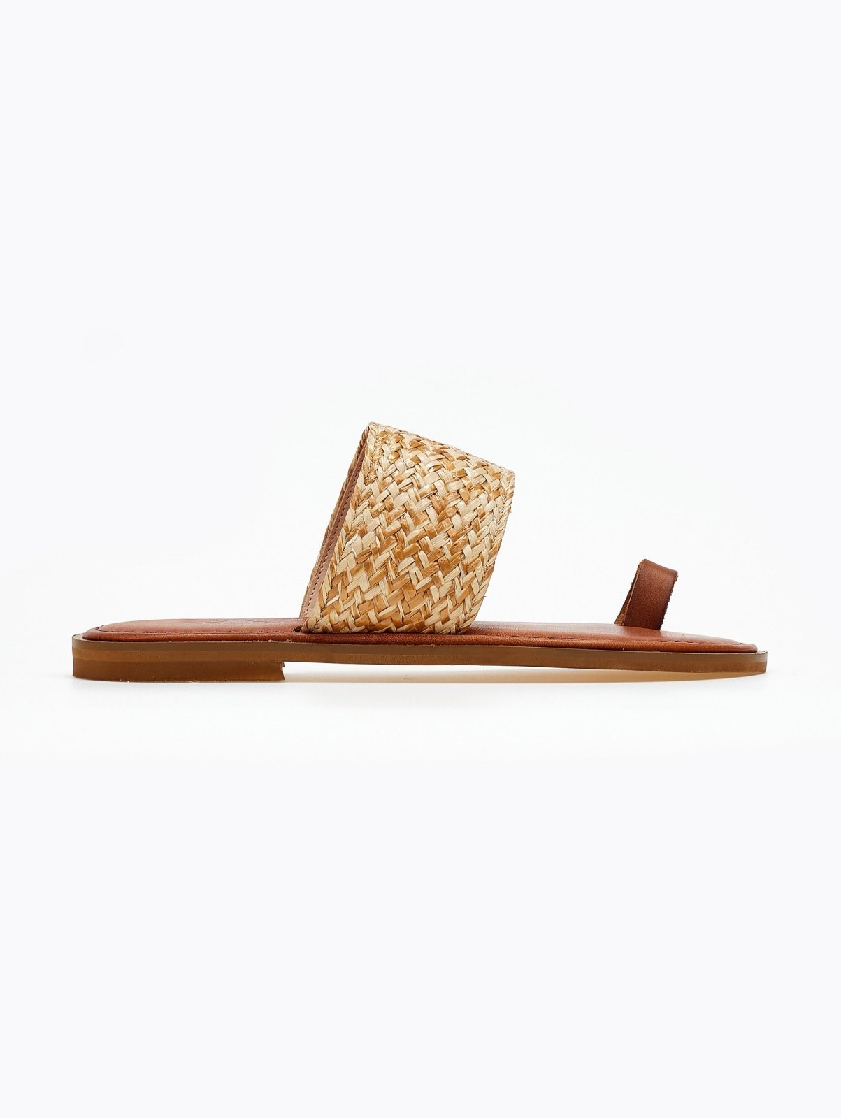 Σανδάλια δερμάτινα με ψάθινη φάσα Iris Sandals - Φυσικό