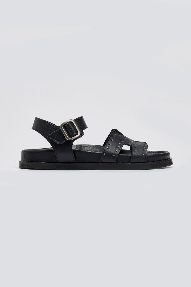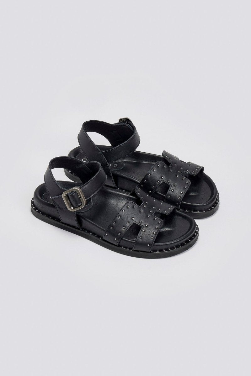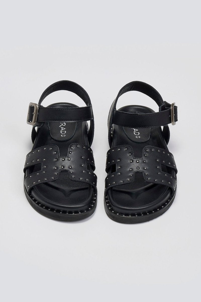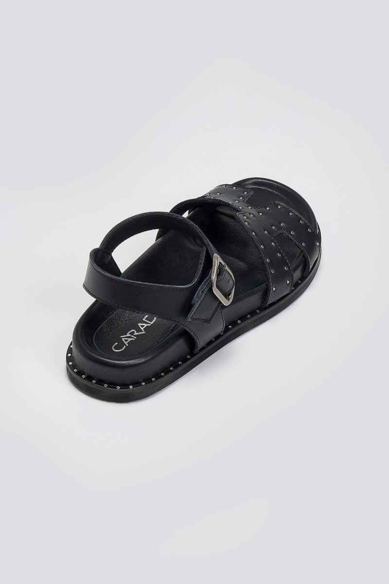 Σανδάλια δερμάτινα flatforms με μπαρέτα Carad - Μαύρο
