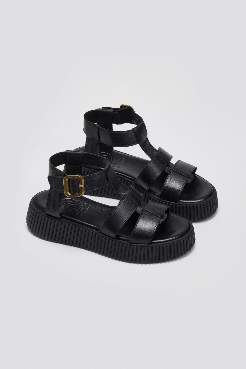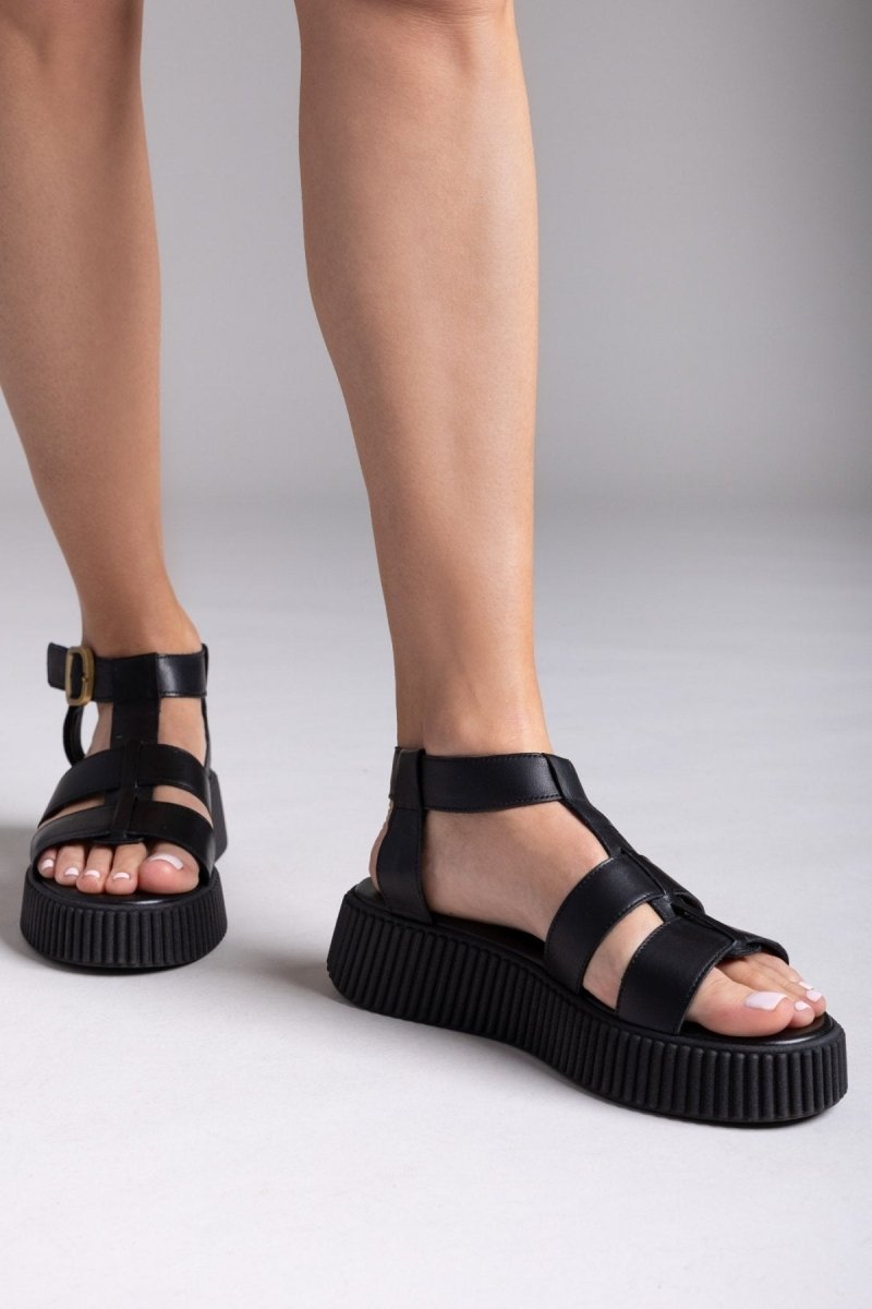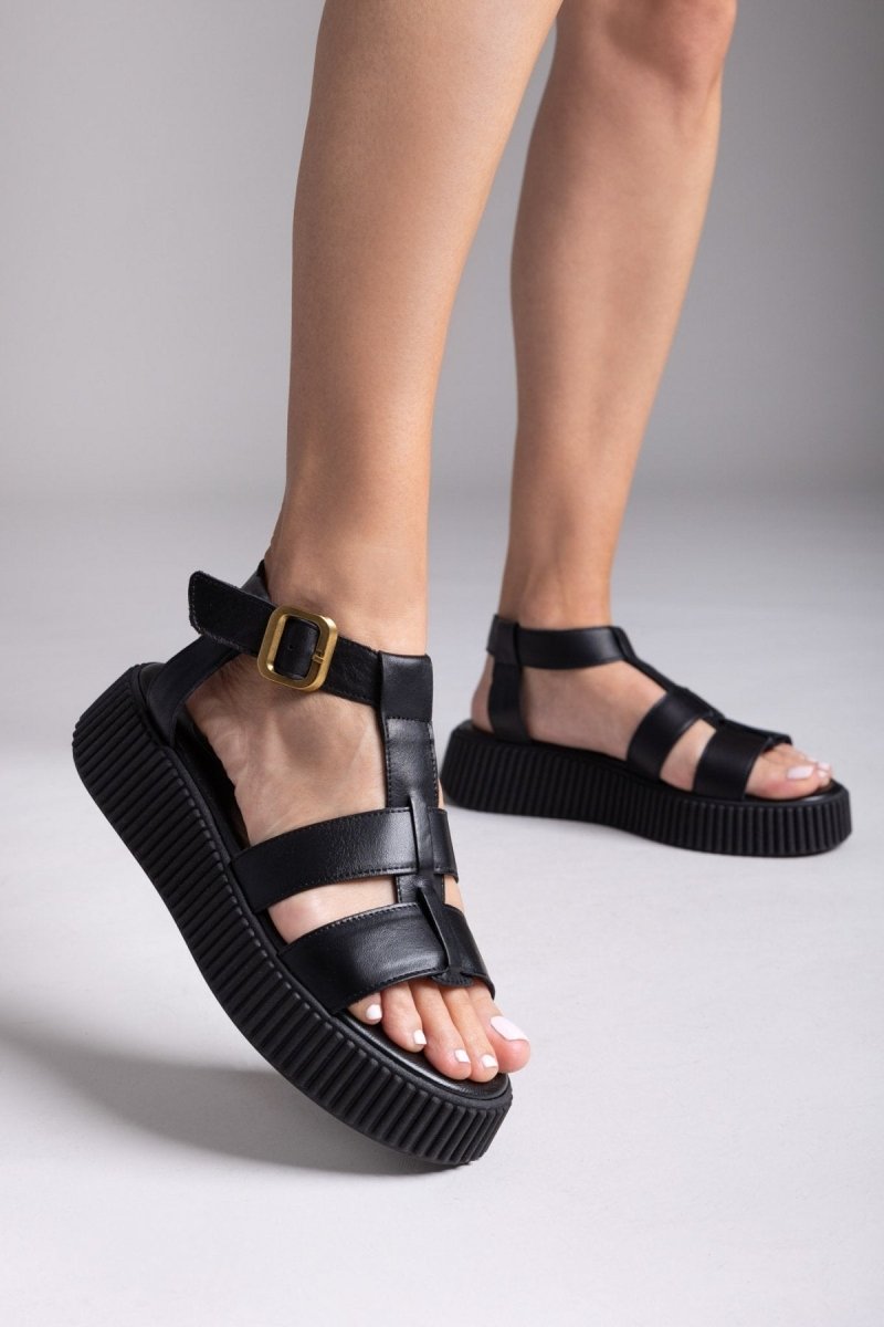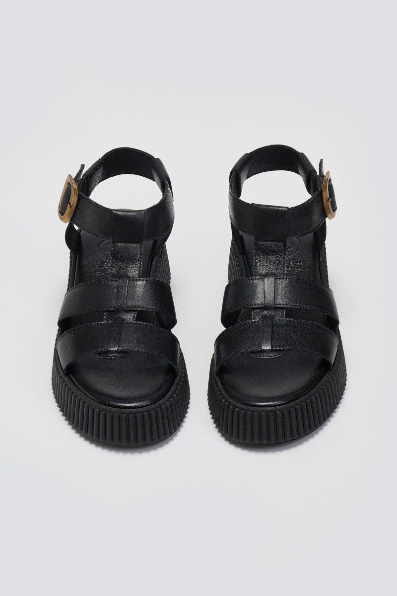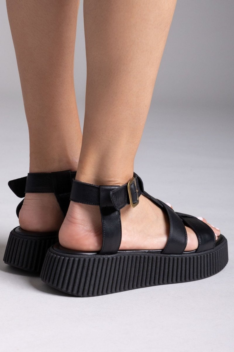 Σανδάλια δερμάτινα flatforms με τοκά TFP - Μαύρο