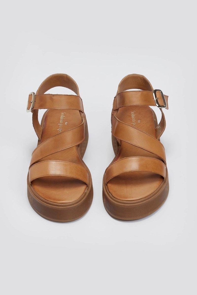 Σανδάλια δερμάτινα flatforms με φάσες Tfp - Ταμπά
