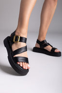 Σανδάλια δερμάτινα flatforms με τοκά TFP - Μαύρο