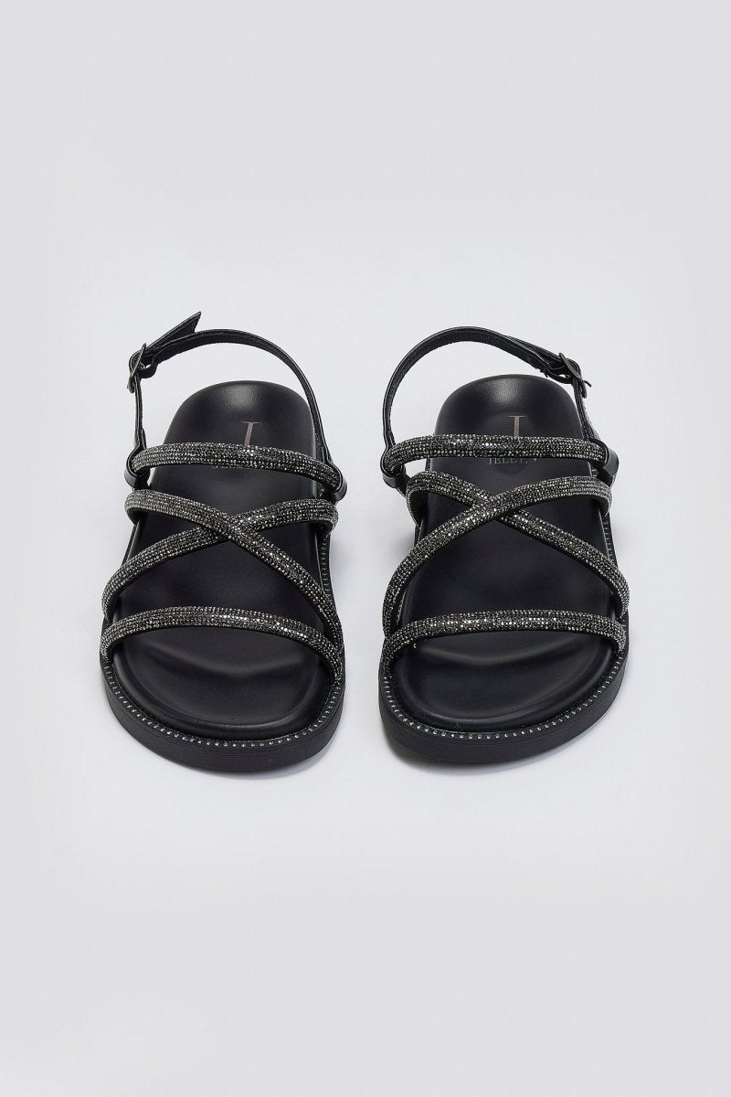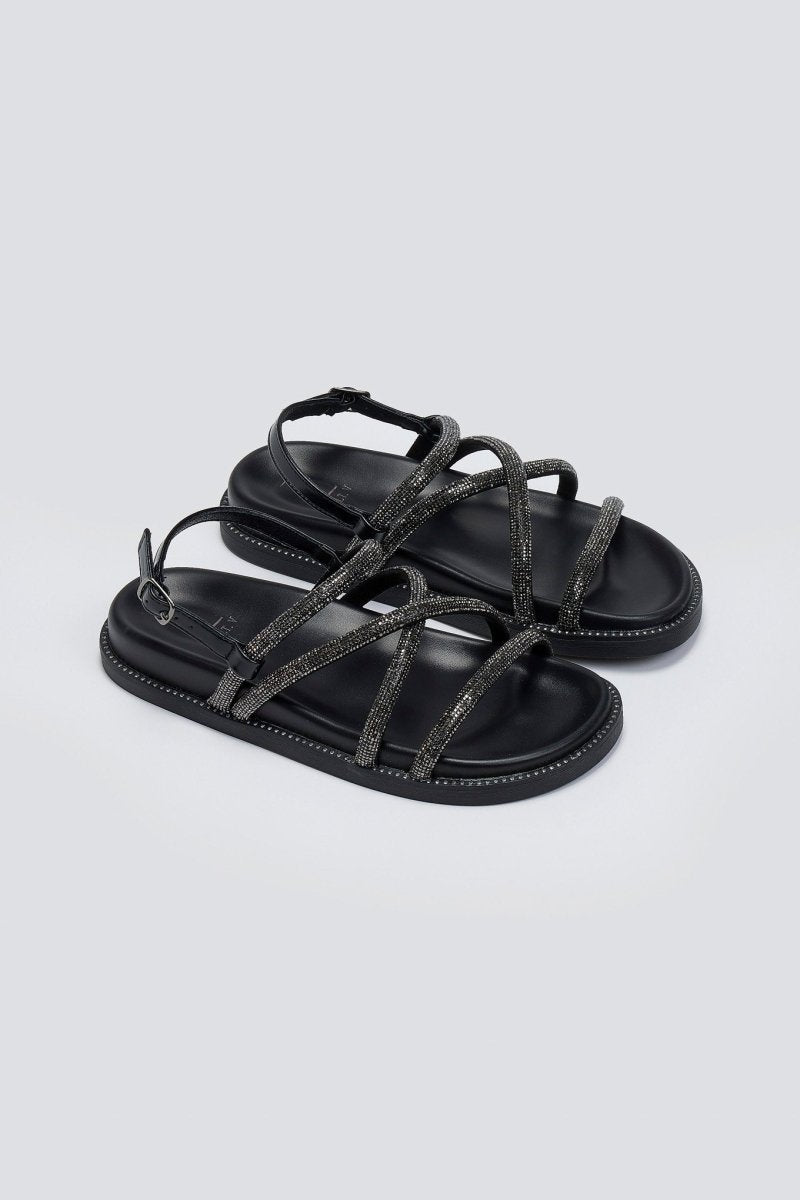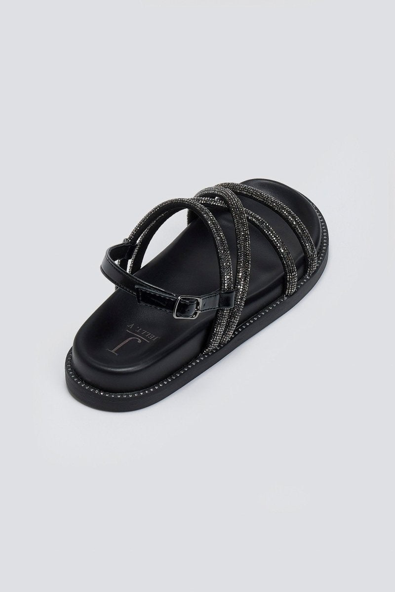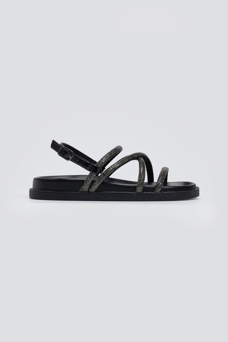 Σανδάλια με στρας λουράκια. Ανατομικό σχήμα στον πάτο. Διακριτικό γκλίτερ στο περίγραμμα της σόλας.