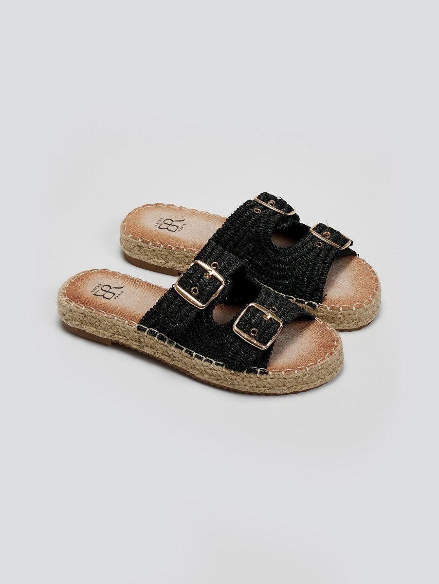 Σανδάλια flatforms από ψάθα ERYNN - Μαύρο