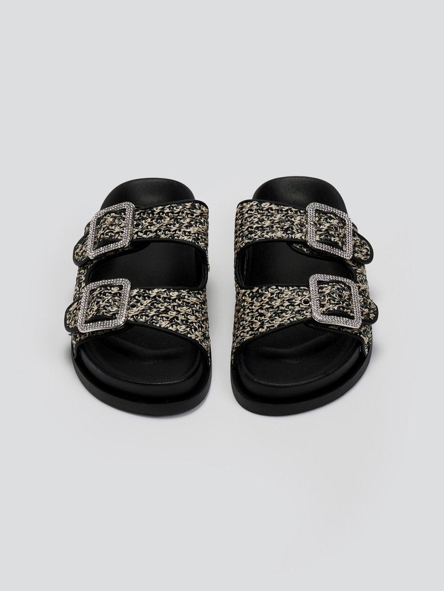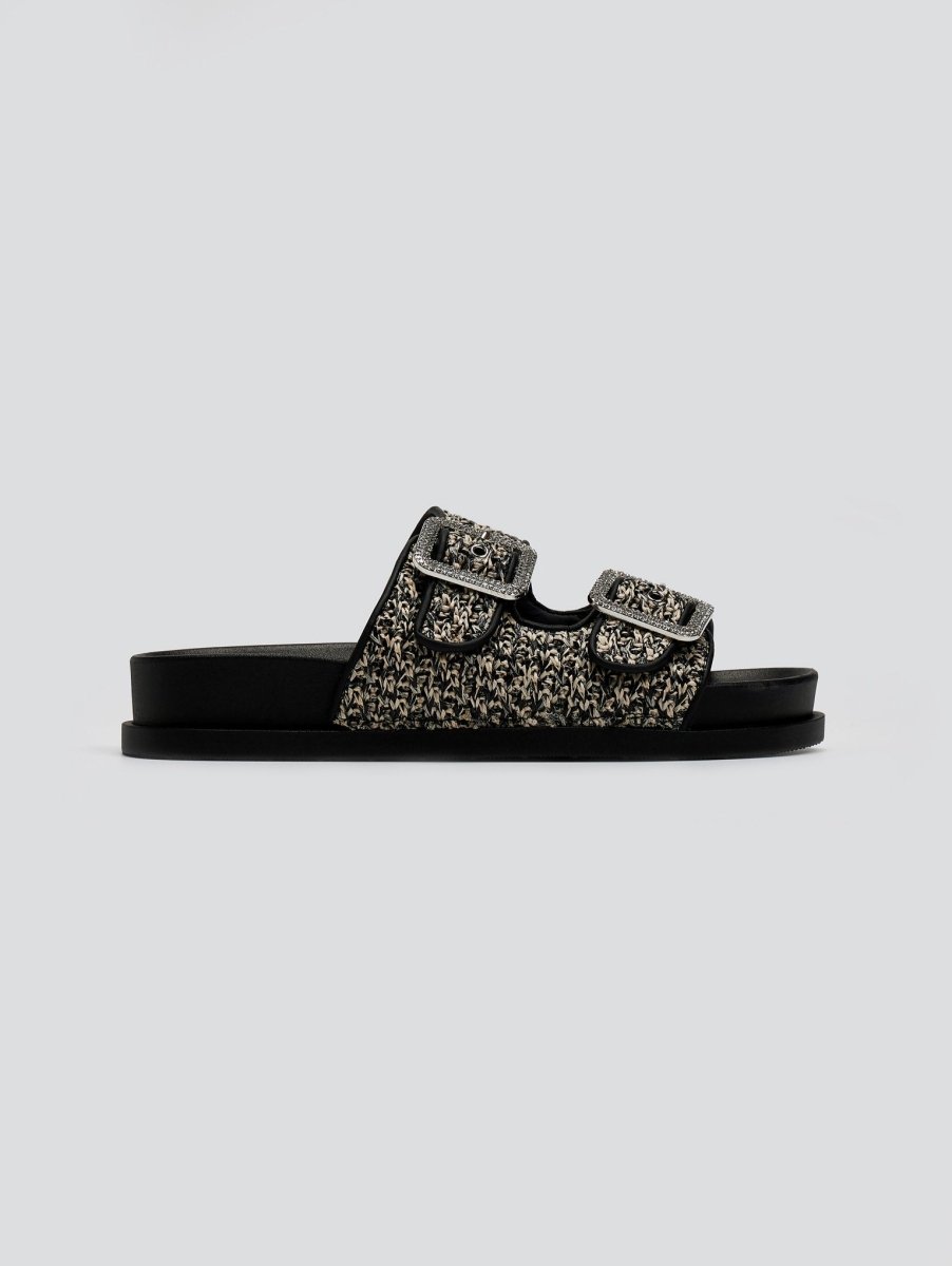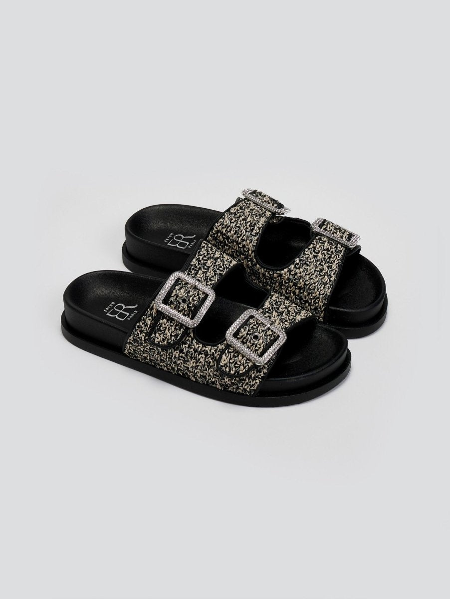 Σανδάλια flatforms από ψάθα με στρας ERYNN - Μαύρο/Μπεζ