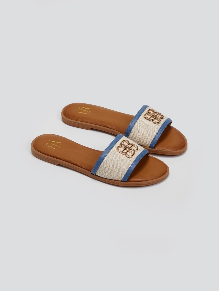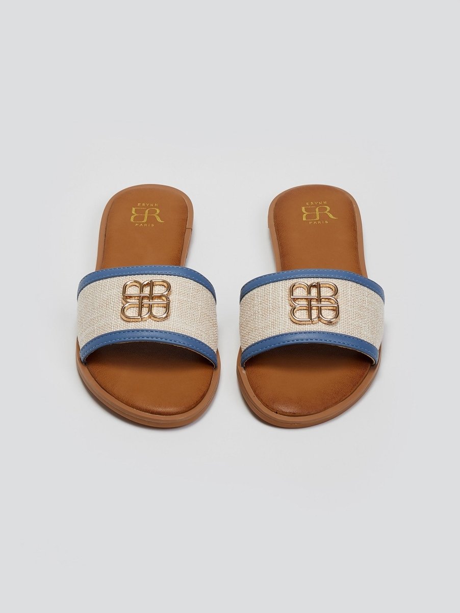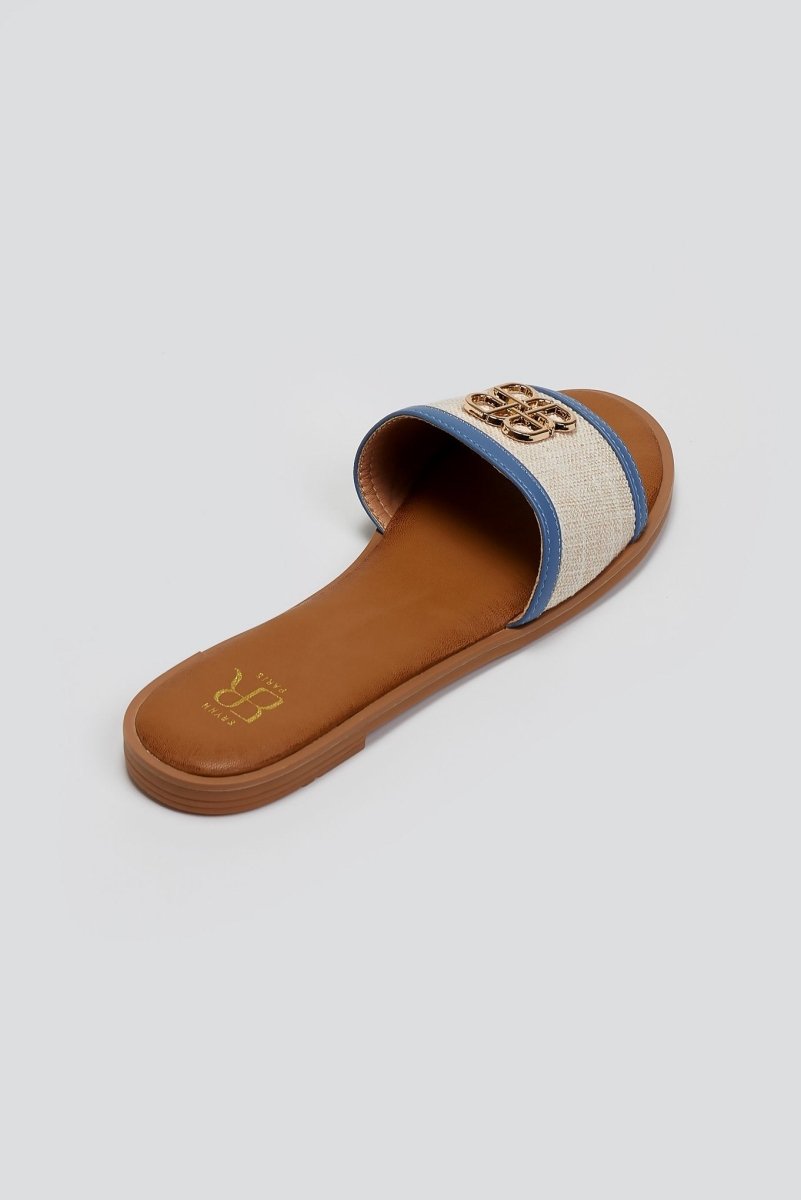 Σανδάλια με υφασμάτινη φάσα και διχρωμία στο σισίτι ERYNN. Μεταλλικό διακοσμητικό στο επάνω μέρος. Πάτος με ενίσχυση. Μαλακή σόλα από λάστιχο.