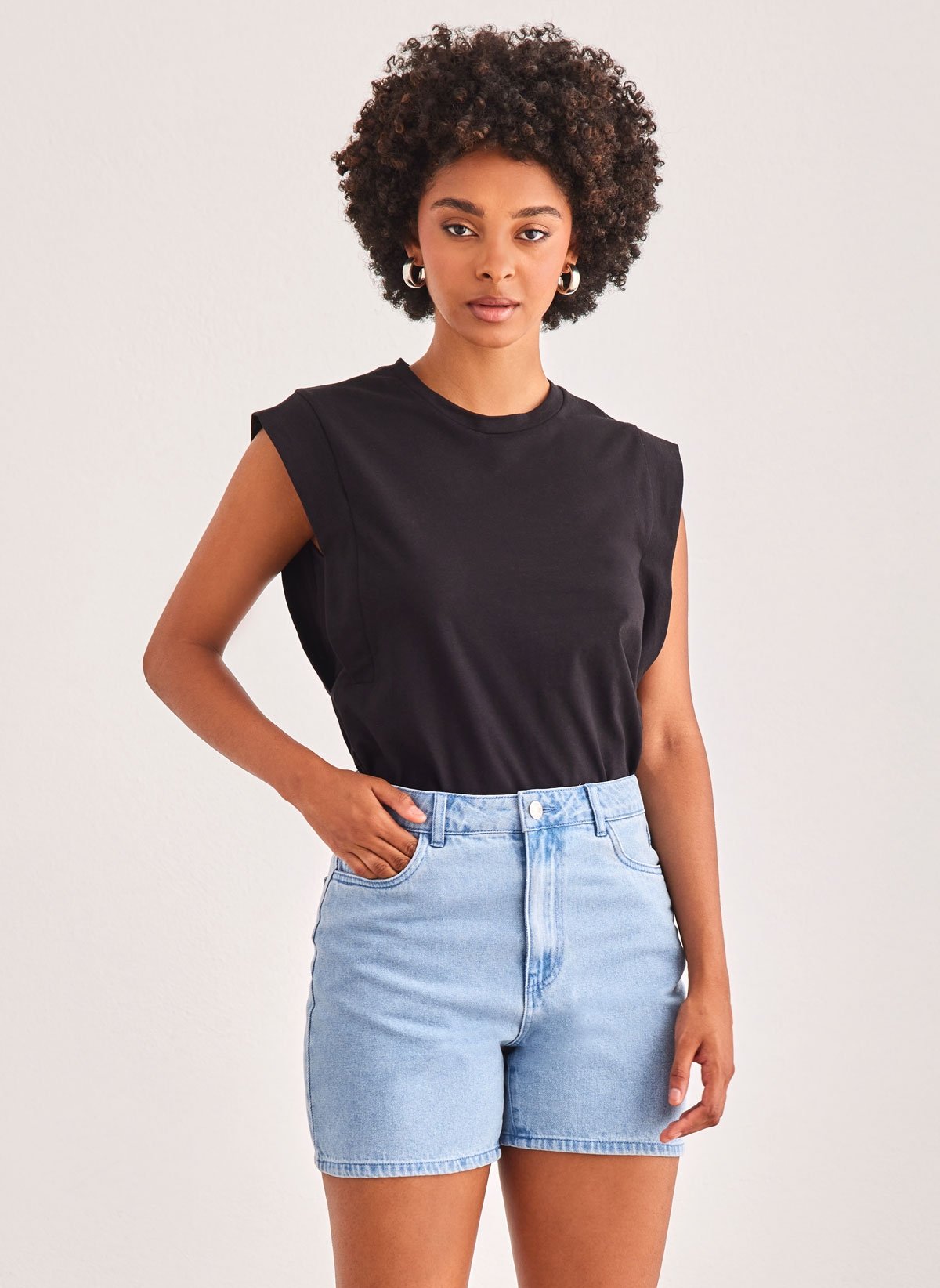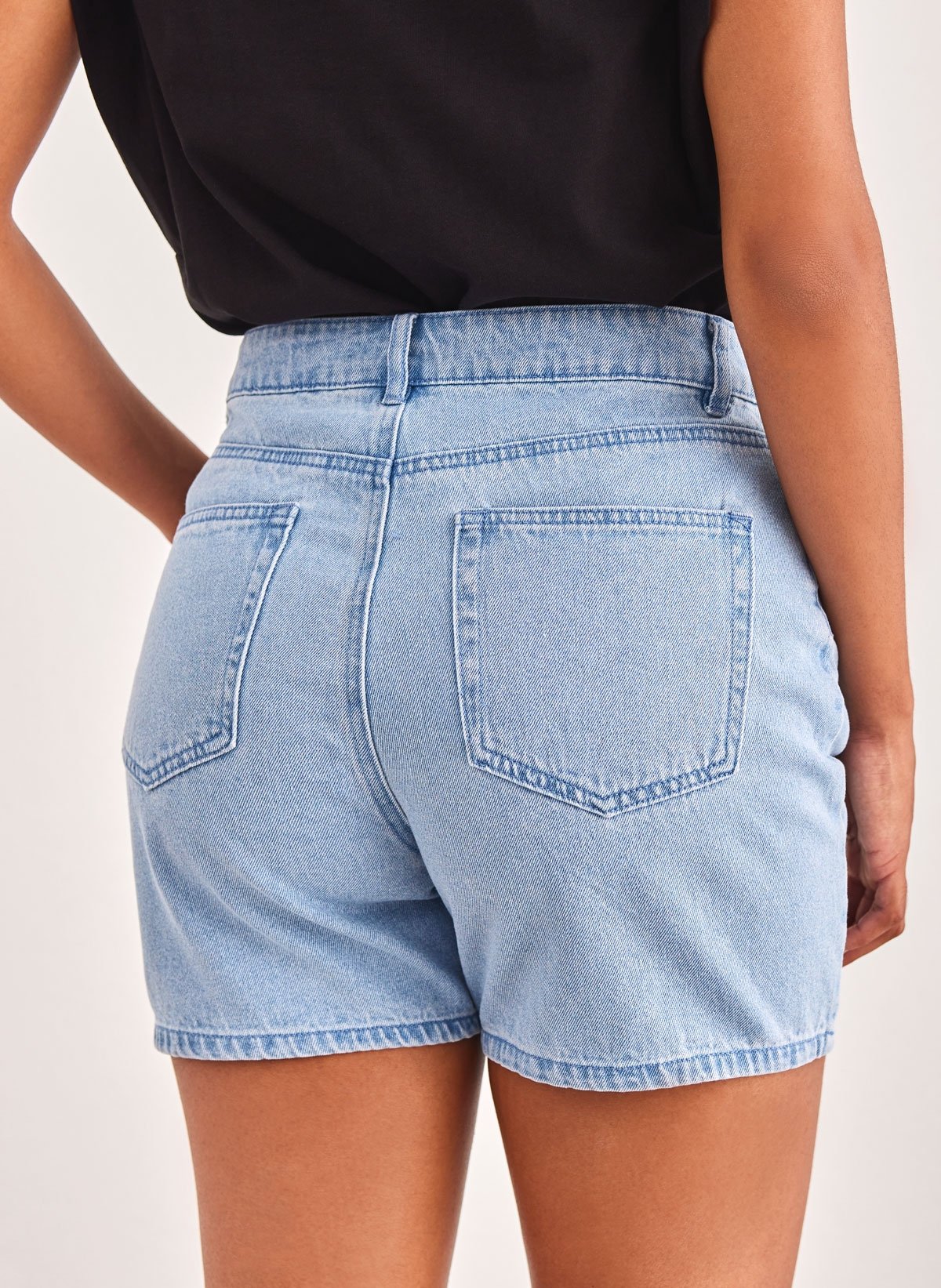 Τζιν σορτς ΤΕΜΑΧΙΑ. Ψηλόμεσο με τσέπες στο πλάι και το πίσω μέρος.