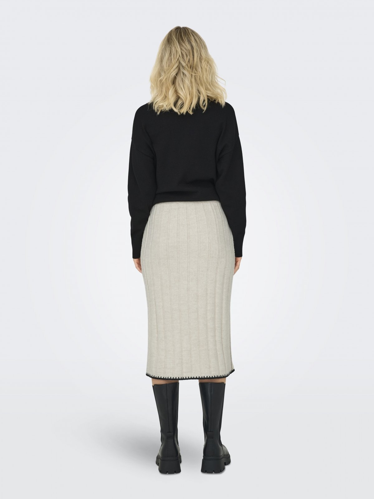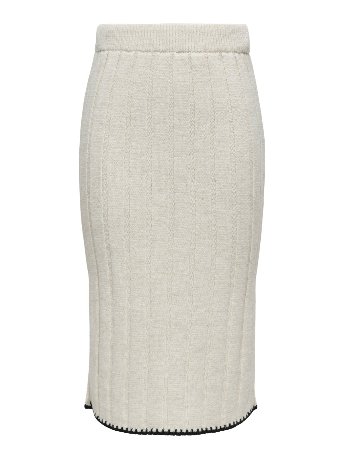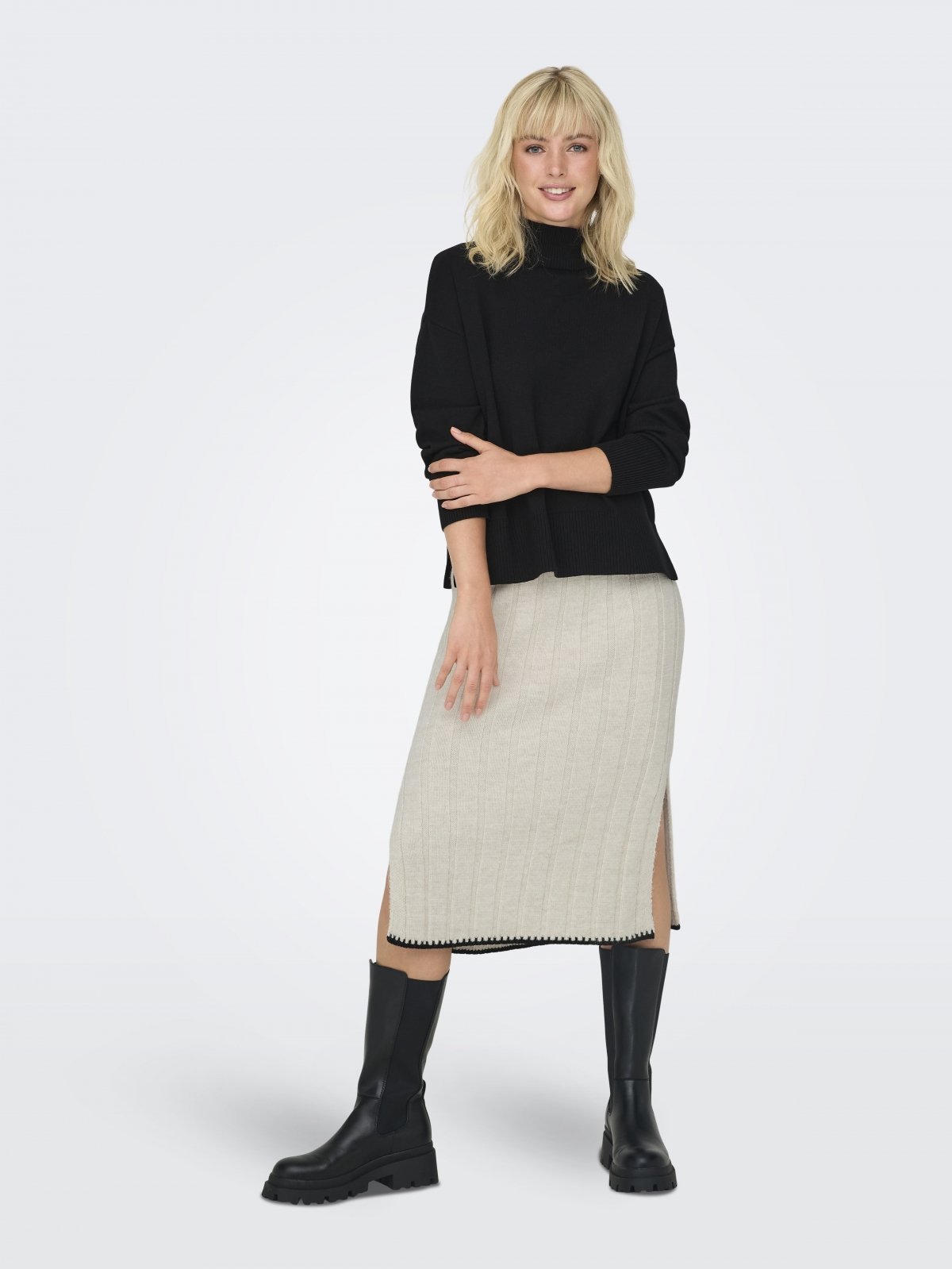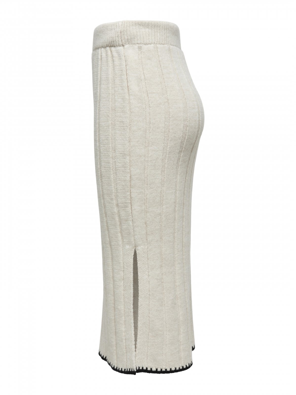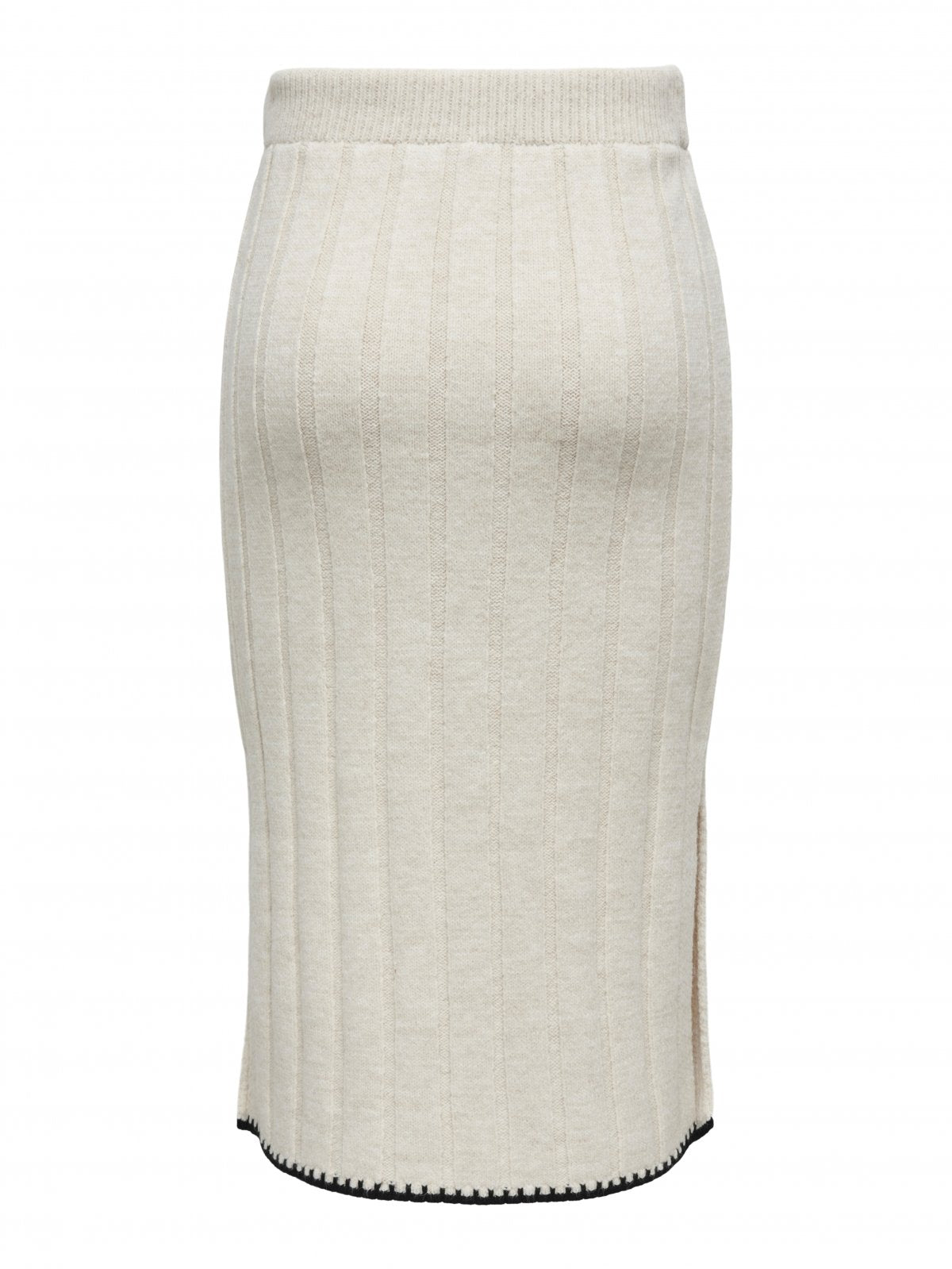Φούστα πλεκτή μίντι ΜΟΝΟ. Φαρδιά ελαστική ριμπ πλέξη. Έχει ανοίγματα στα πλαϊνά. Εφαρμοστή γραμμή.