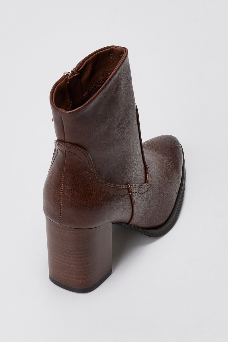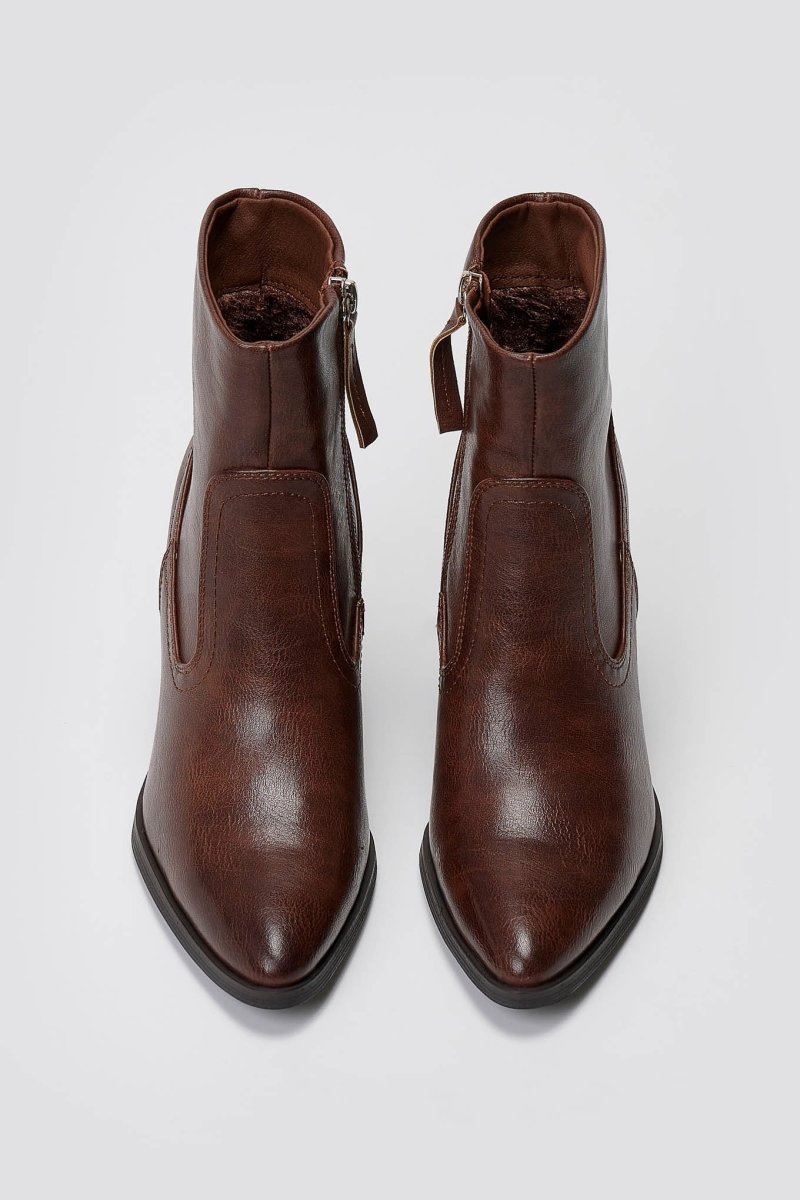 Μυτερά μποτάκια με ψηλό τετράγωνο τακούνι και πλαϊνό φερμουάρ. Κομψή σιλουέτα, σταθερή ανύψωση και ευέλικτη λάμψη σχεδιασμένα για μοντέρνο στυλ.
