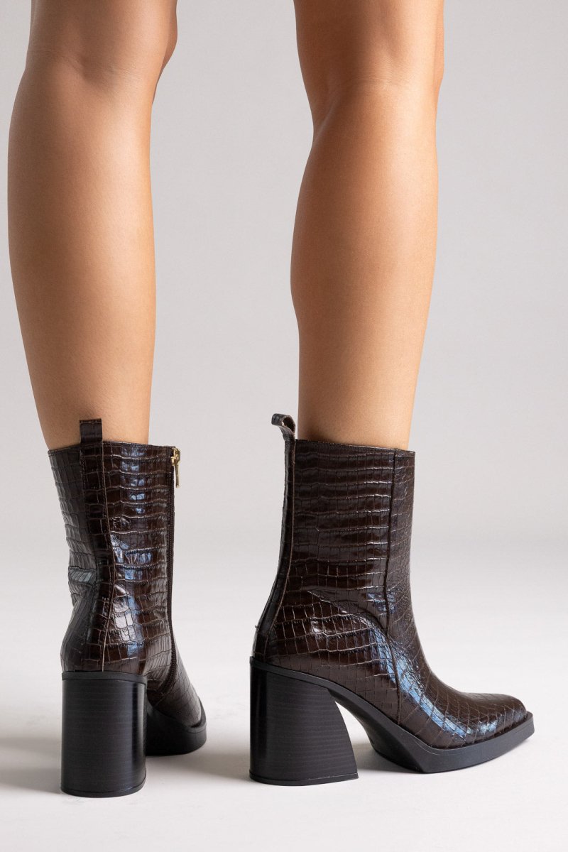 Μποτάκια Αστραγάλου με Τετράγωνο τακούνι IRIS - Καφέ Croc