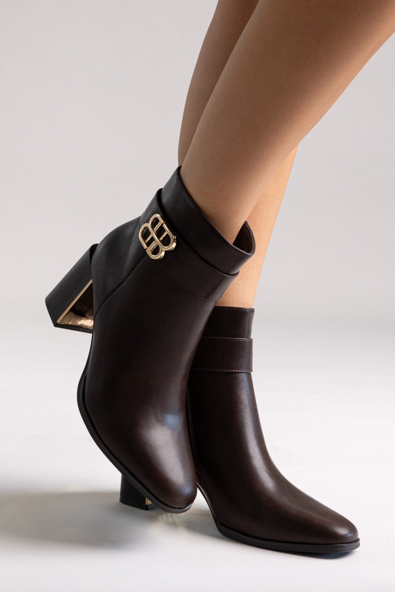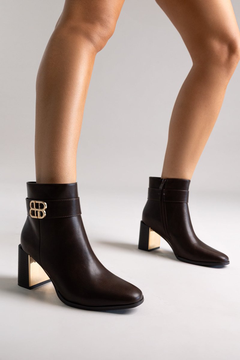 Μποτάκια με ψηλό τετράγωνο τακούνι - Σκούρο Καφέ Ματ