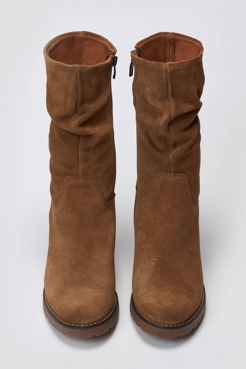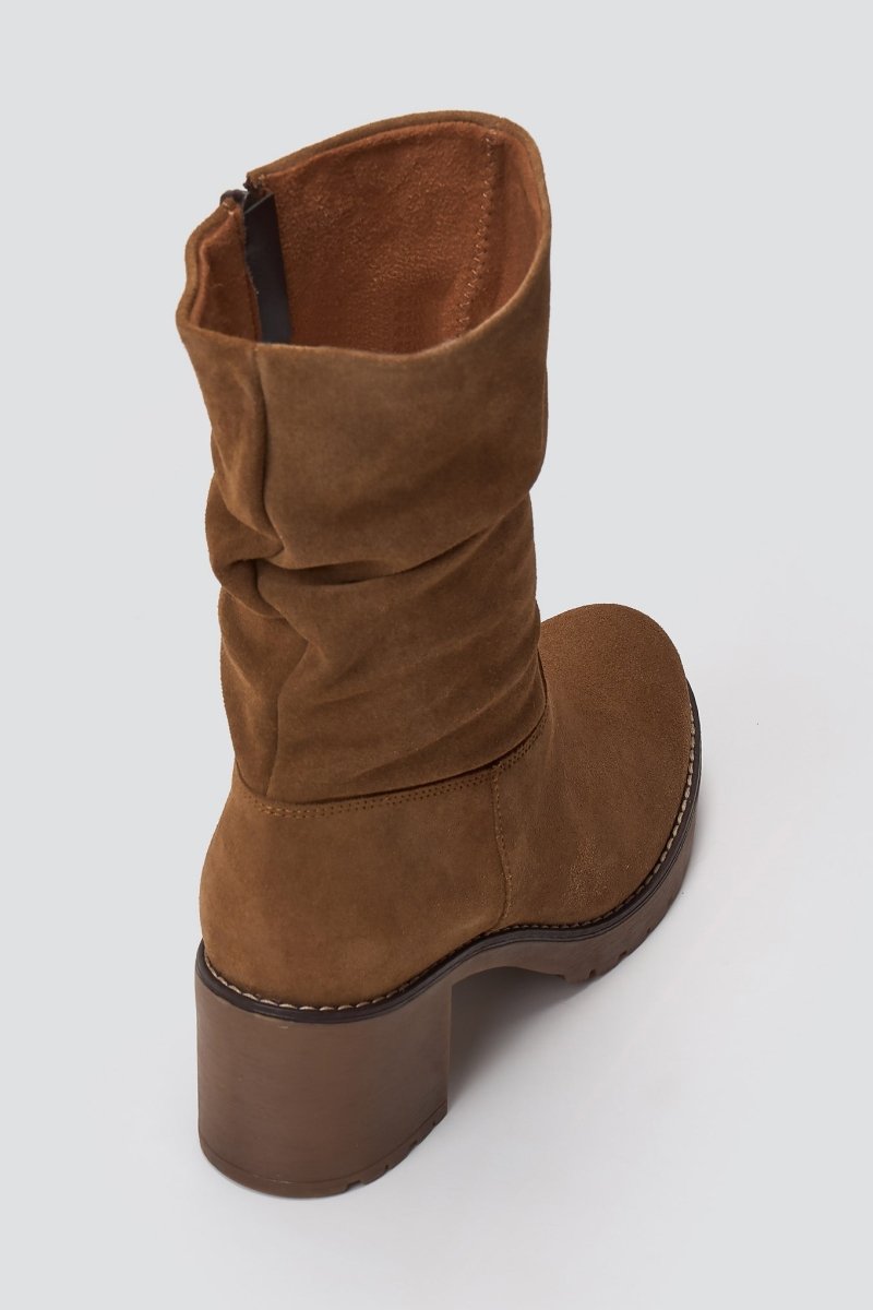 Γνήσια σουέτ slouch μποτάκια με τακούνι block και άνεση Dryflex. Αναπνεύσιμα, με μαλακή επένδυση και σταθερότητα—κομψό στυλ για άνετη εμφάνιση όλη μέρα.