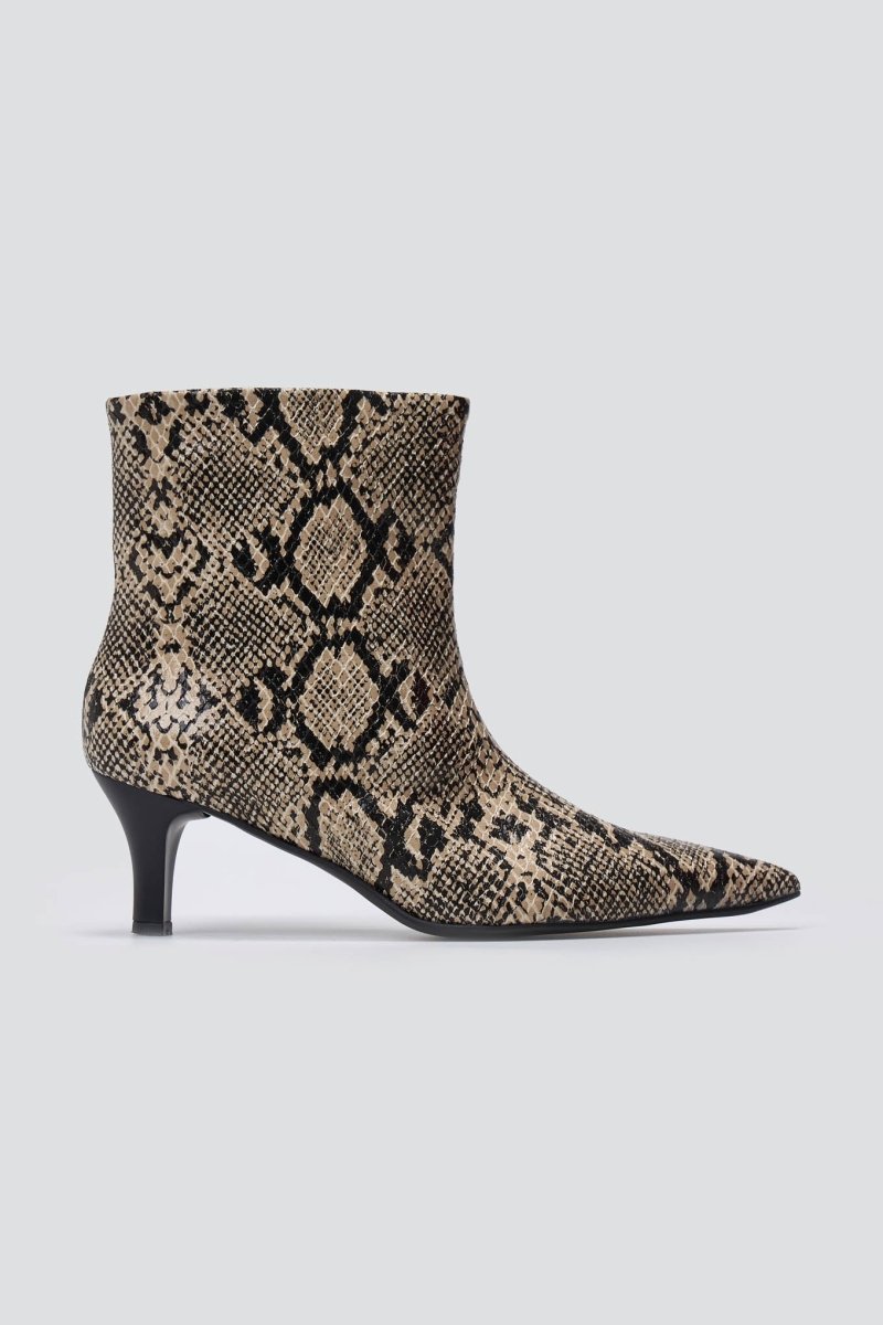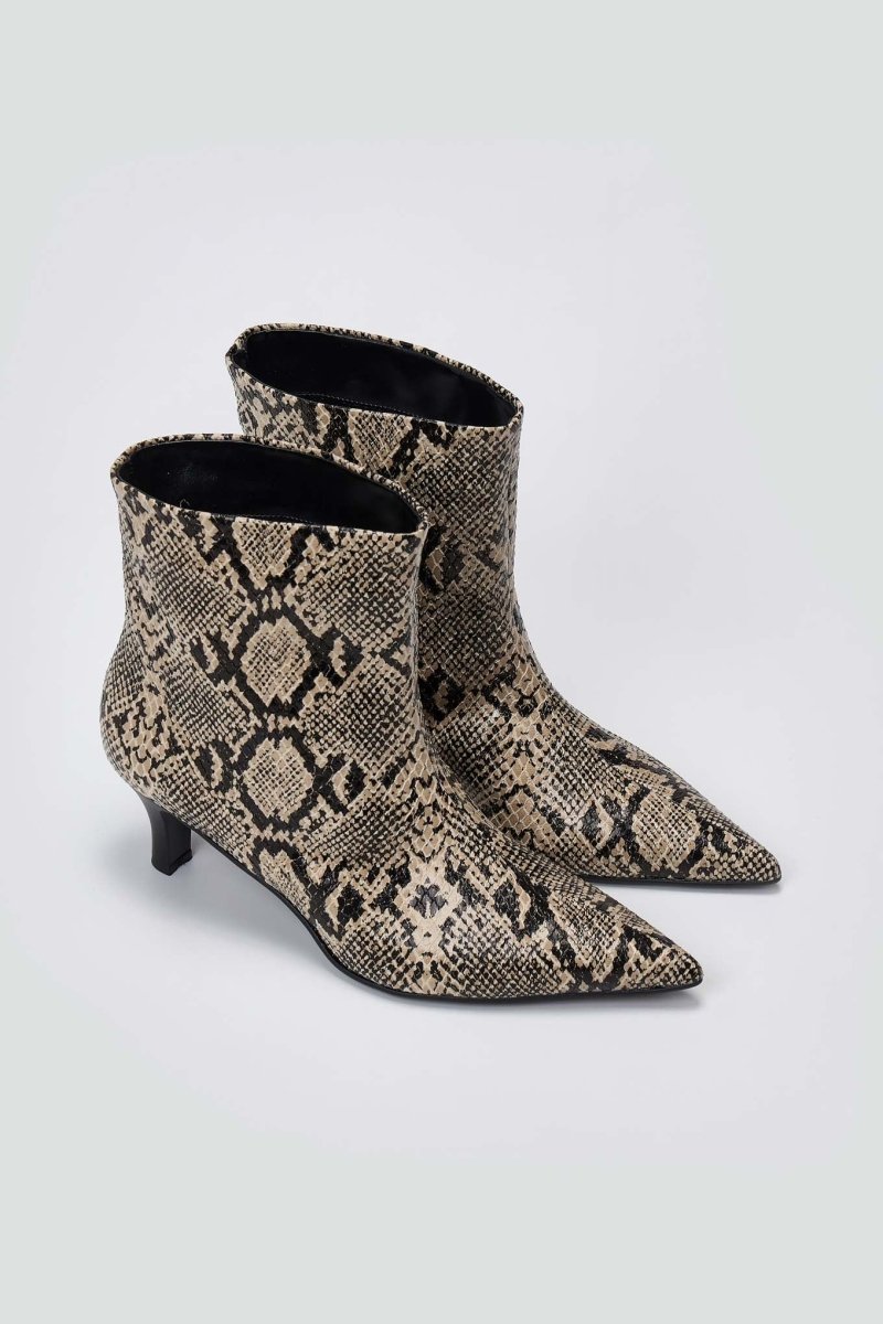 Μυτερά γυναικεία μποτάκια με snake print. Το τακούνι kitten συνδυάζει κομψότητα και άνεση—ευέλικτο στυλ για τη σύγχρονη γυναίκα. Ιδανικά από το πρωί μέχρι το βράδυ.