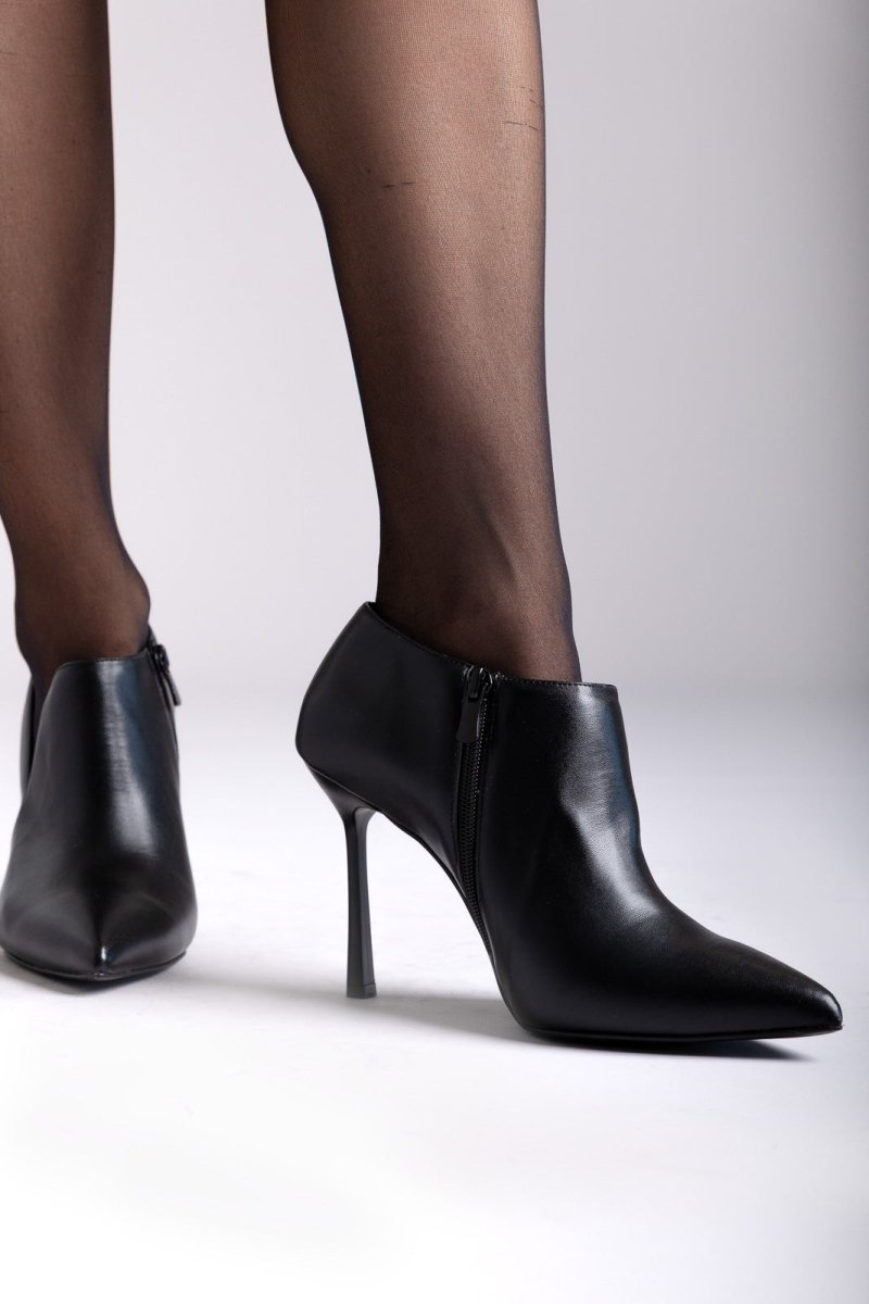 Μυτερά μποτάκια με κομψό πλαϊνό άνοιγμα, ψηλό τακούνι στιλέτο και φερμουάρ στο πίσω μέρος. Μια μοντέρνα, κομψή σιλουέτα σχεδιασμένη για εκλεπτυσμένο, σίγουρο στυλ όλη μέρα και νύχτα.