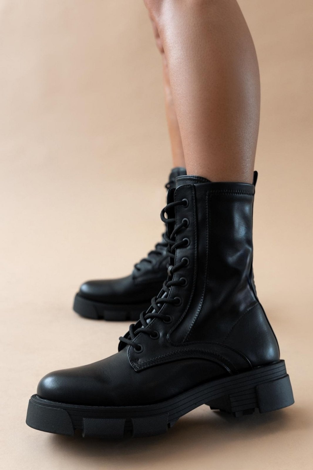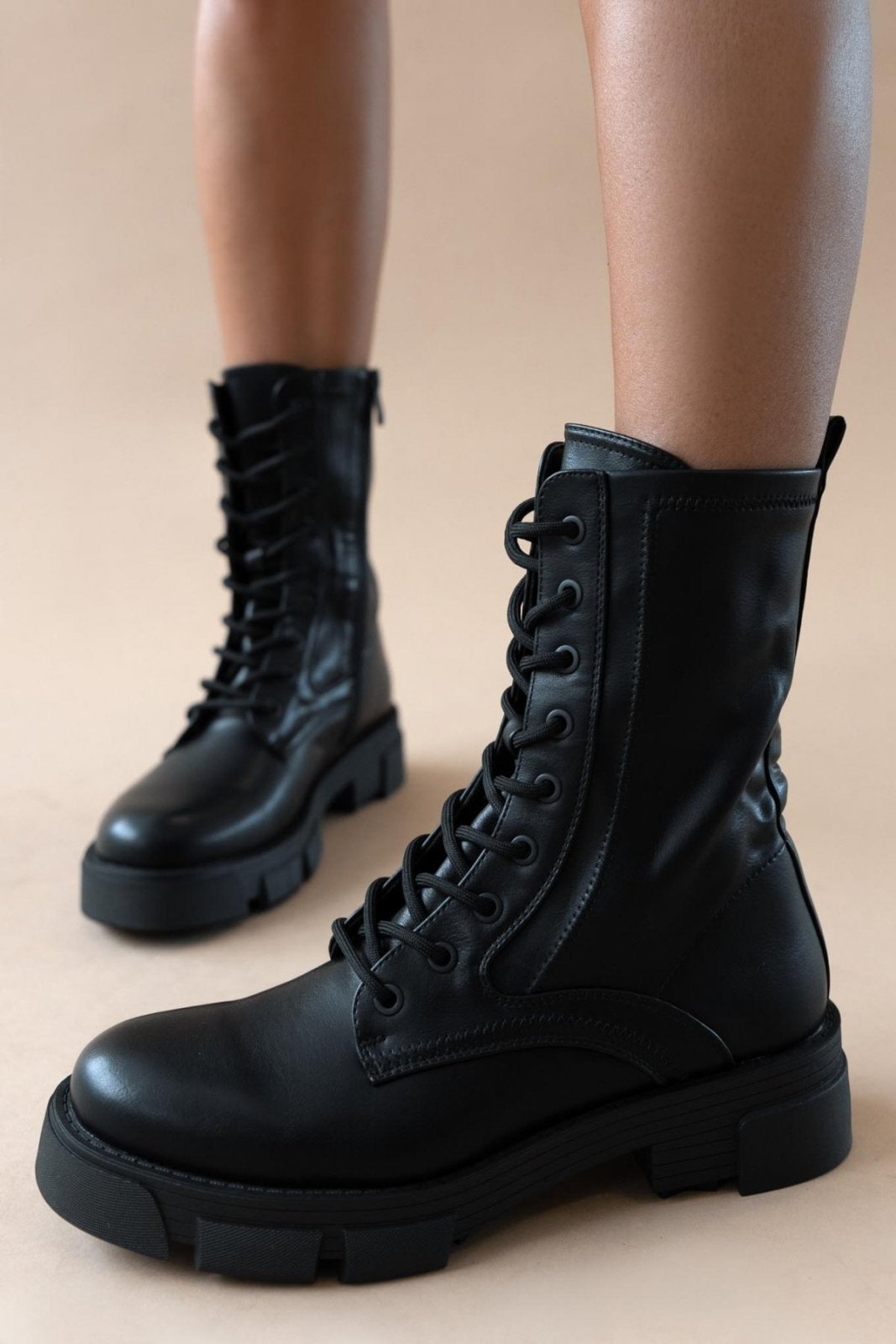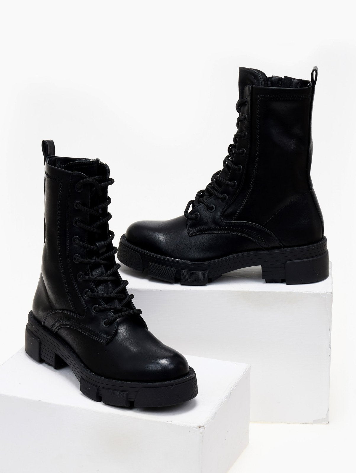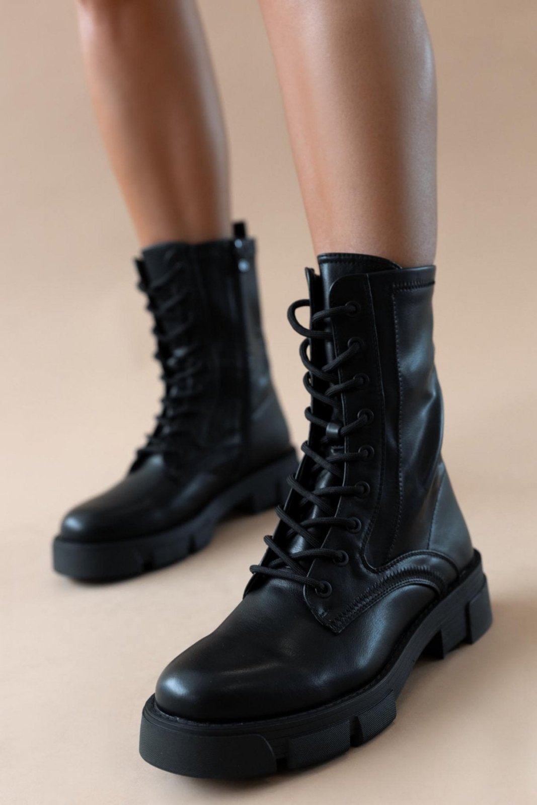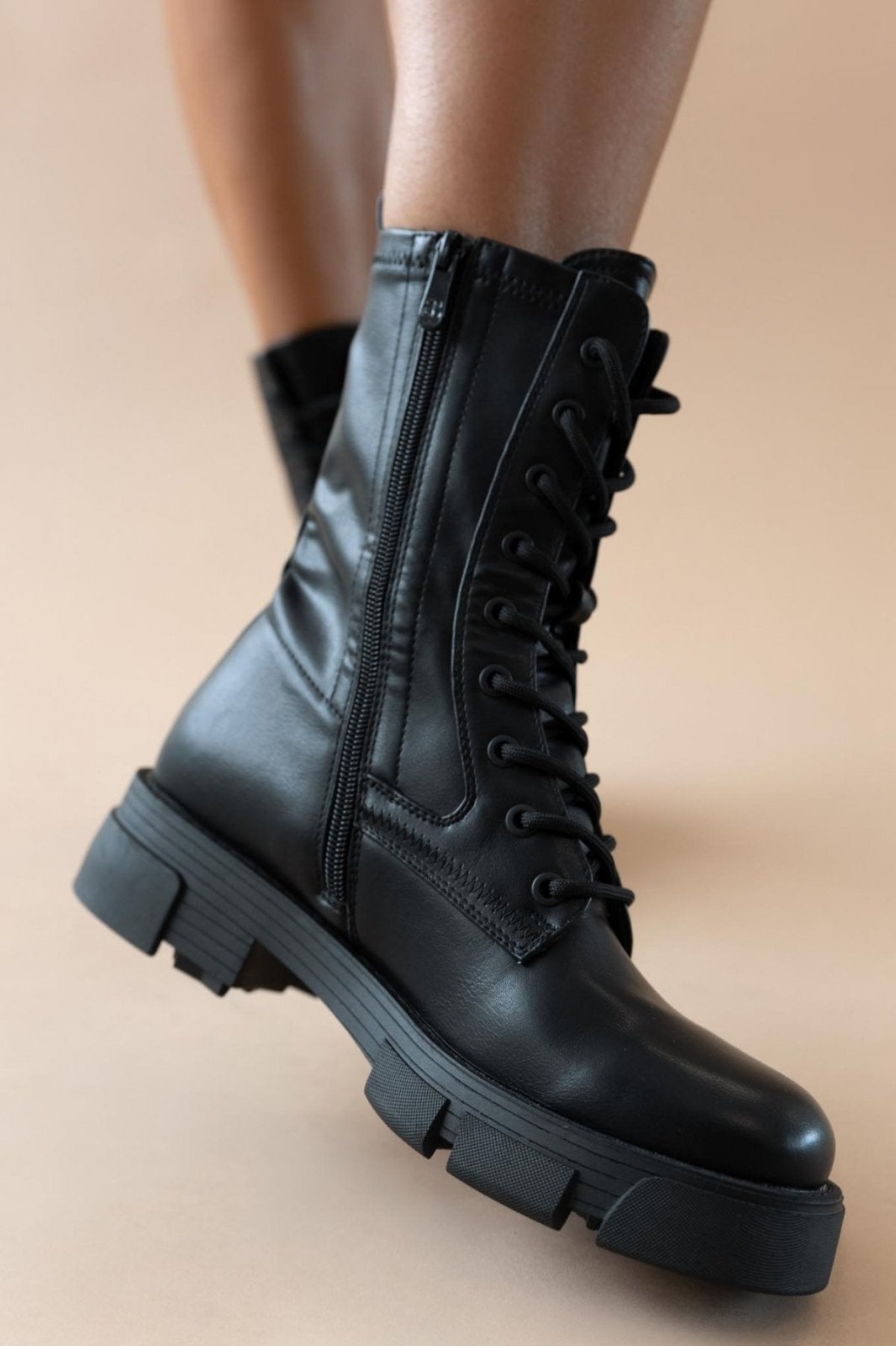 Αρβυλάκια με chunky σόλα. Προσαρμόζονται με κορδόνια. Κλείνουν με φερμουάρ στην εσωτερική τους πλευρά.