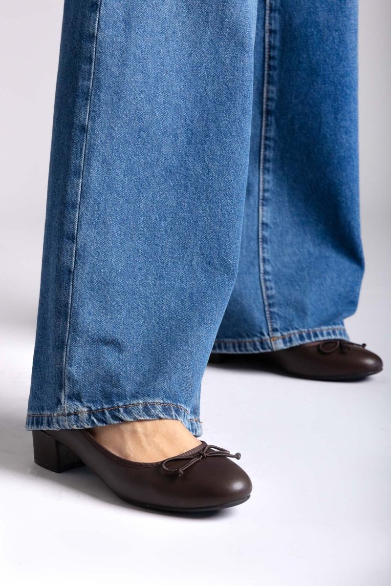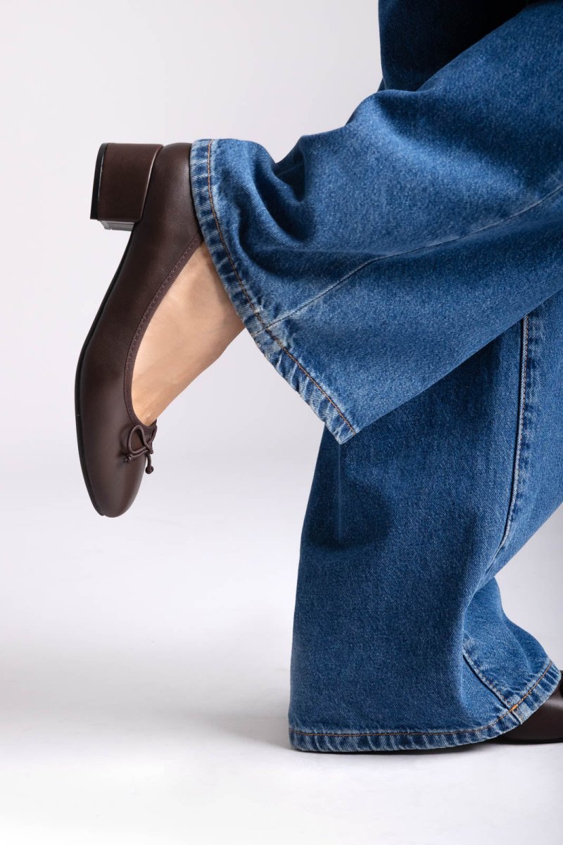Μπαλαρίνες με χαμηλό τακούνι - Σκούρο Καφέ Ματ