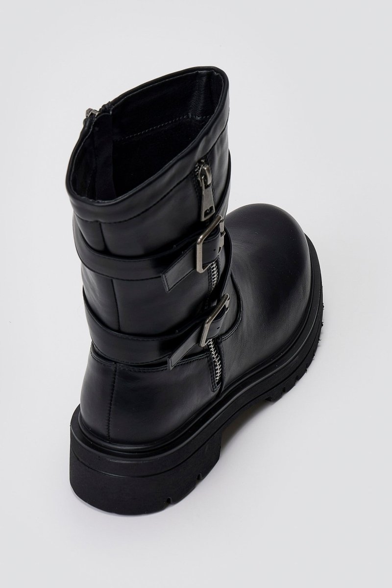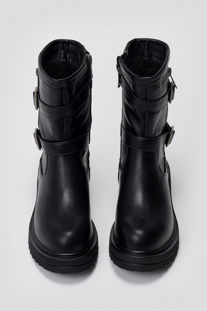Μποτάκια biker με αγκράφες και φερμουάρ στο πλάι. Σταθερή εφαρμογή, μαλακή άνεση και κομψό design για μοντέρνο στυλ.