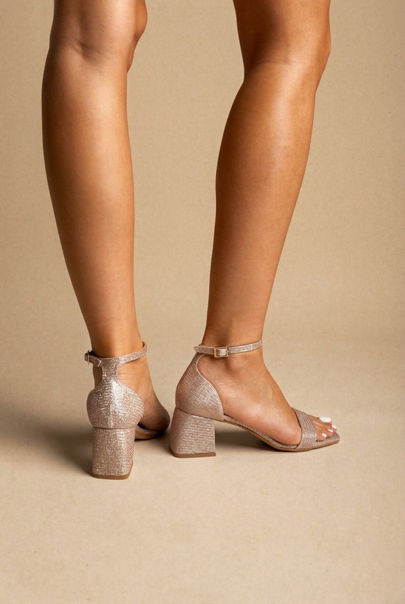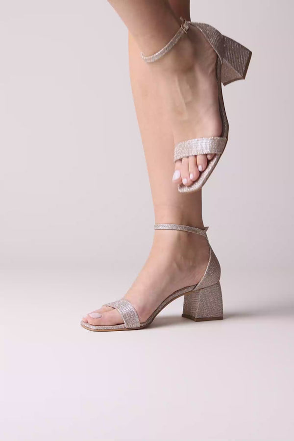 Πέδιλα με Τετράγωνο Τακούνι και μπαρέτα- Nude Lurex