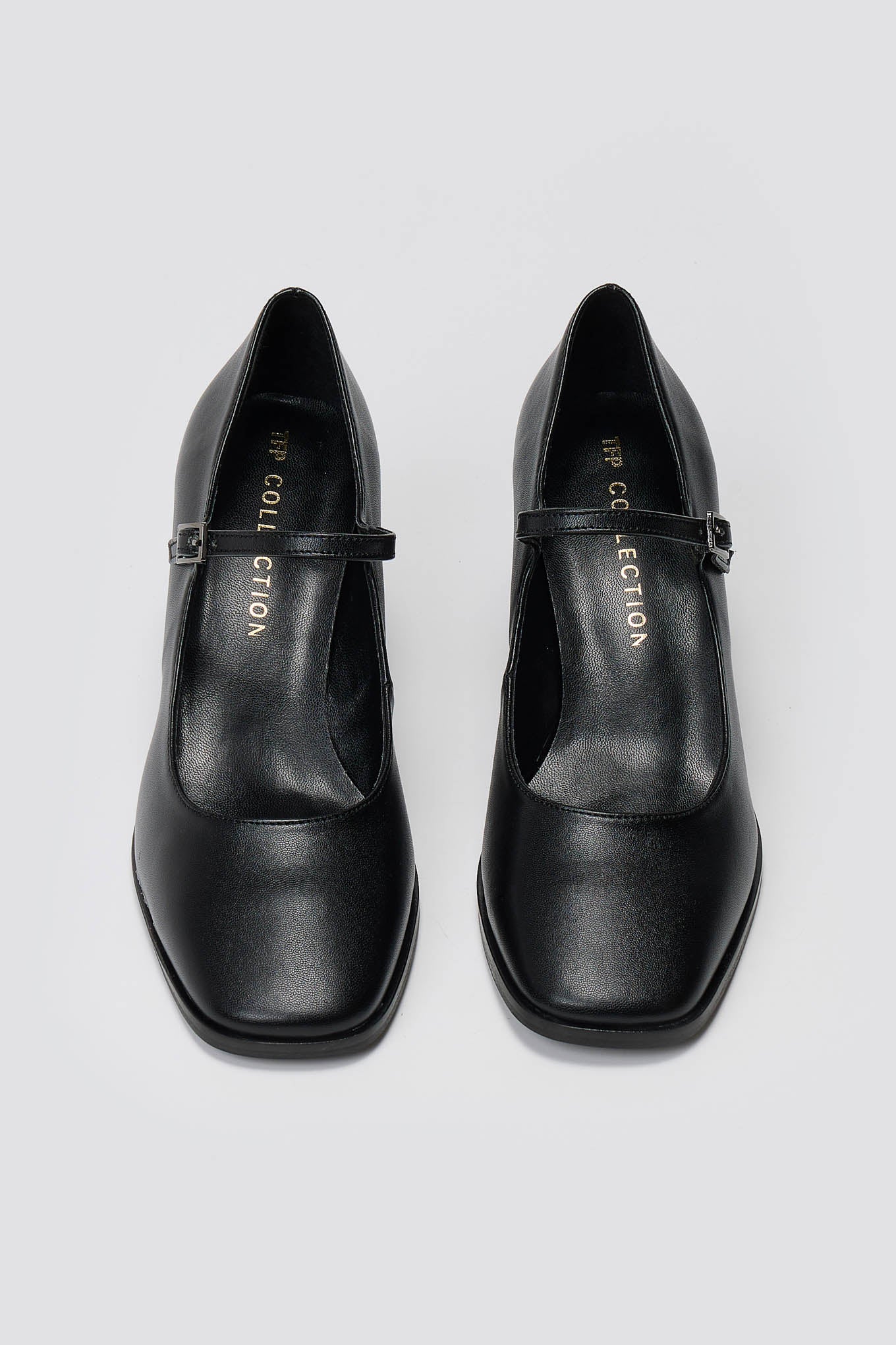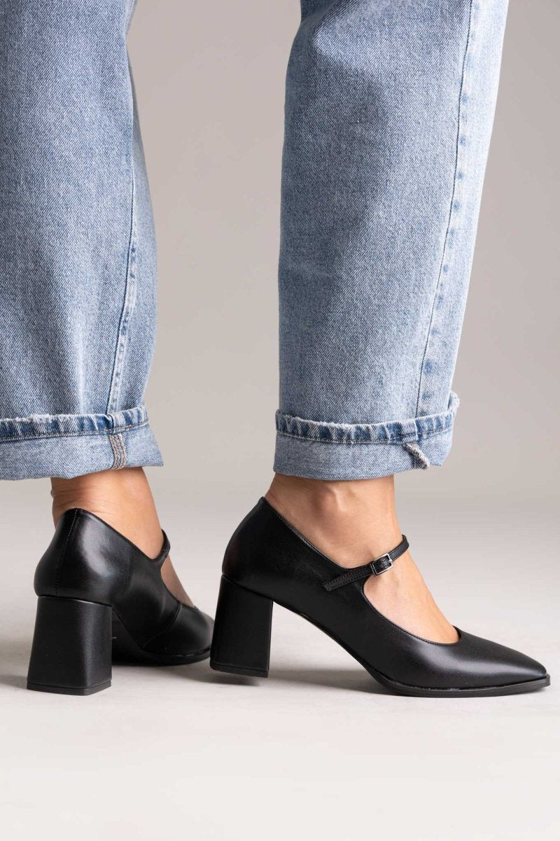 Κομψές γόβες Mary Jane με ψηλό τετράγωνο τακούνι, τετράγωνη μύτη και σταθερό λουράκι στον αστράγαλο. Μαλακός πάτος και σταθερό ύψος συνδυάζουν στυλ και άνεση για τη σύγχρονη γυναίκα.